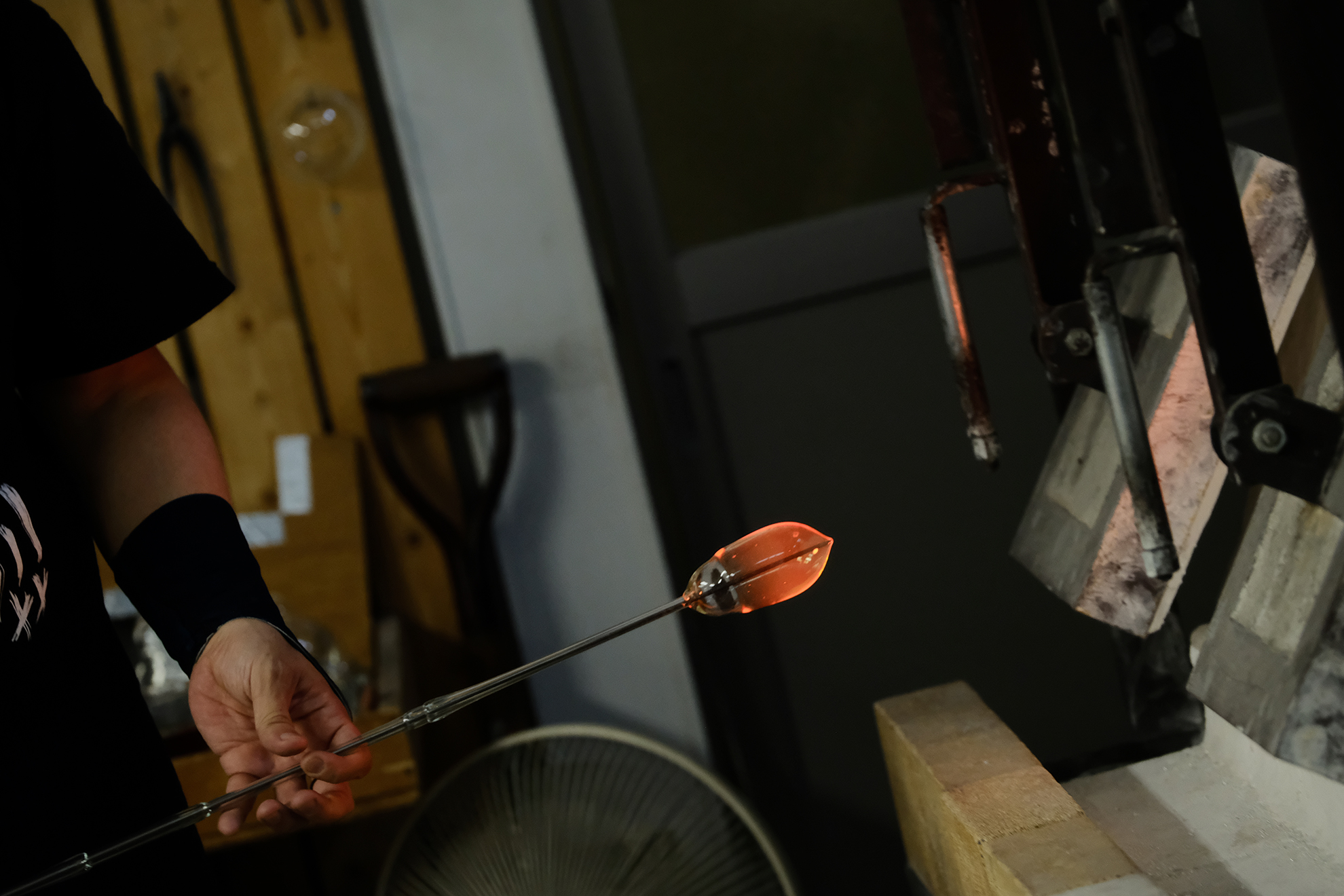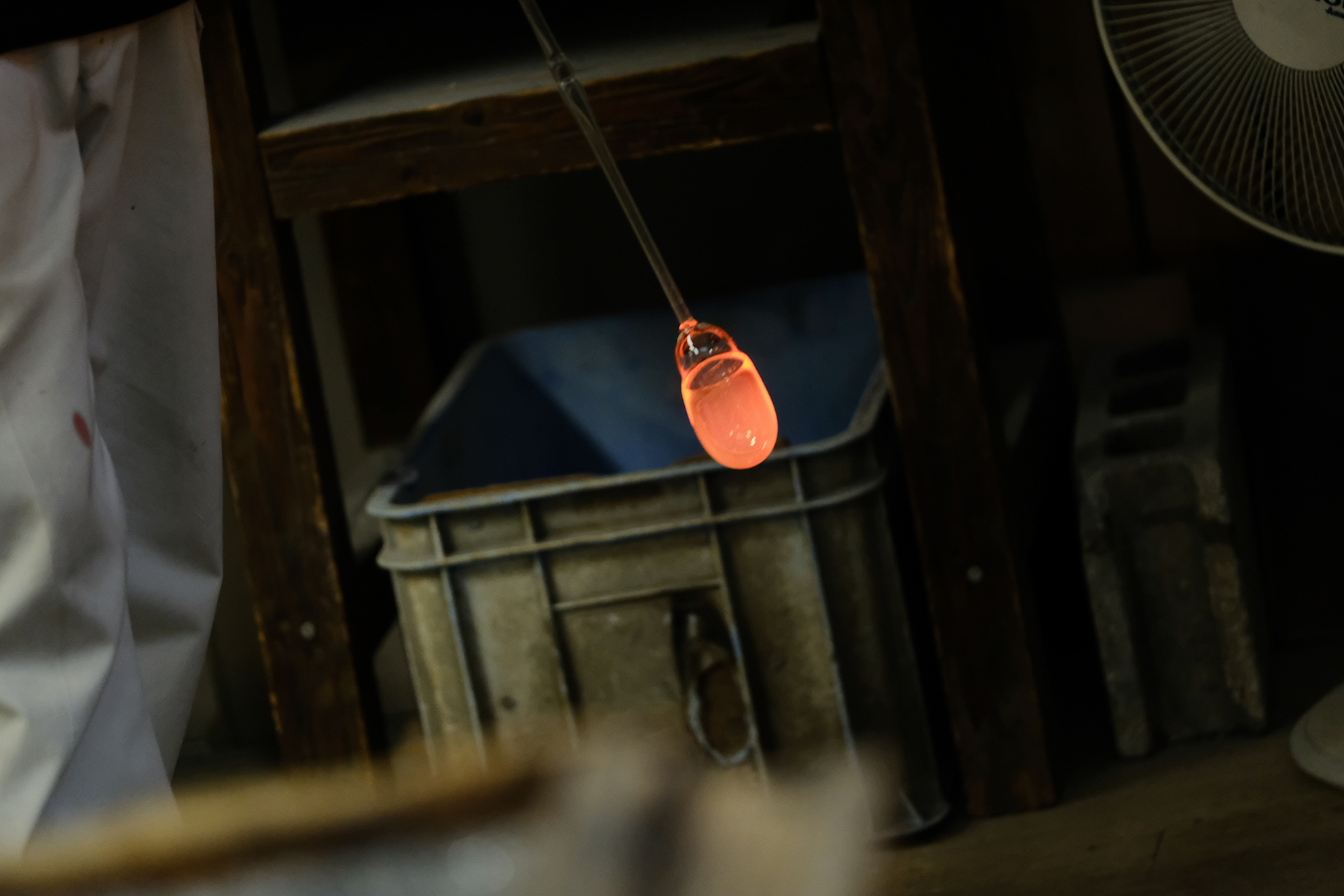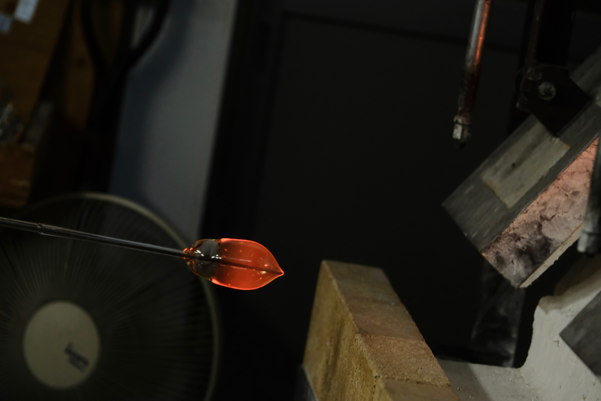 ガラス吹きの制作過程は、前回の”江戸風鈴/製作体験at「篠原まるよし風鈴」&「篠原風鈴本舗」レポート①”でもご紹介させて頂いたので、是非ご参照ください。