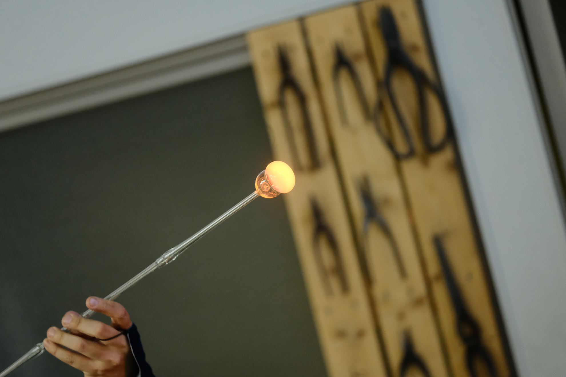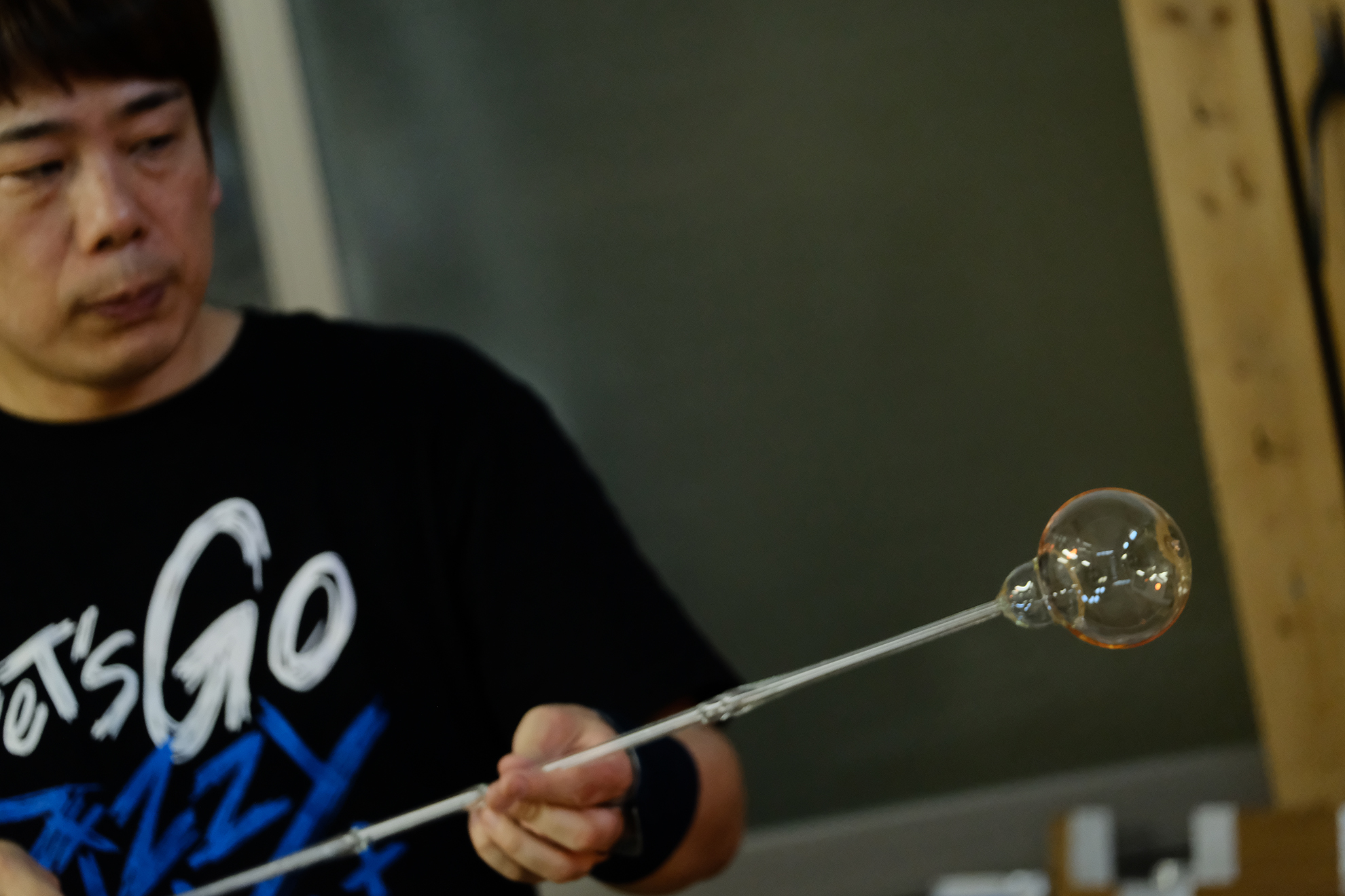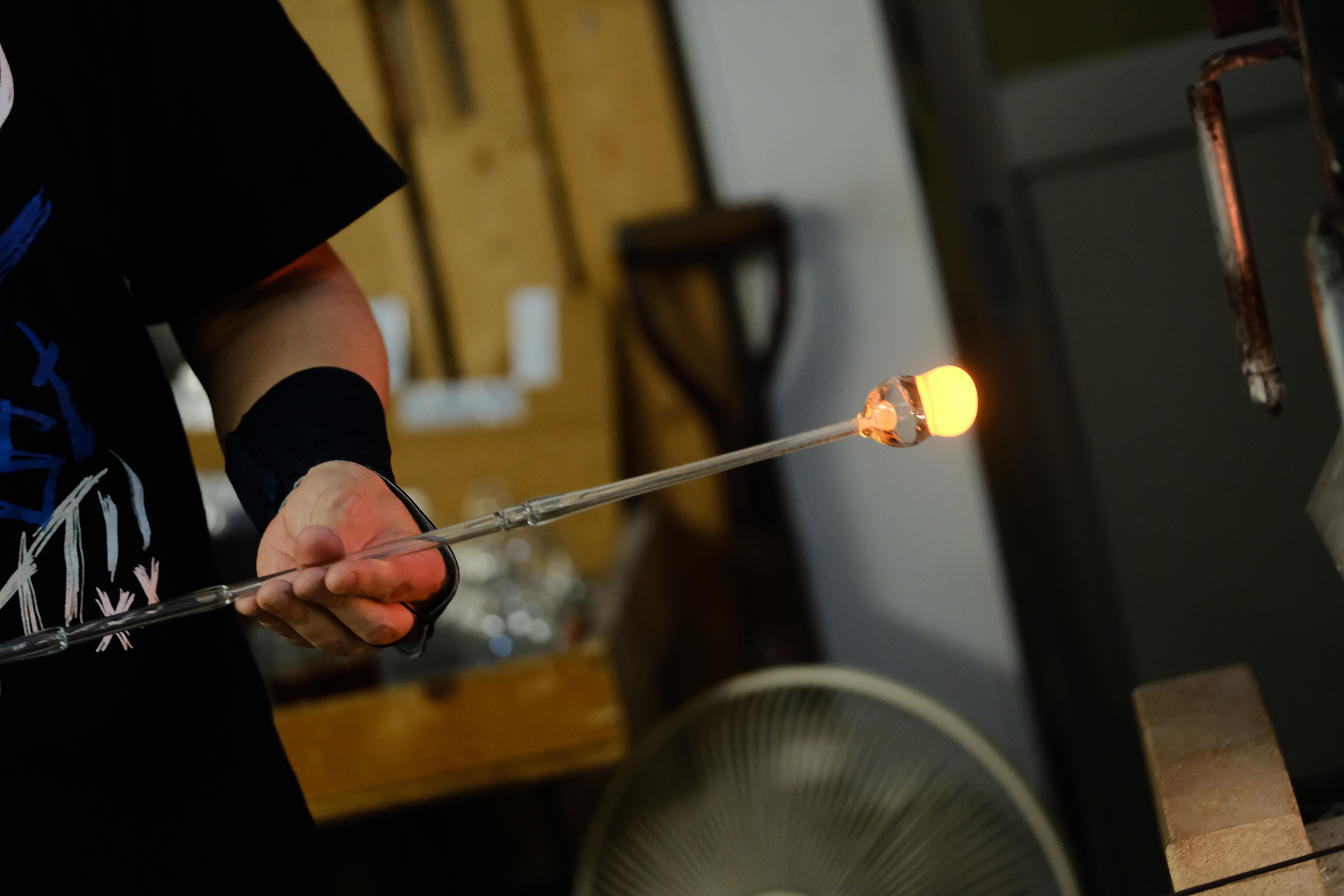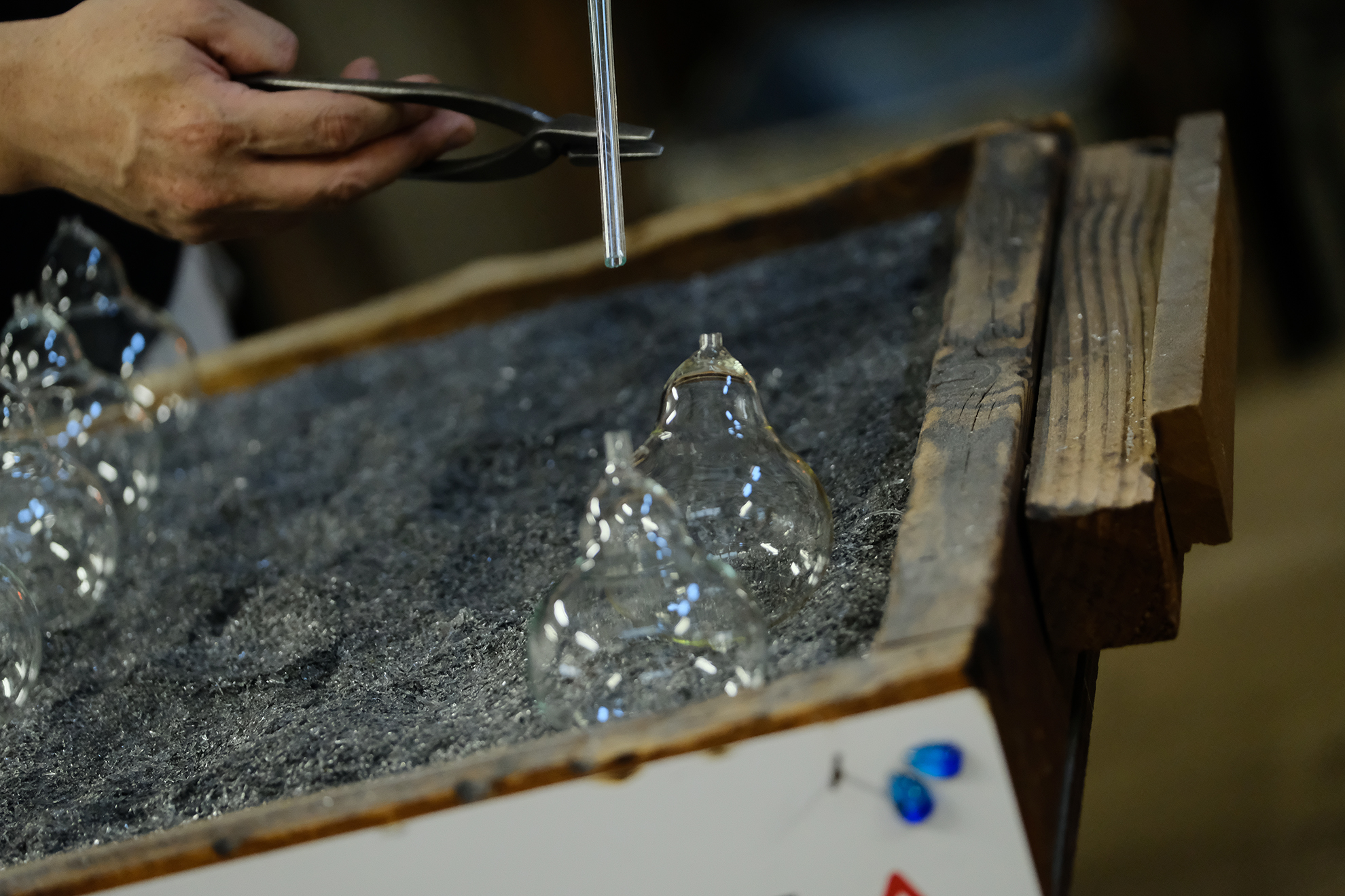 ガラス吹きの制作過程は、前回の”江戸風鈴/製作体験at「篠原まるよし風鈴」&「篠原風鈴本舗」レポート①”でもご紹介させて頂いたので、是非ご参照ください。