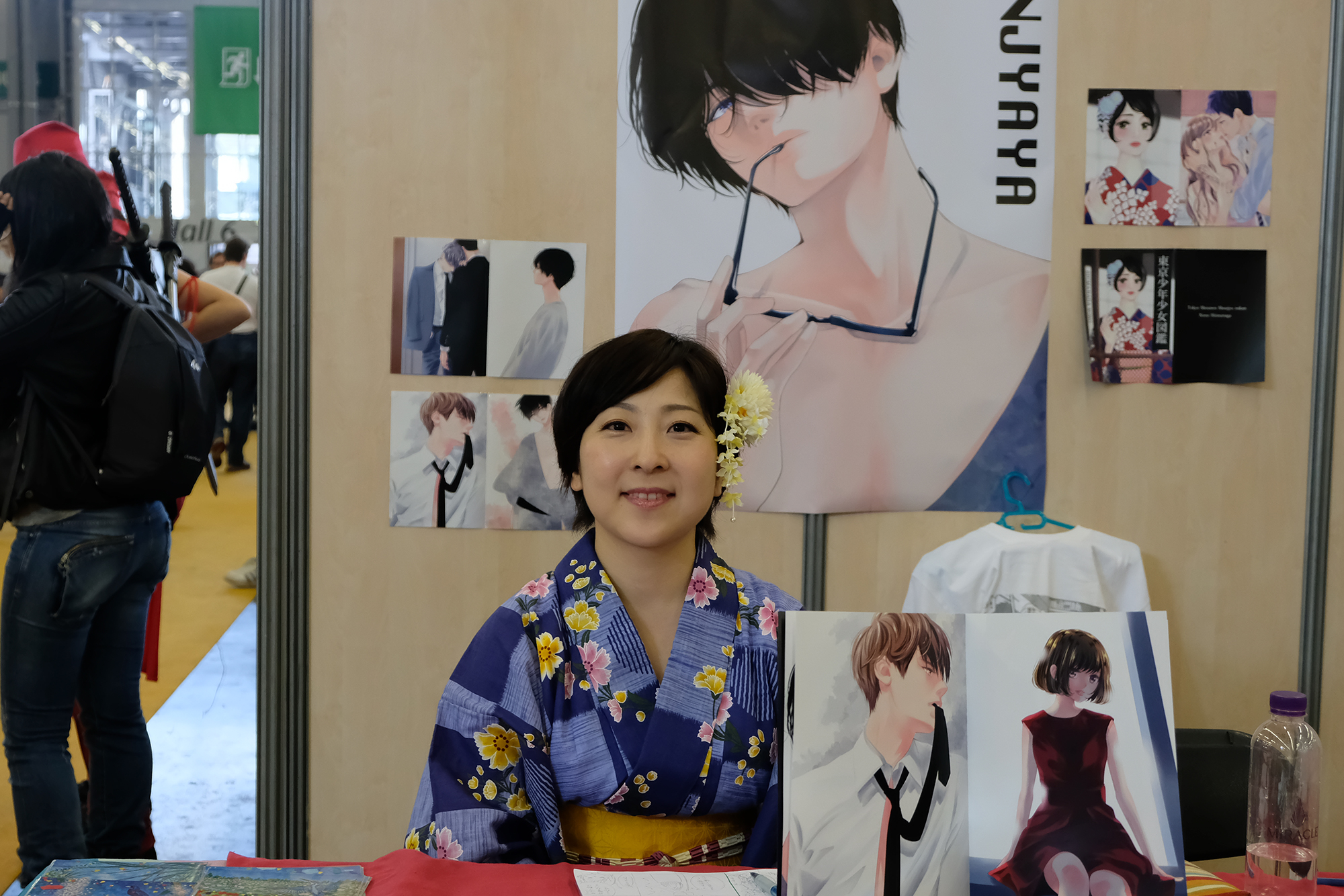 「日本では、TLの商業誌で描かせていただいています。今回は海外へ向けて新たにチャレンジをしたいと思いまして、JapanExpoへ参加致しました。」