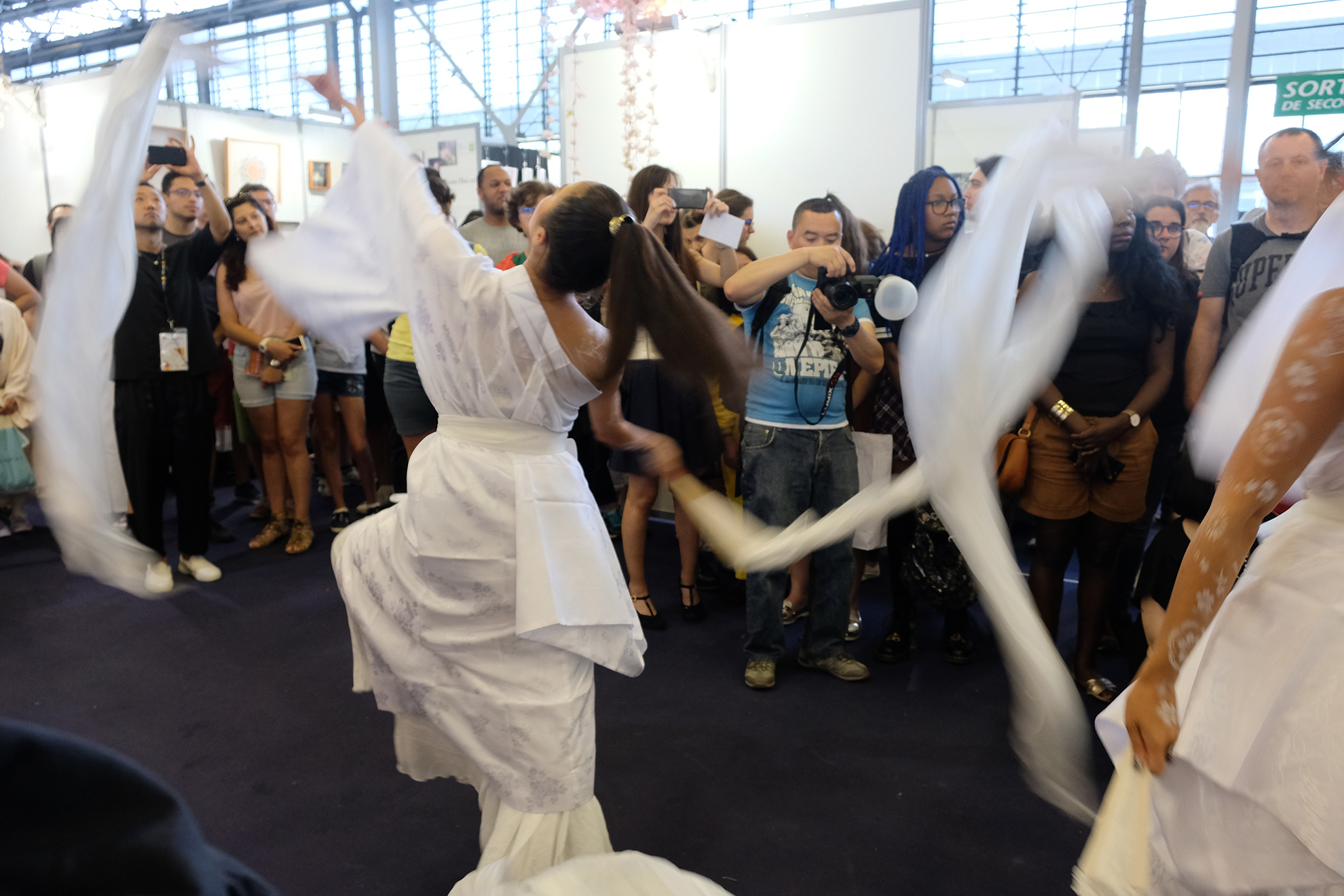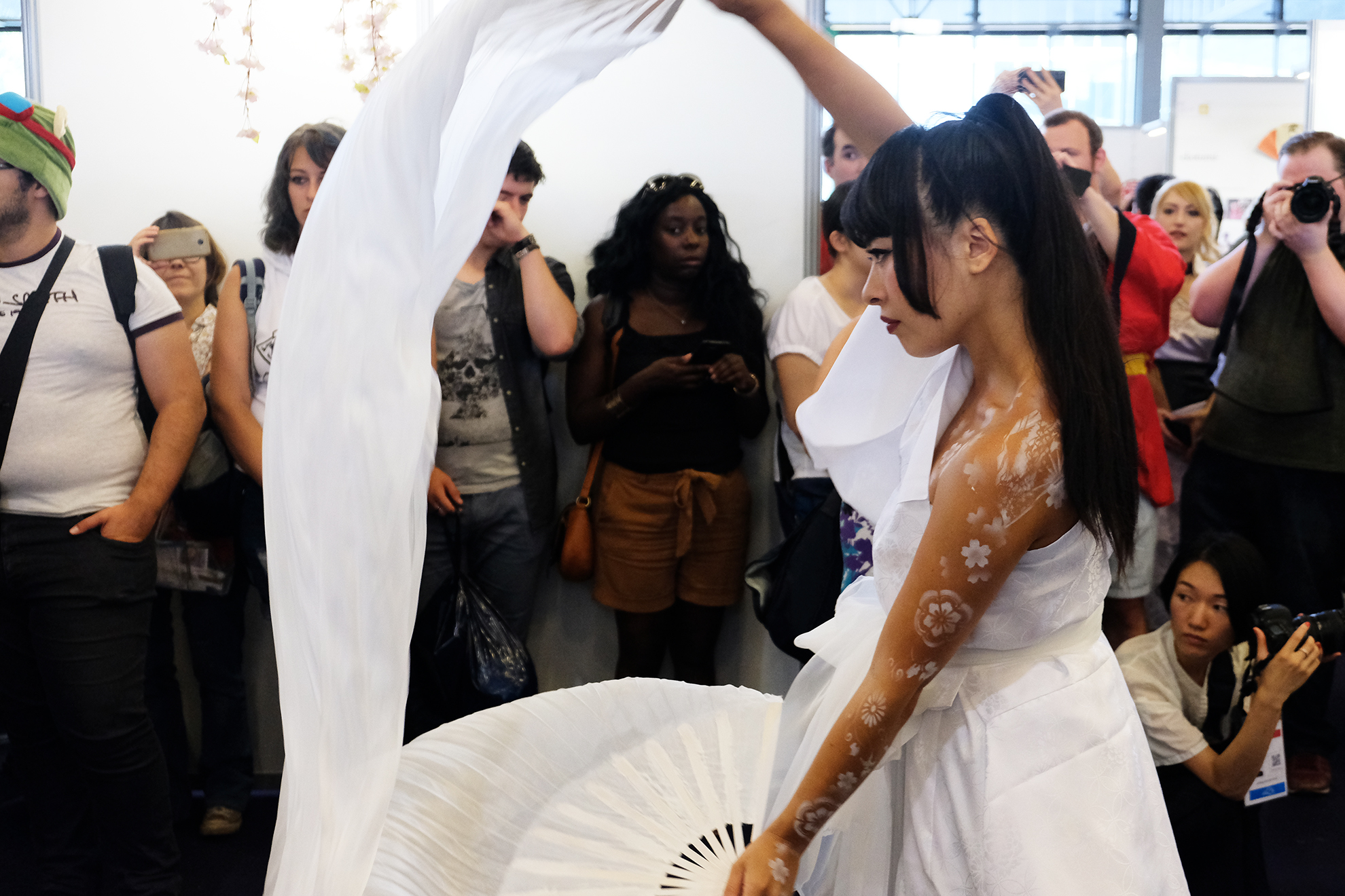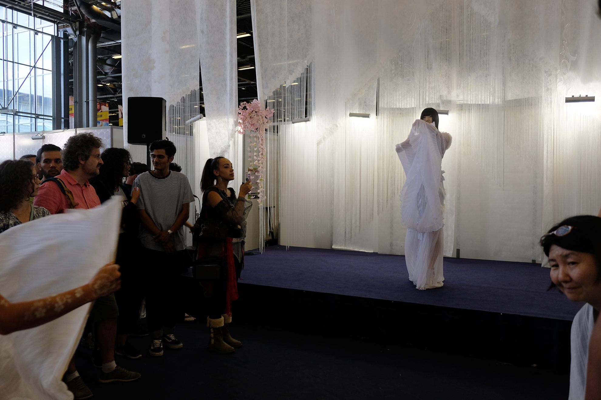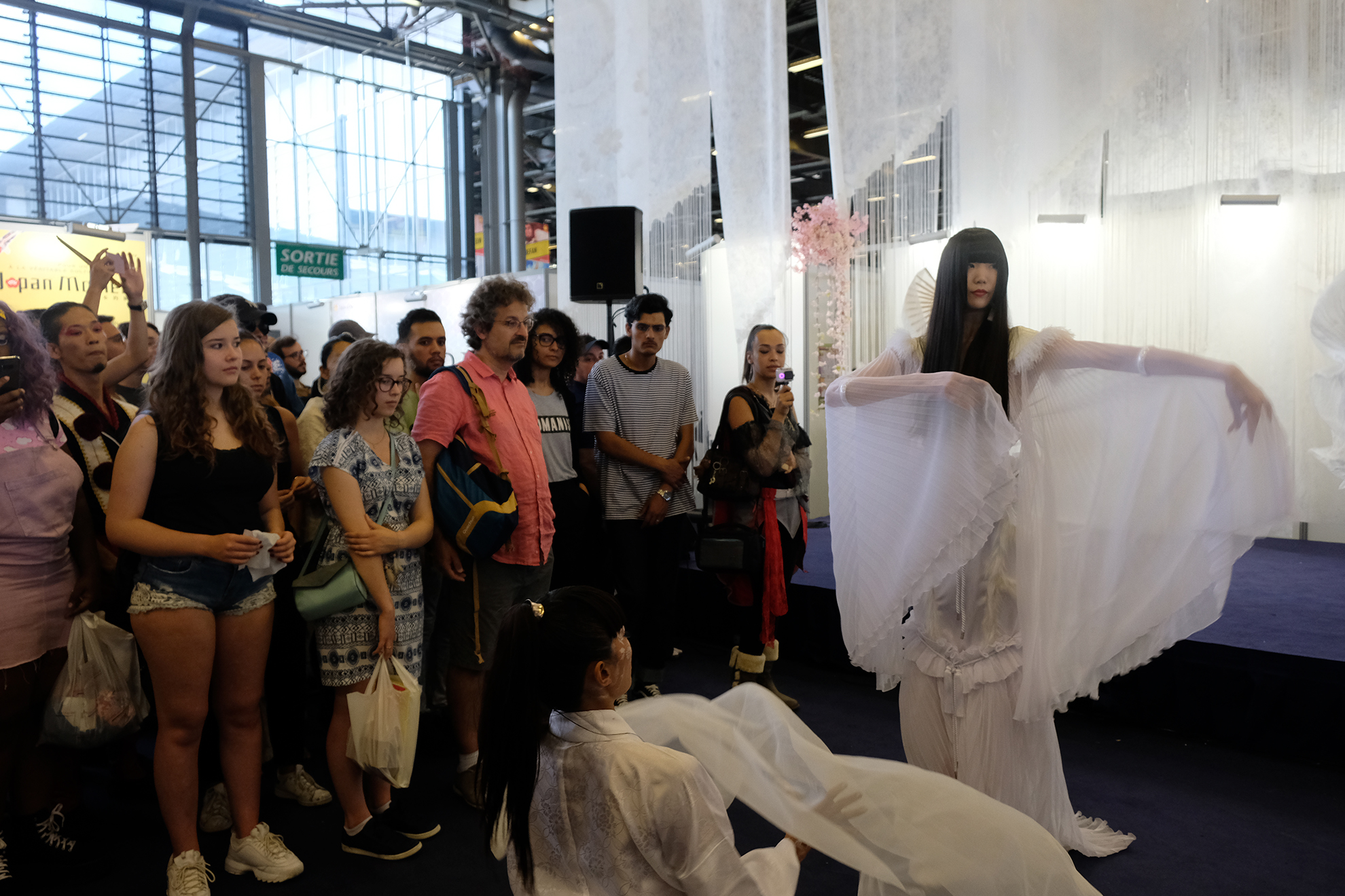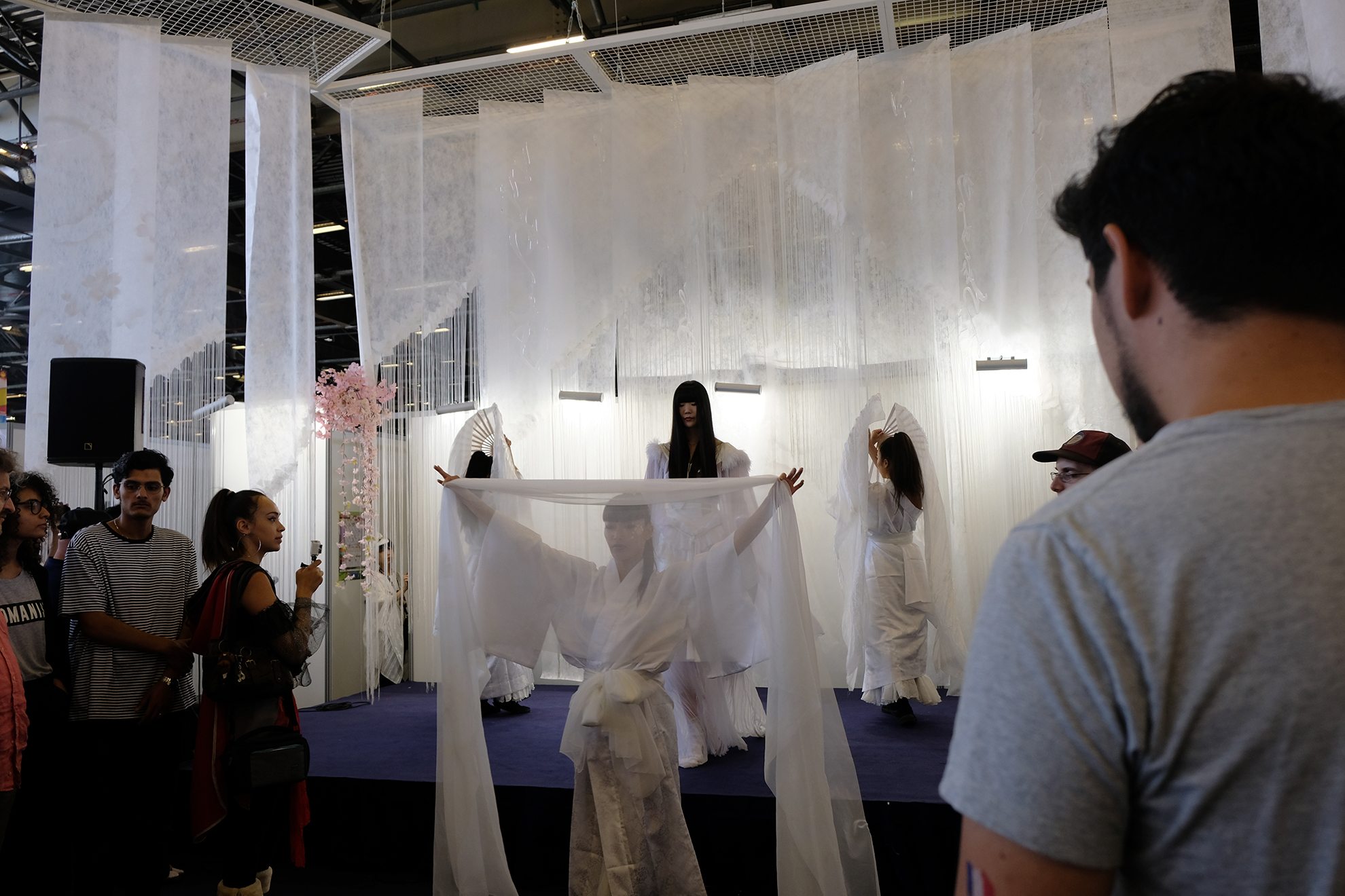 Japan Expo 2018におけるKIRIEさんのWABISABIブースでの”羽衣道中”。