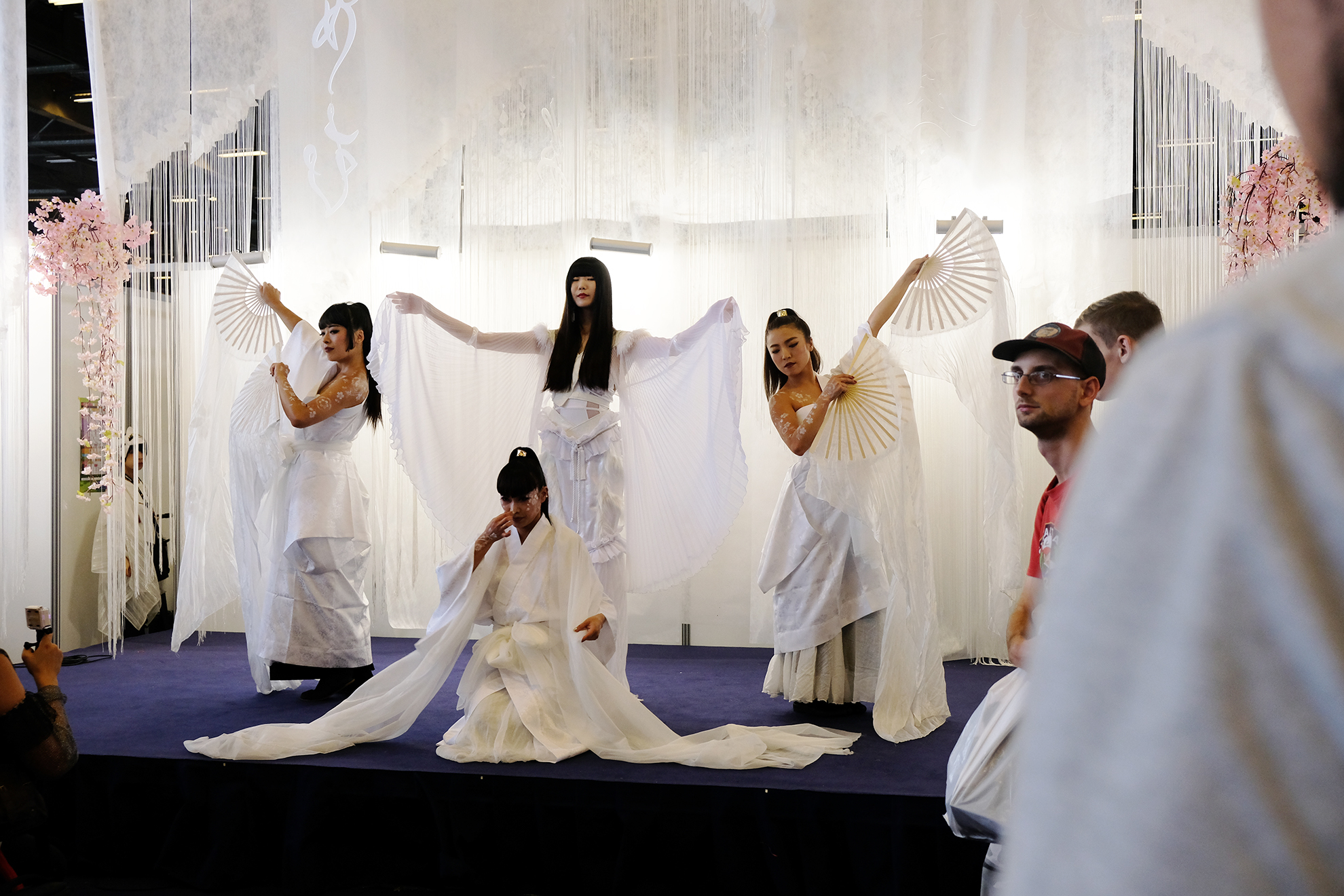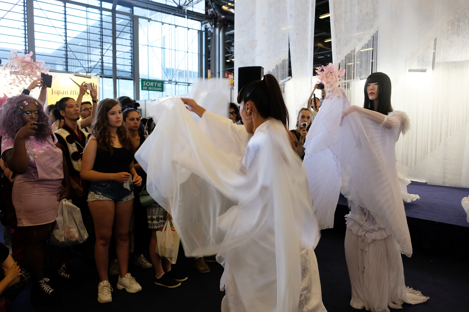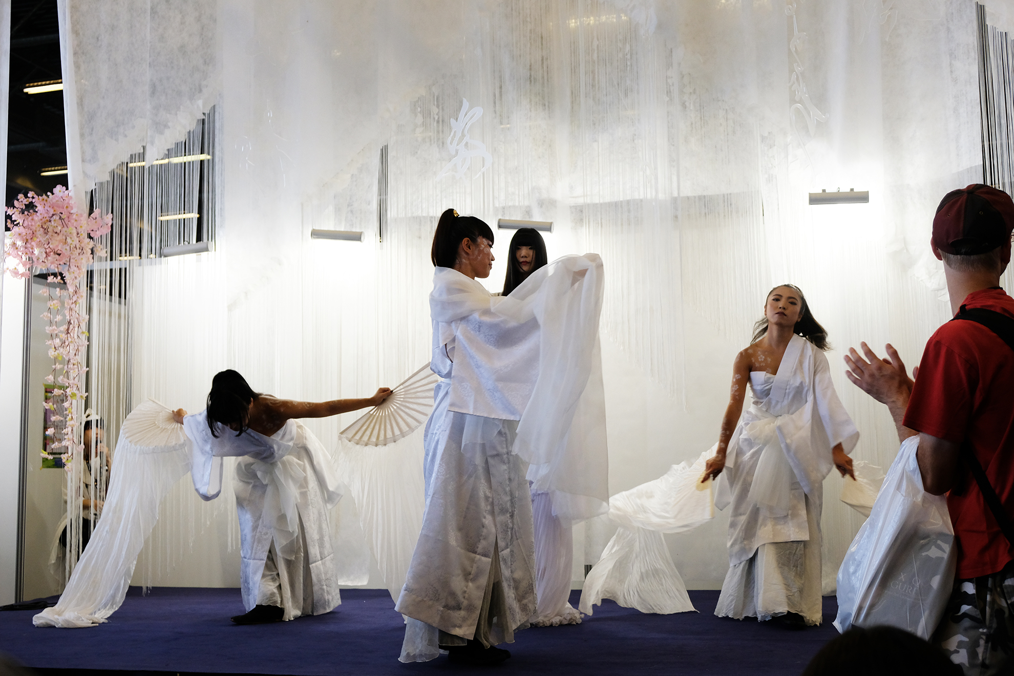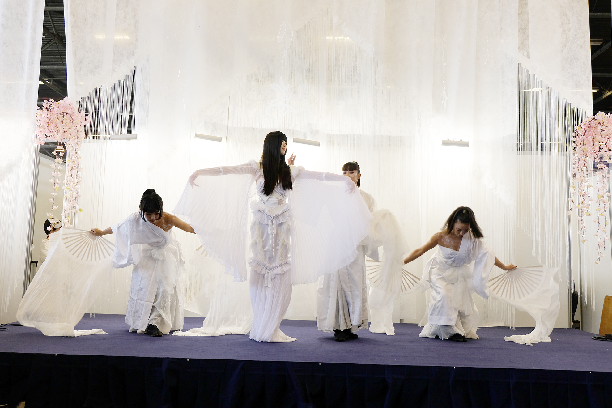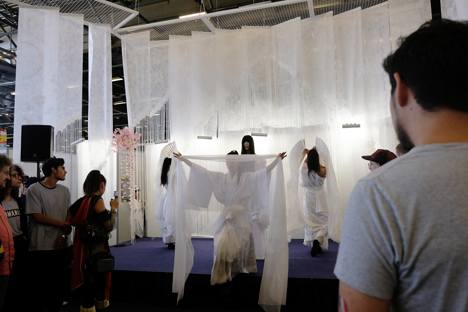 Japan Expo 2018におけるKIRIEさんのWABISABIブースでの”羽衣道中”。