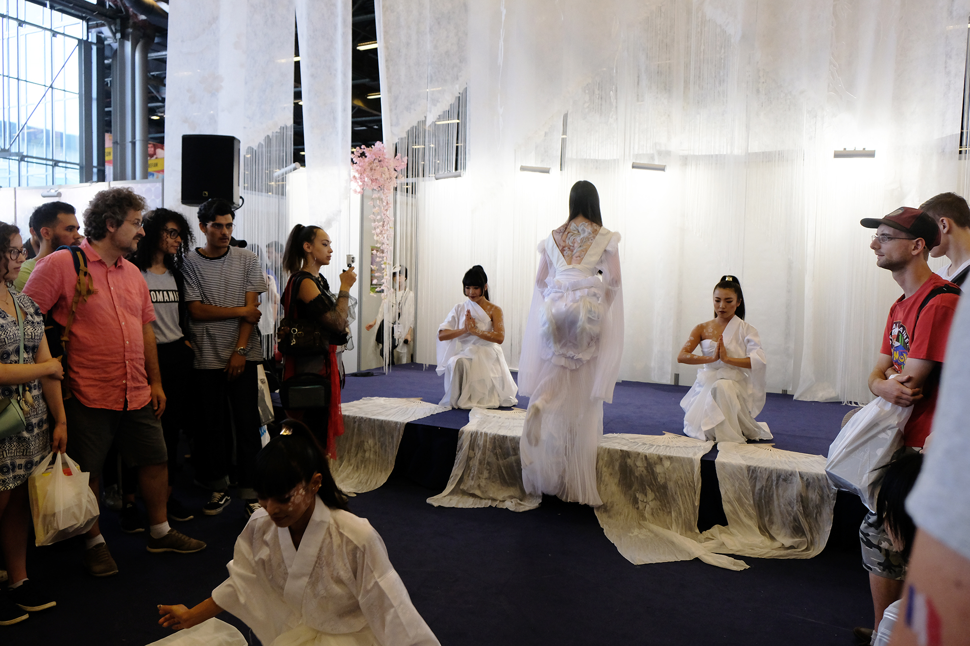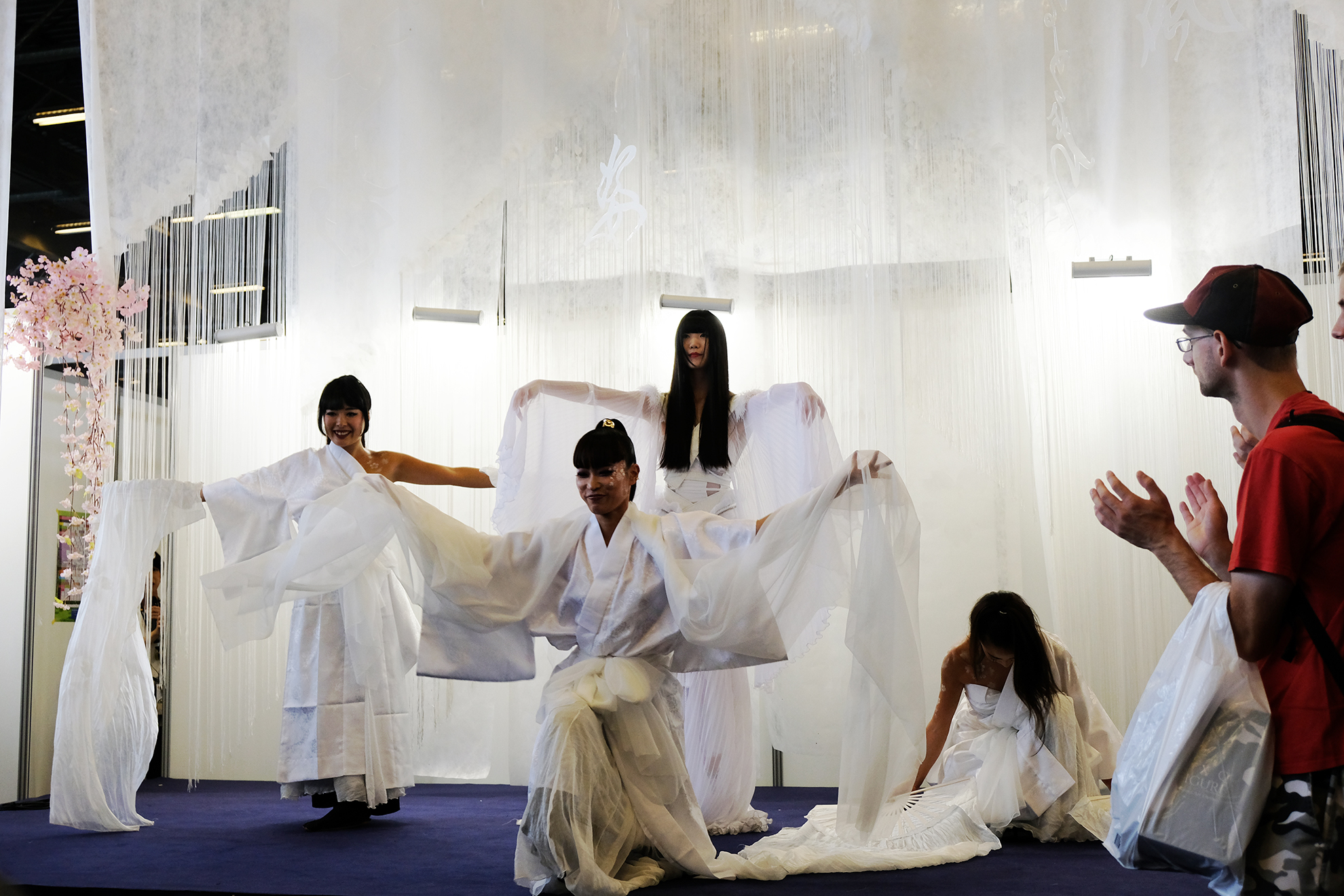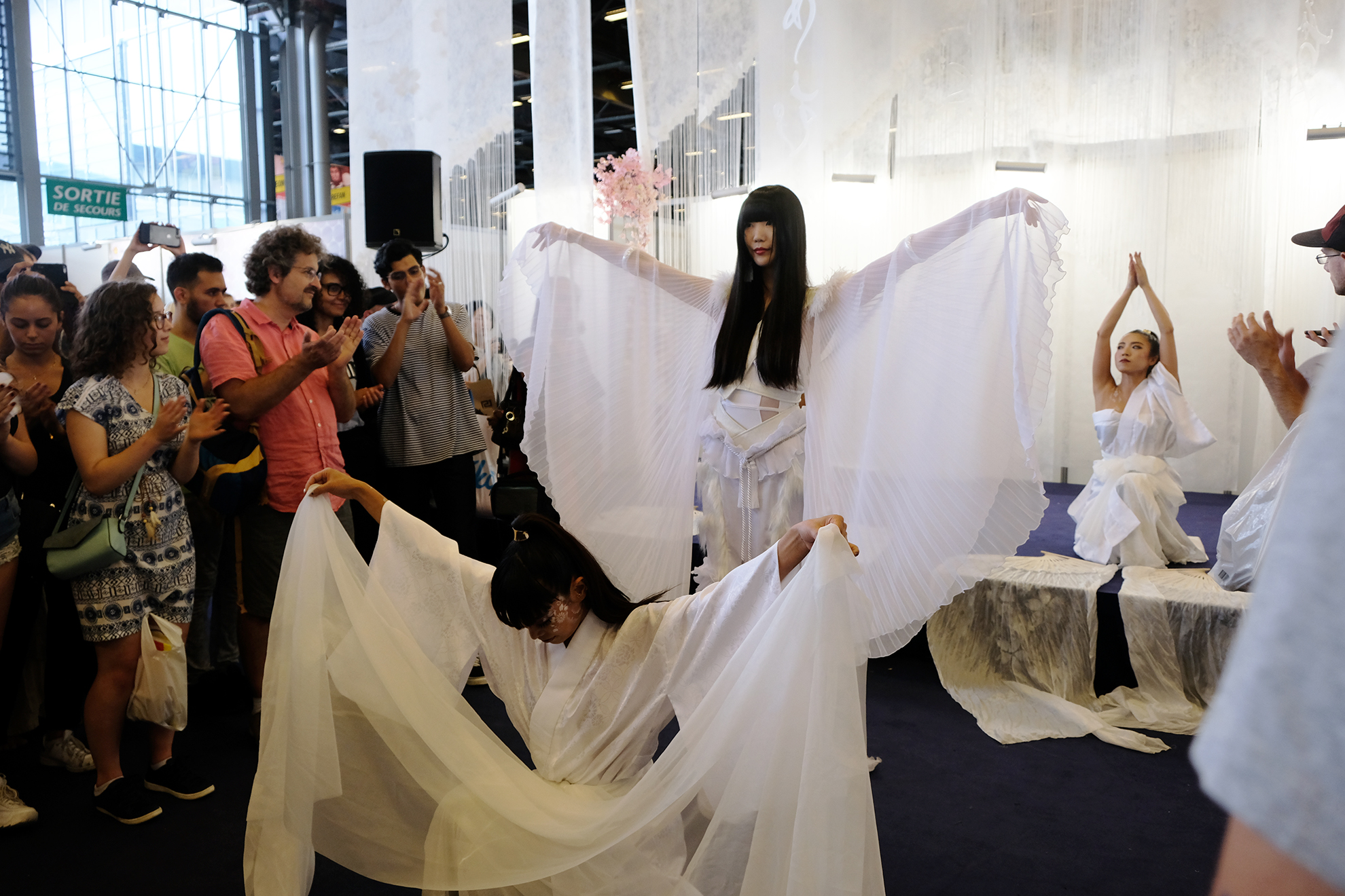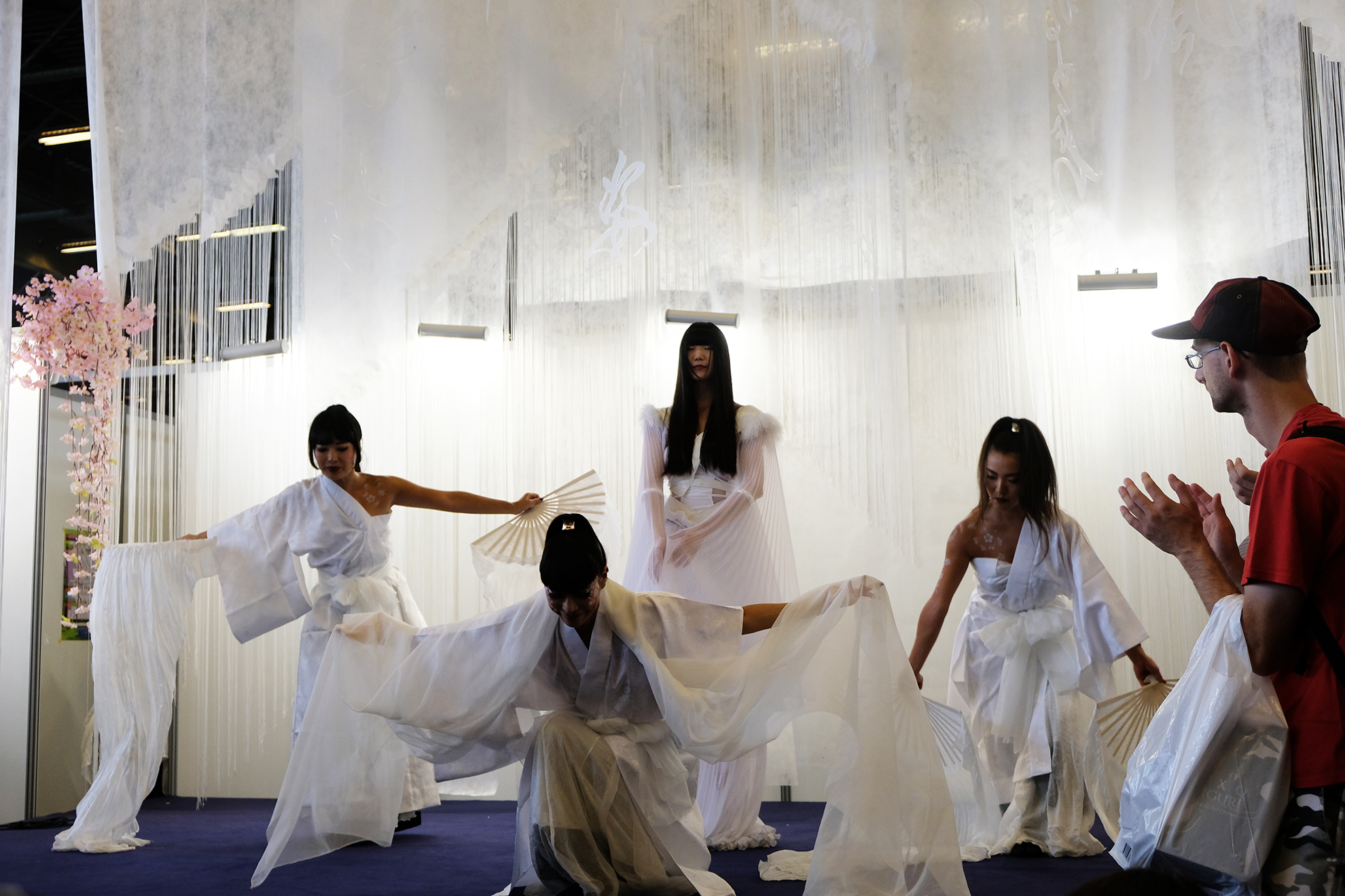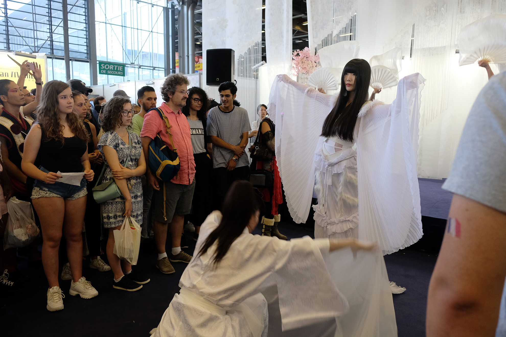 Japan Expo 2018におけるKIRIEさんのWABISABIブースでの”羽衣道中”。