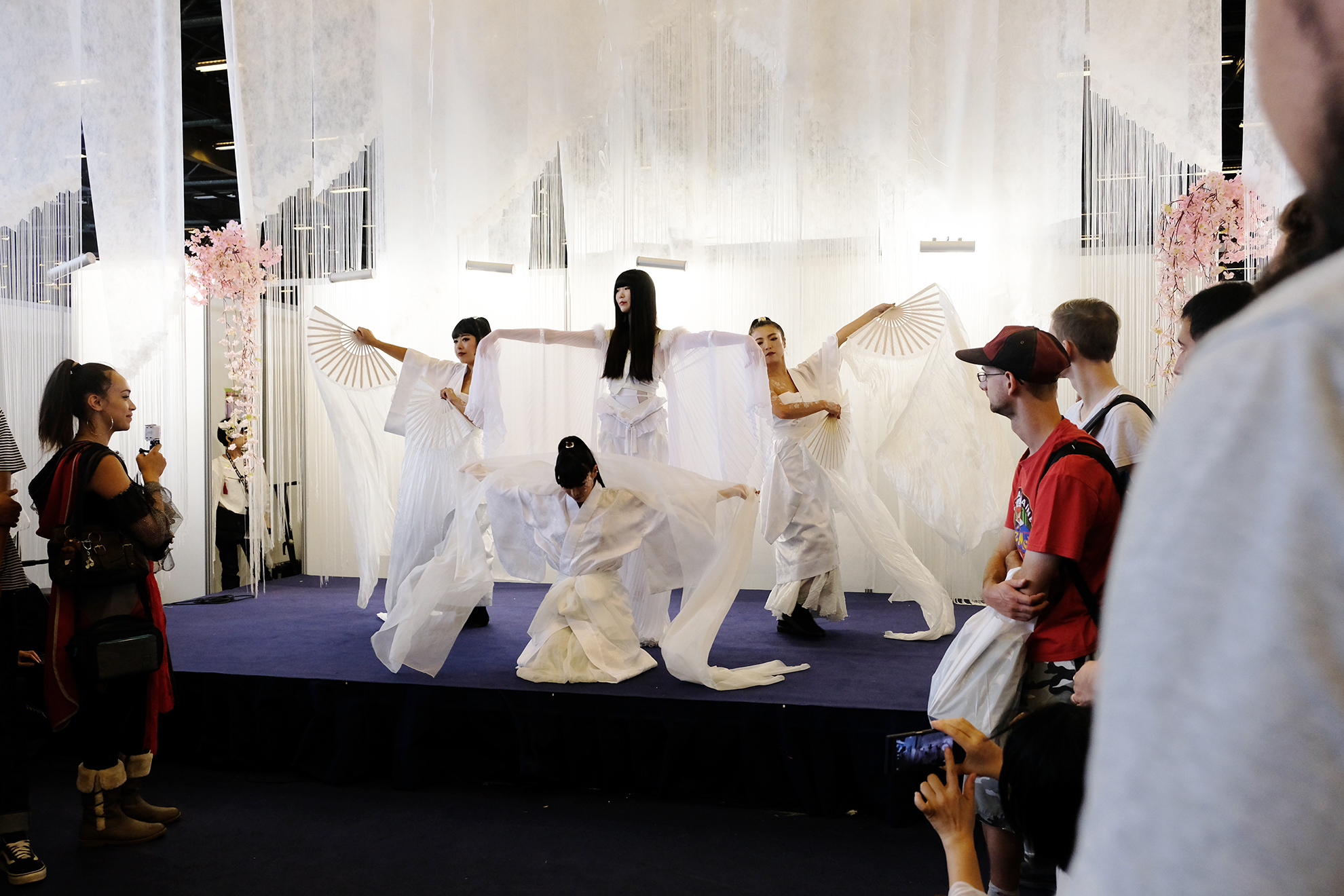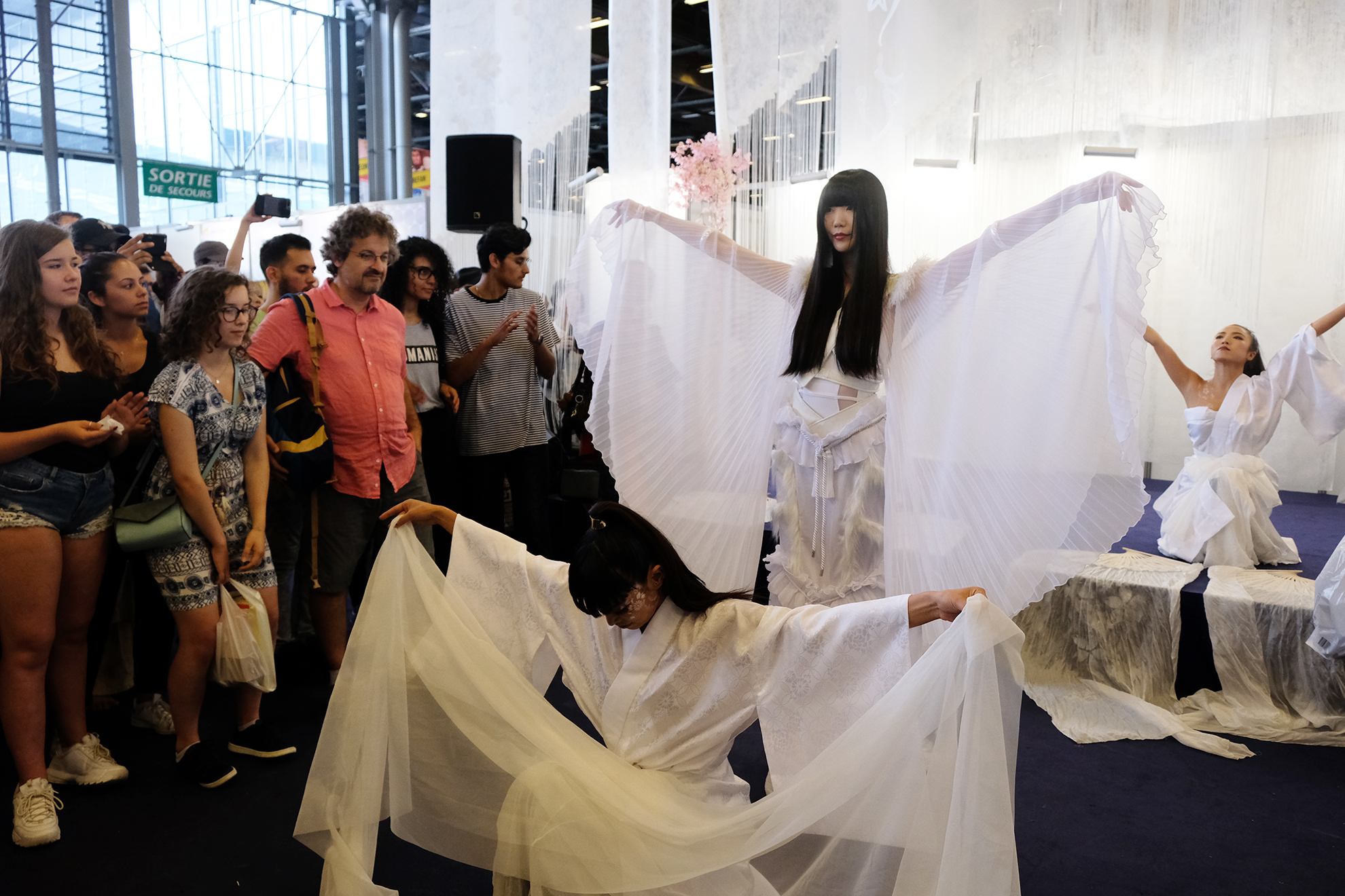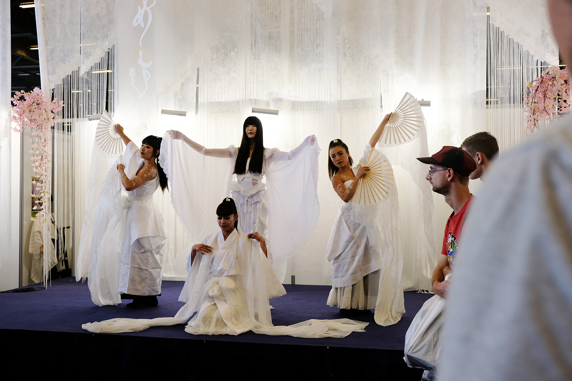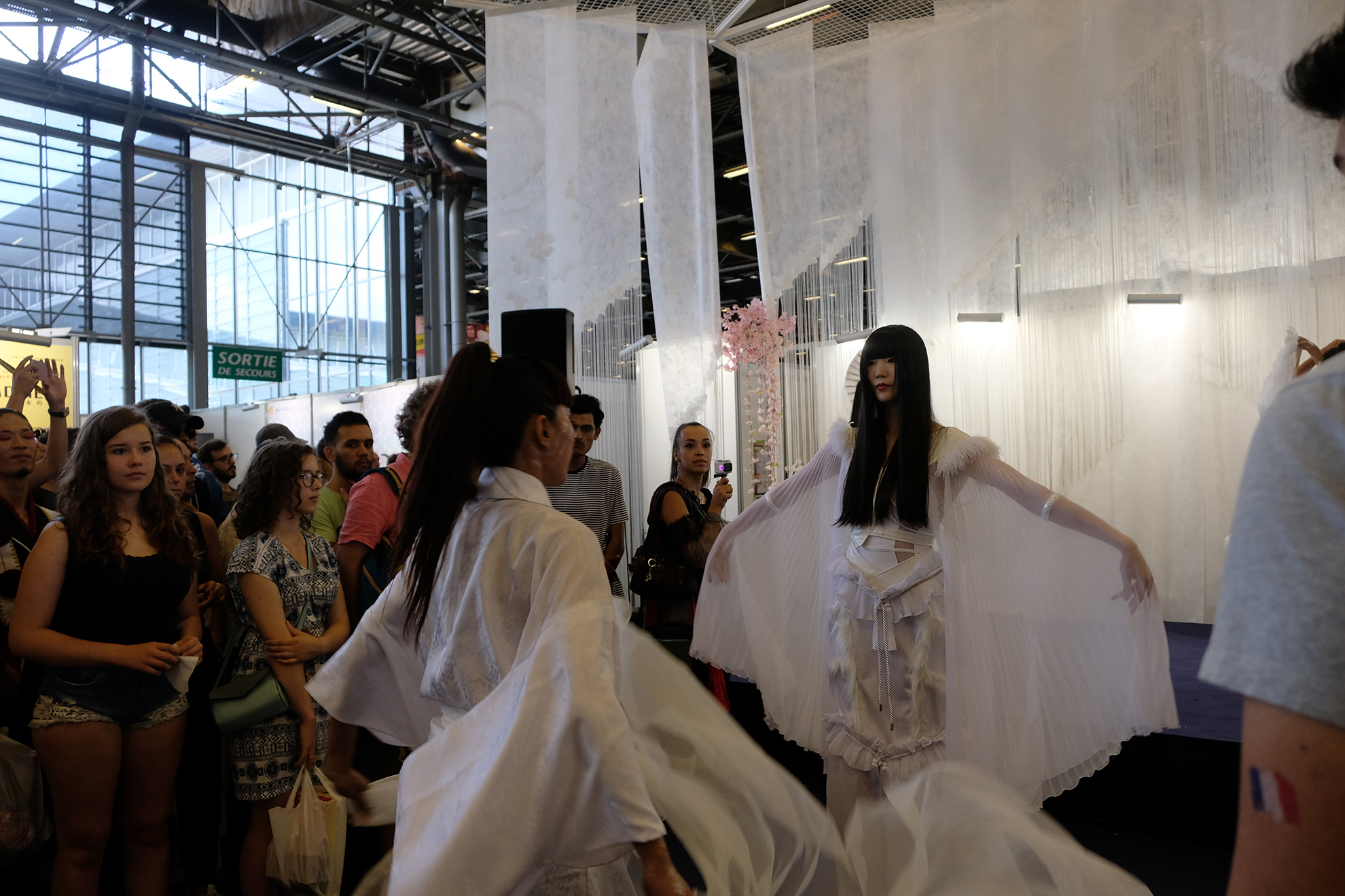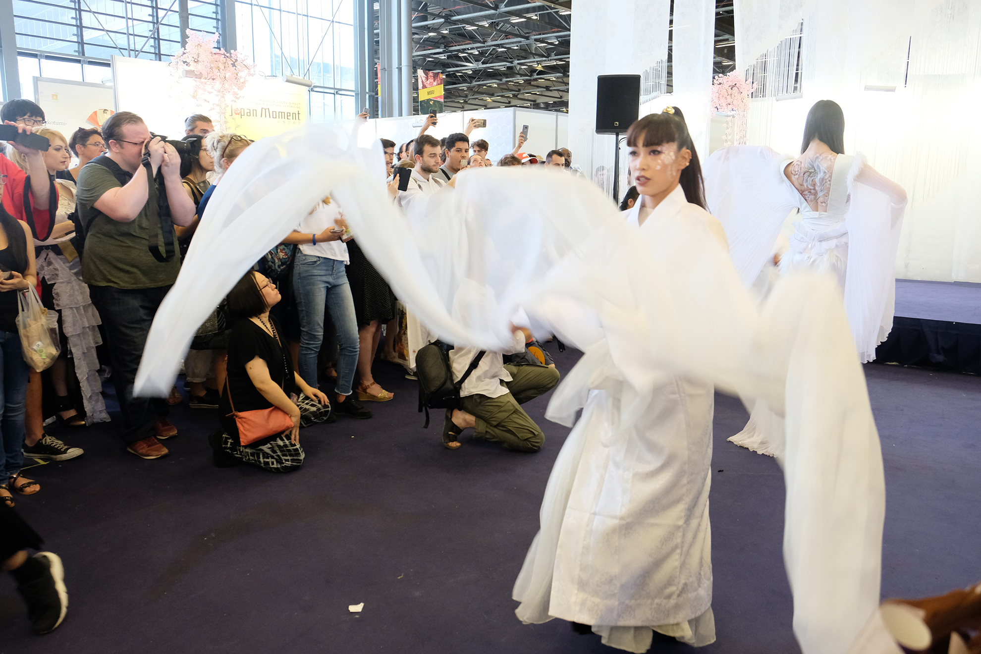 Japan Expo 2018におけるKIRIEさんのWABISABIブースでの”羽衣道中”。