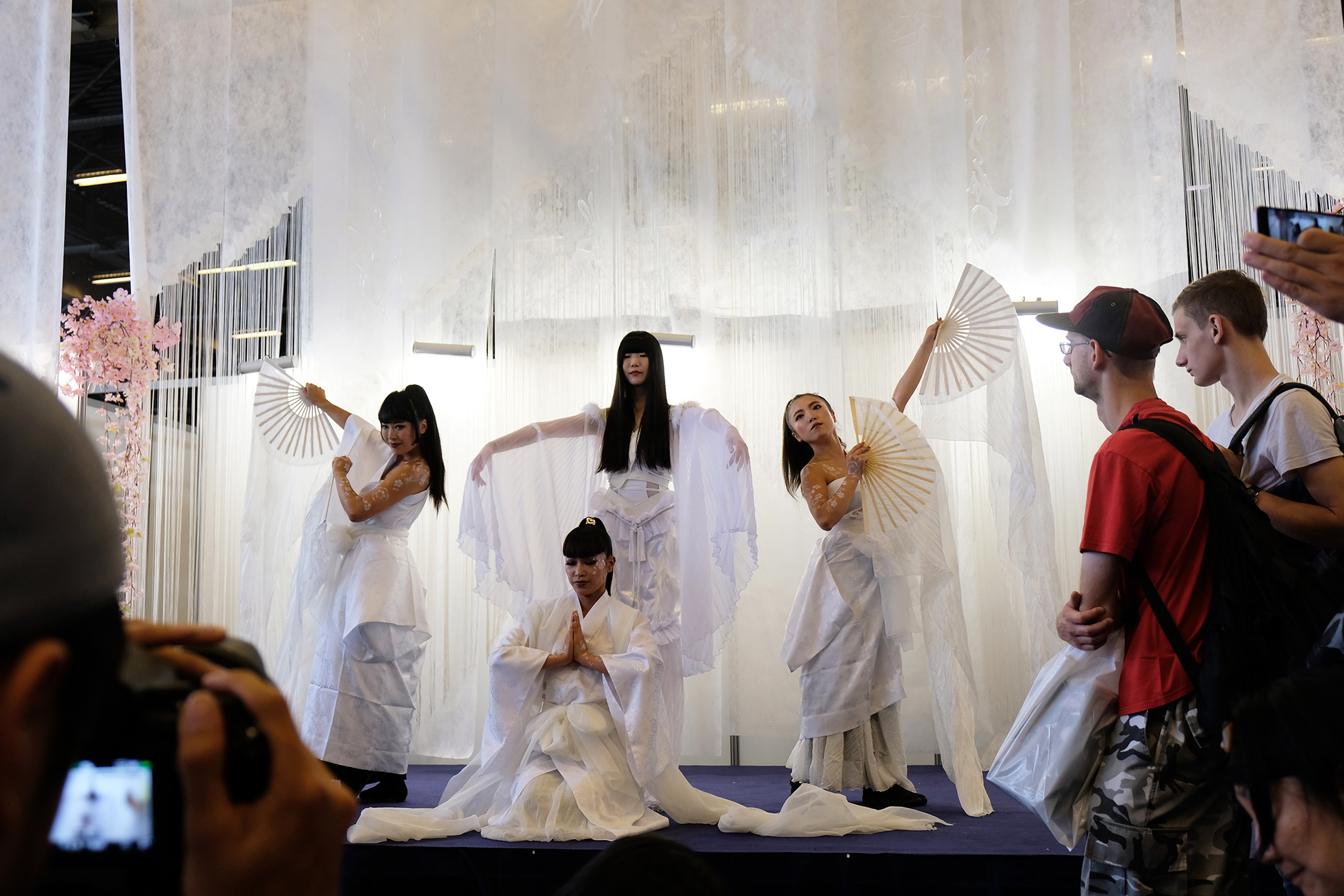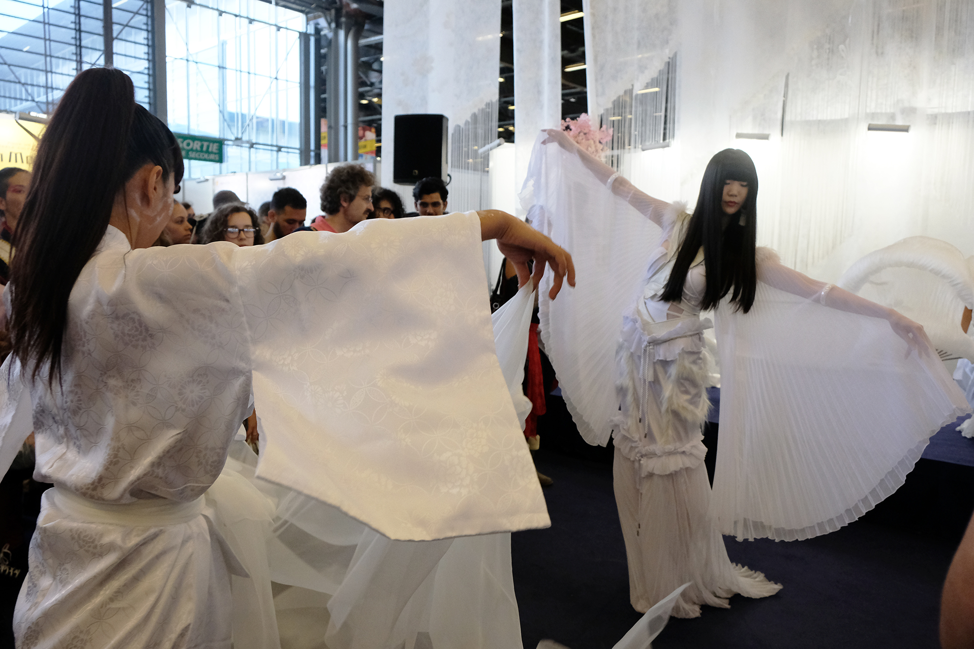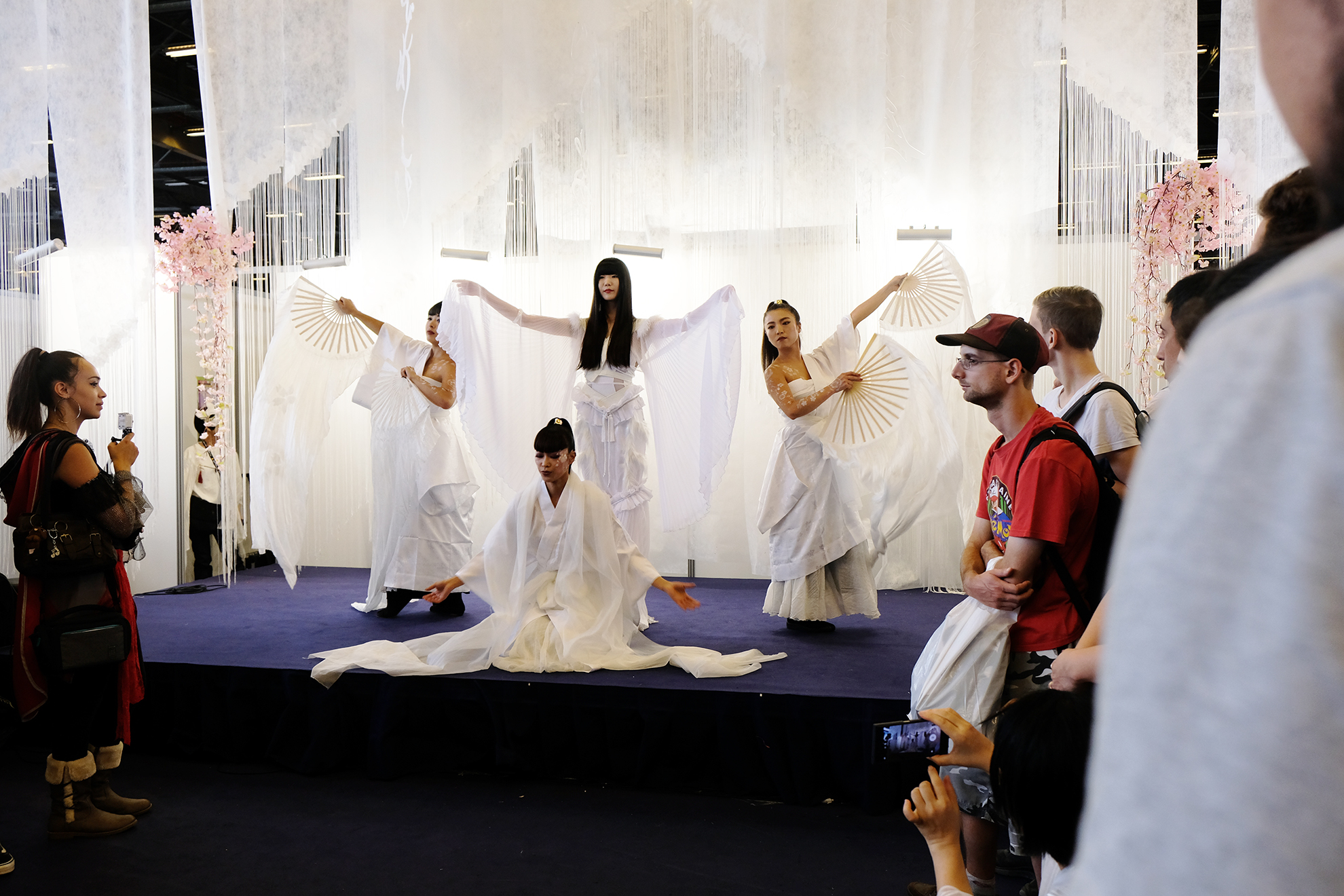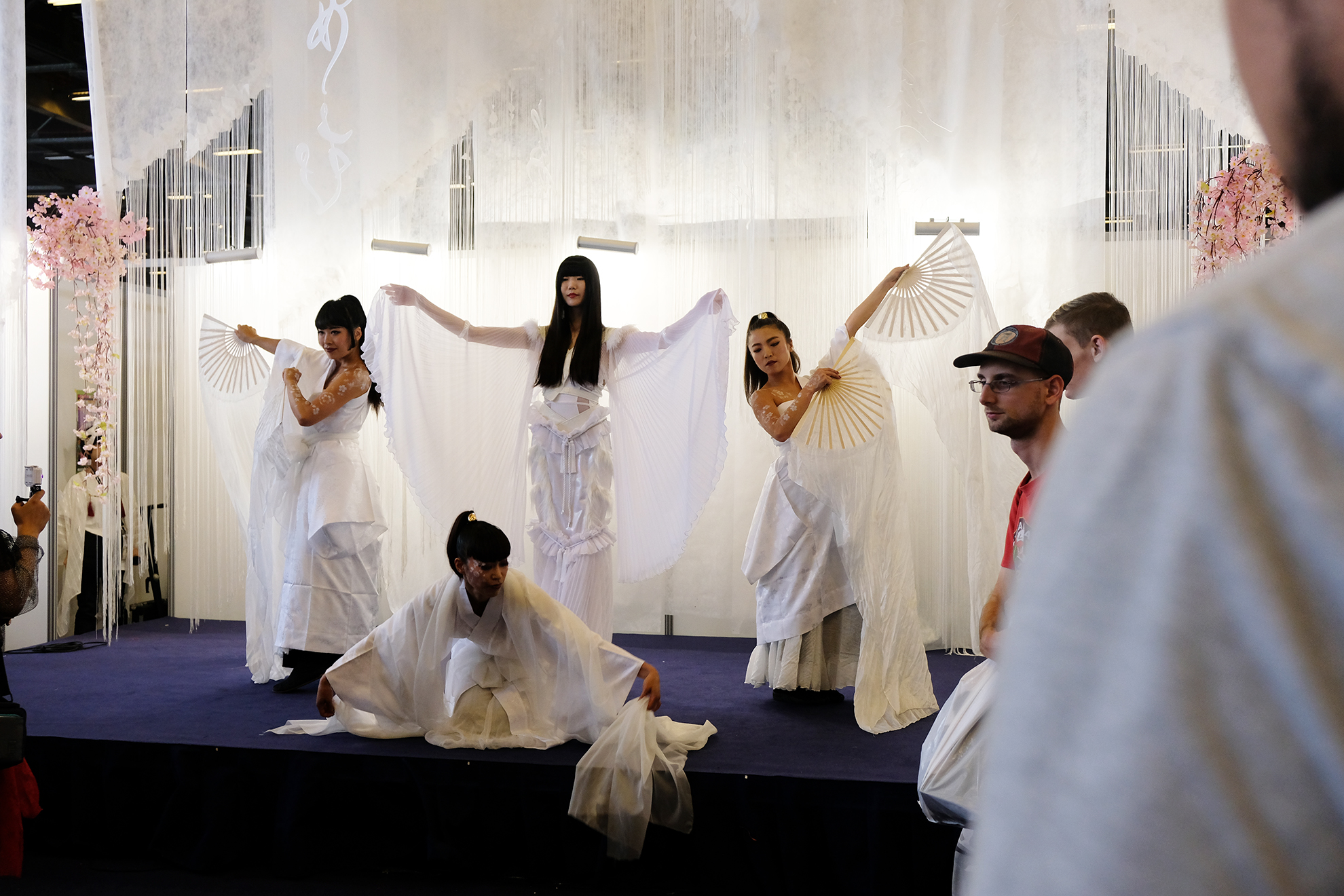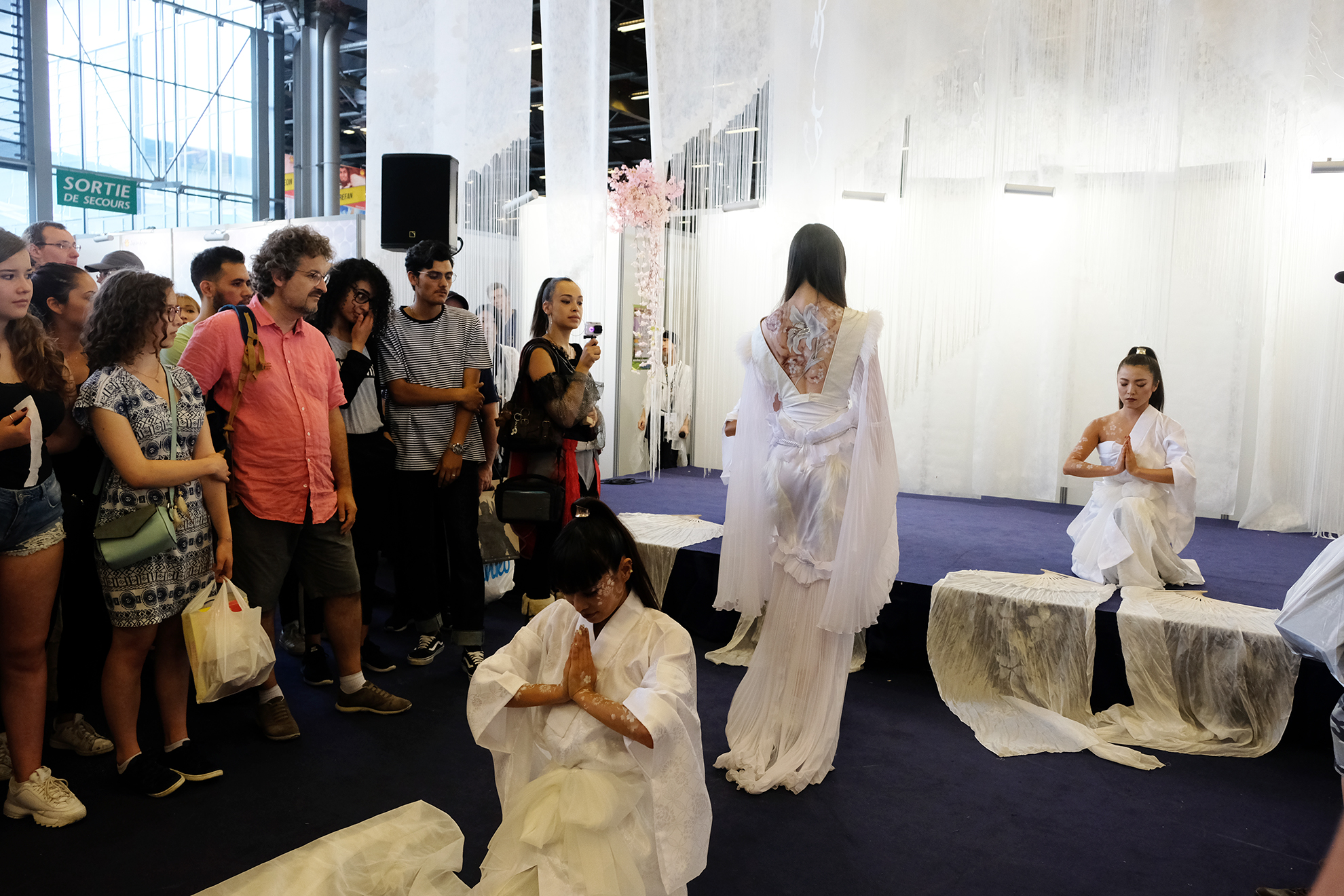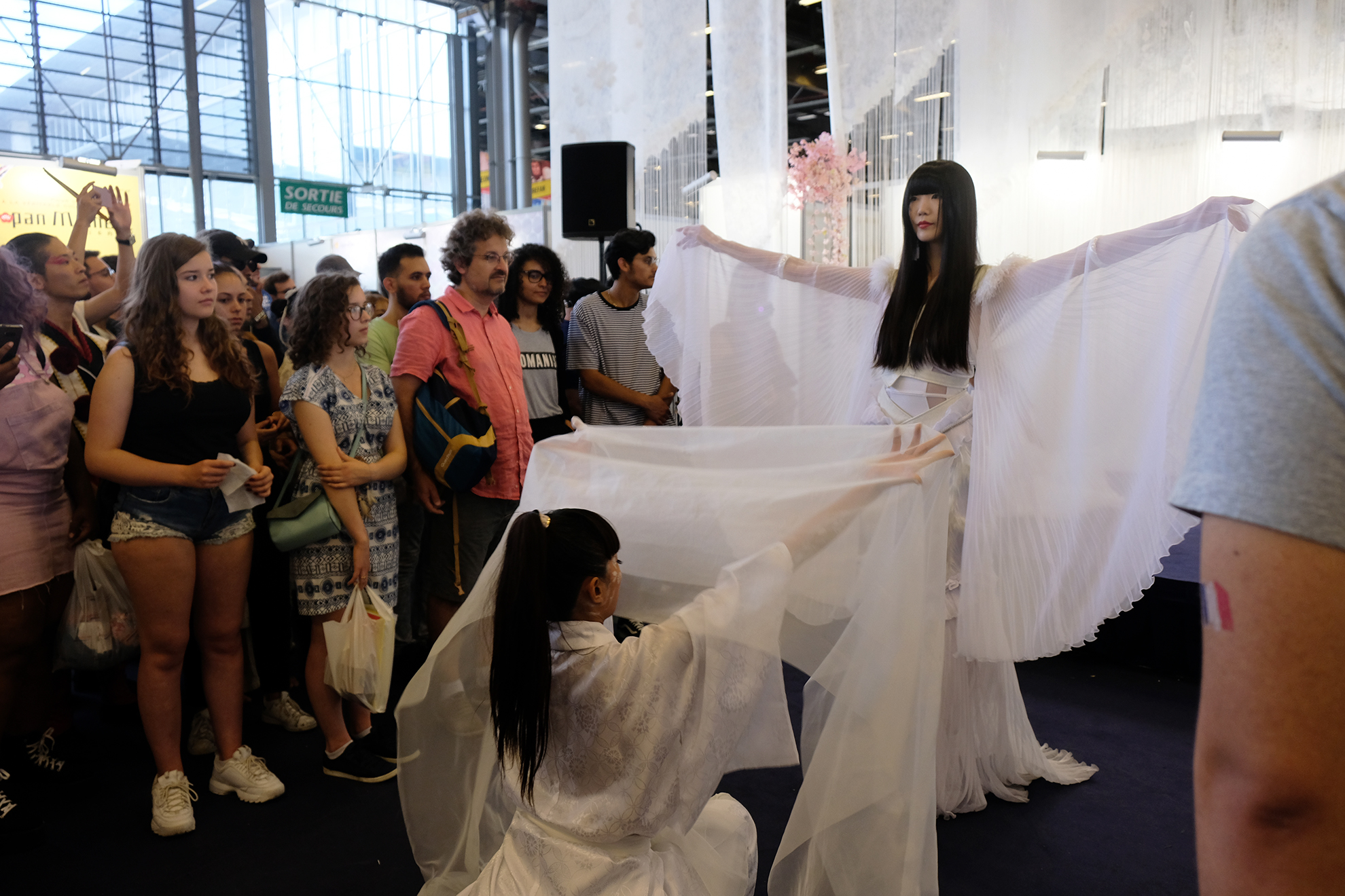 Japan Expo 2018におけるKIRIEさんのWABISABIブースでの”羽衣道中”。