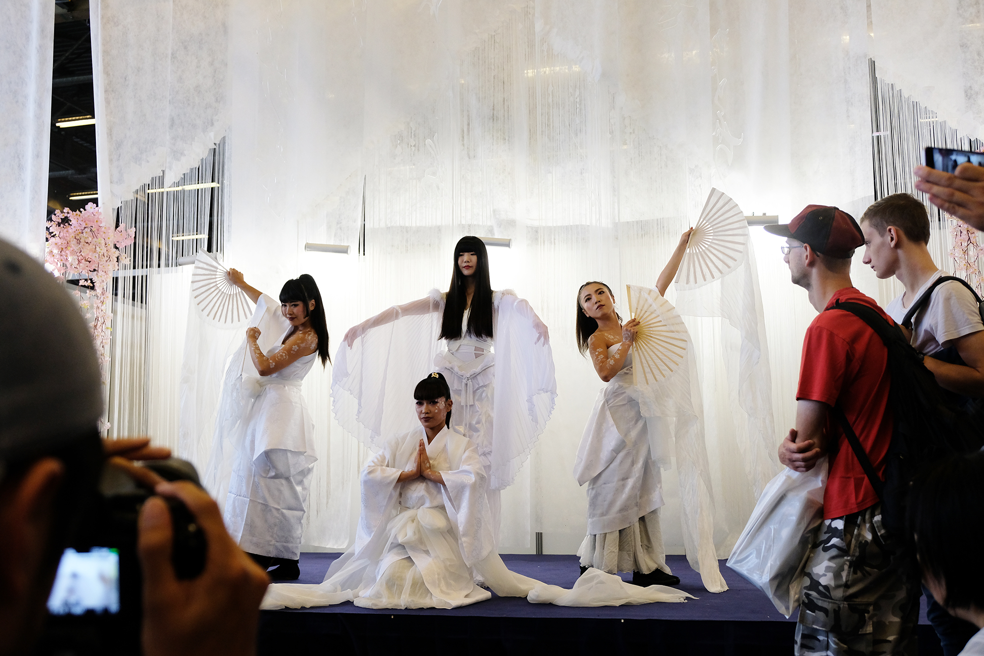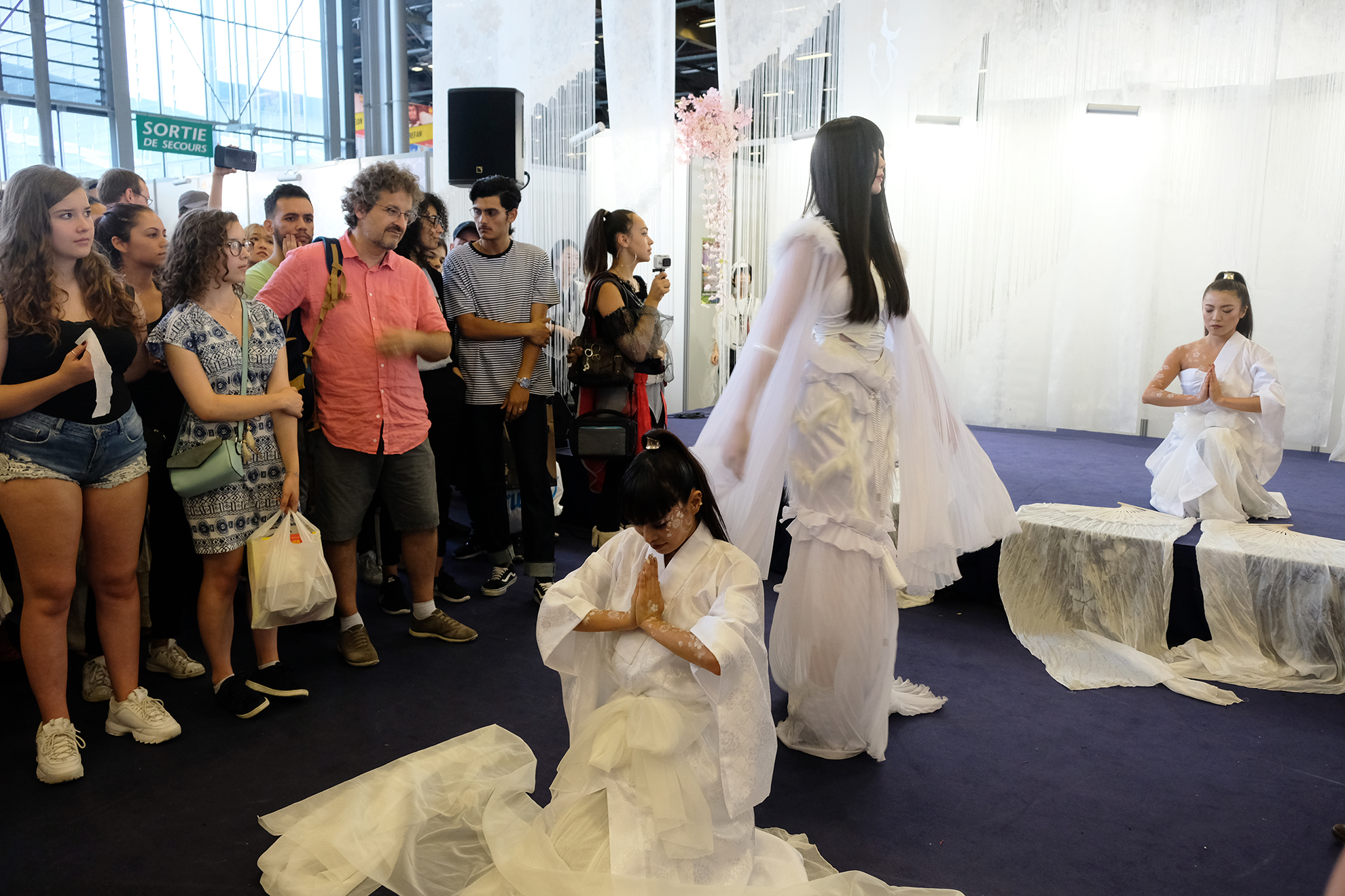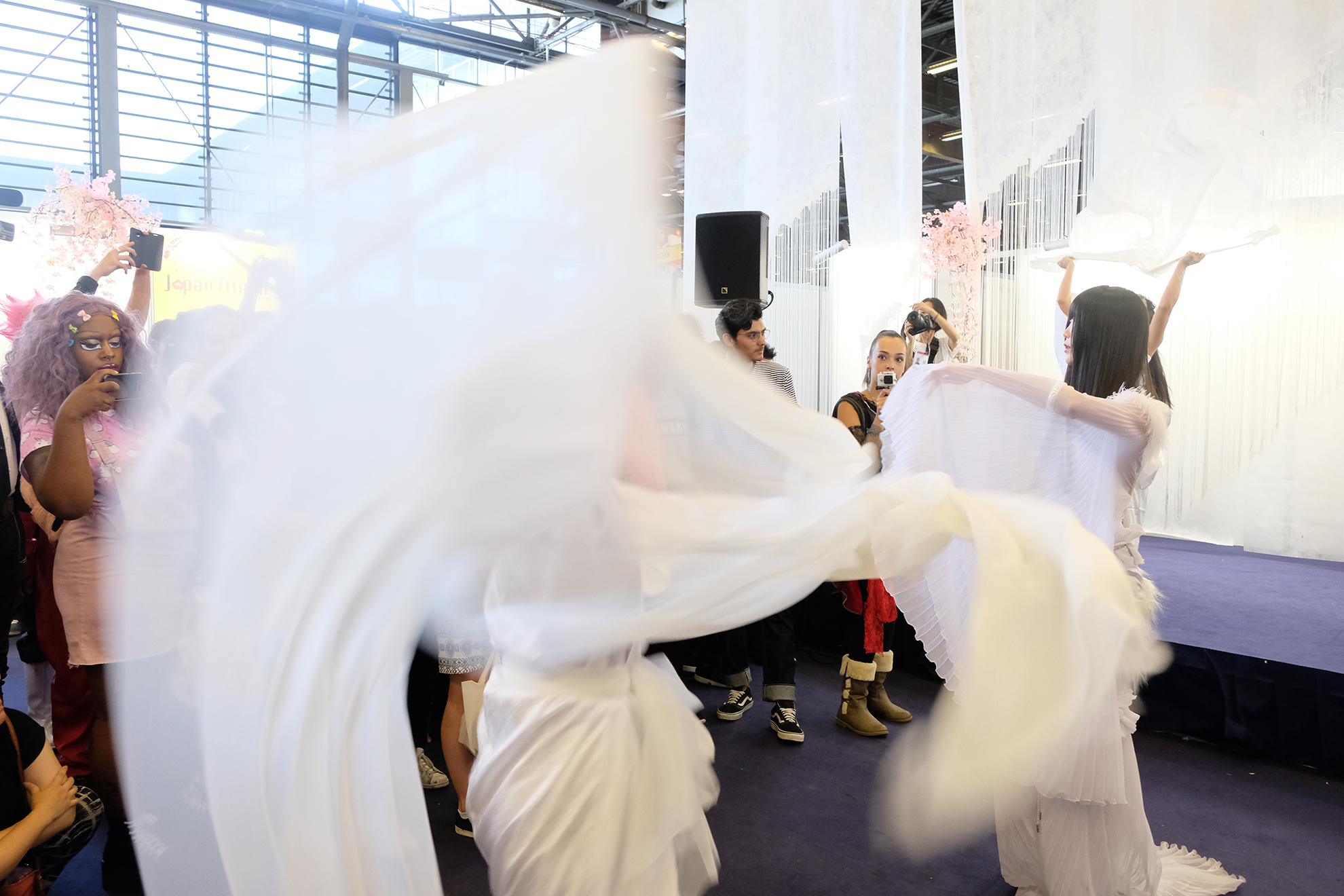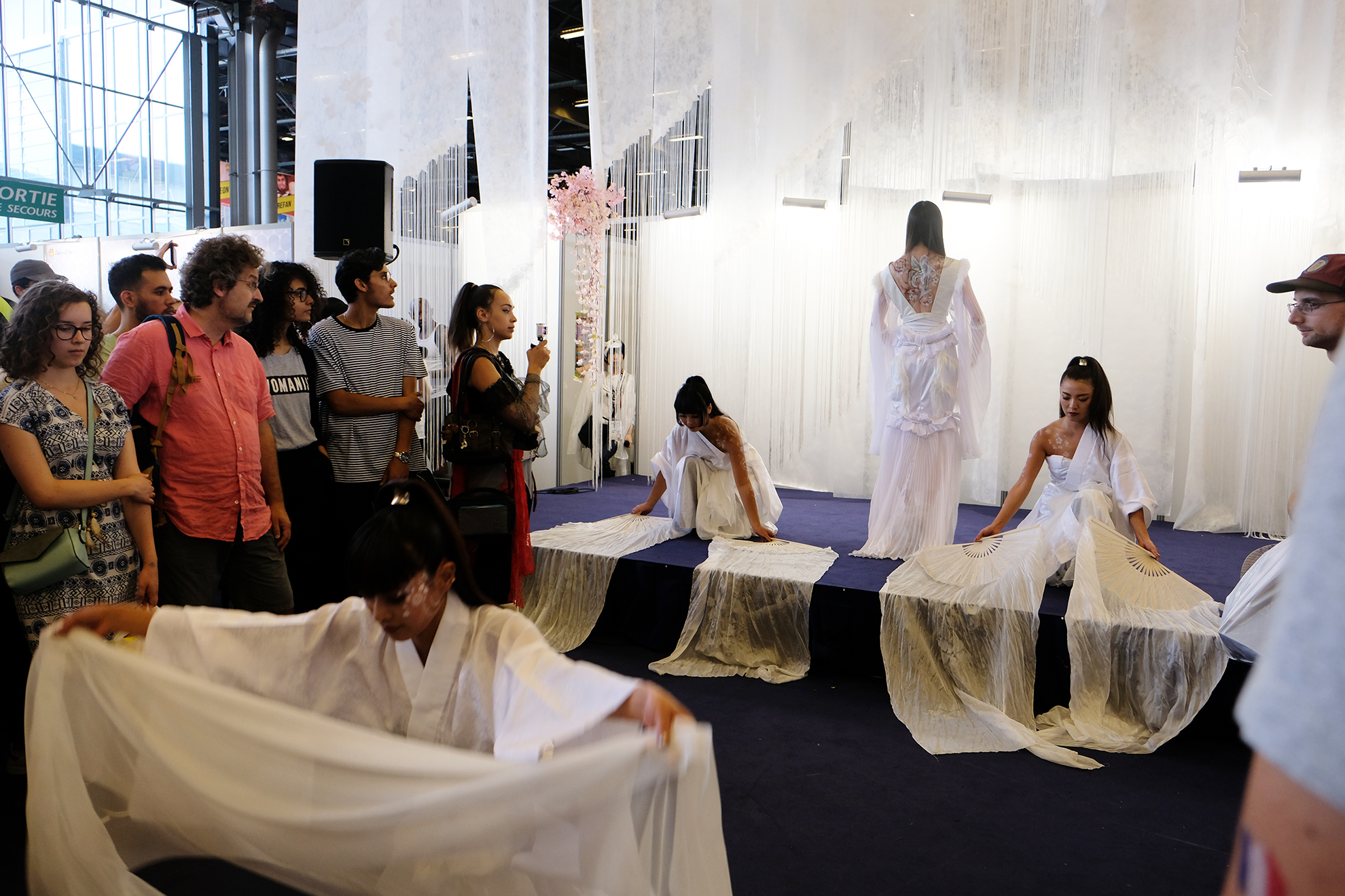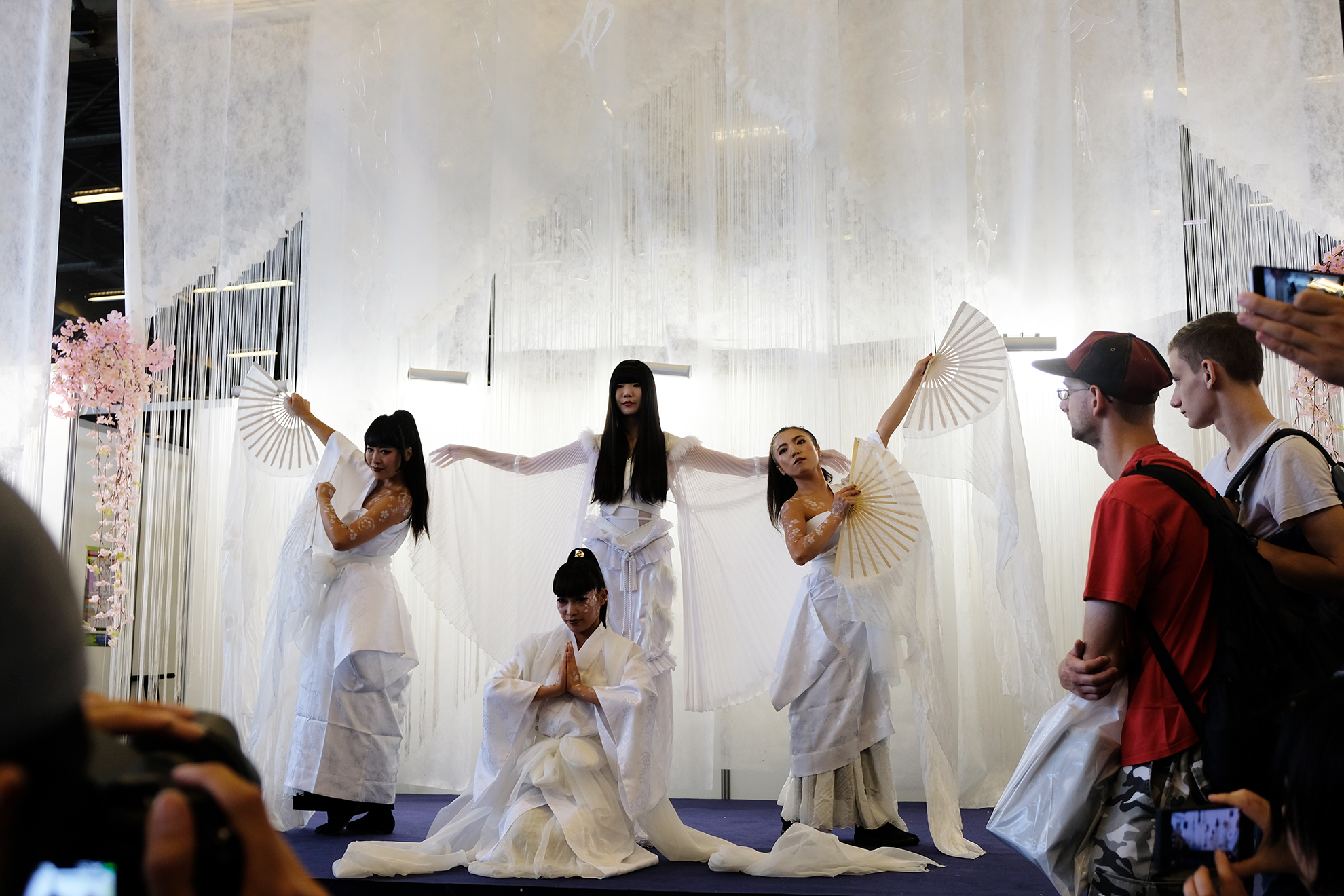 Japan Expo 2018におけるKIRIEさんのWABISABIブースでの”羽衣道中”。