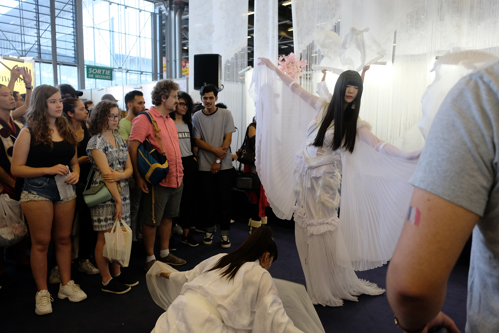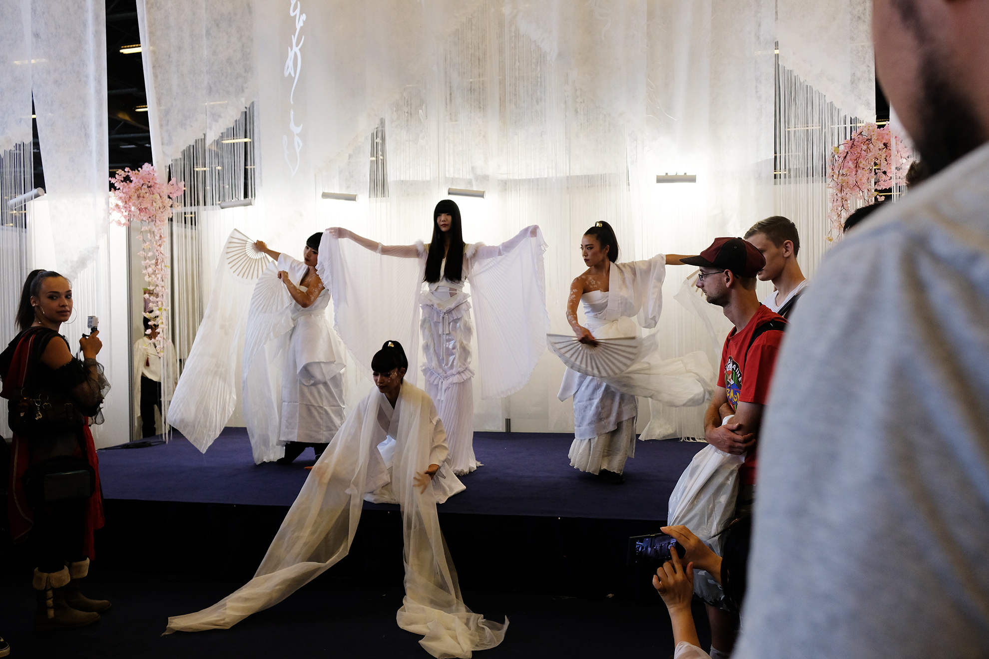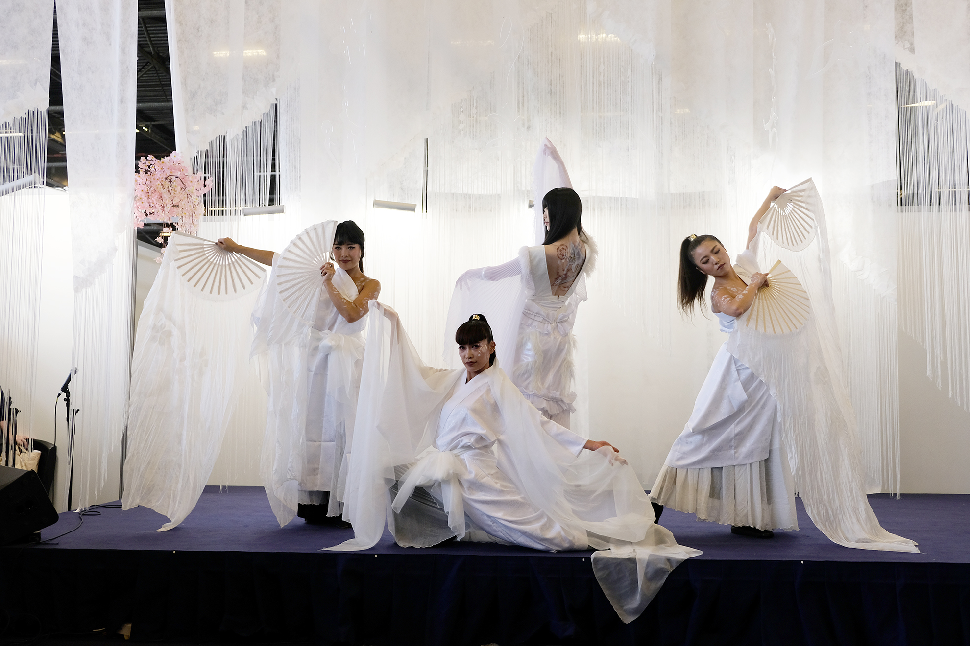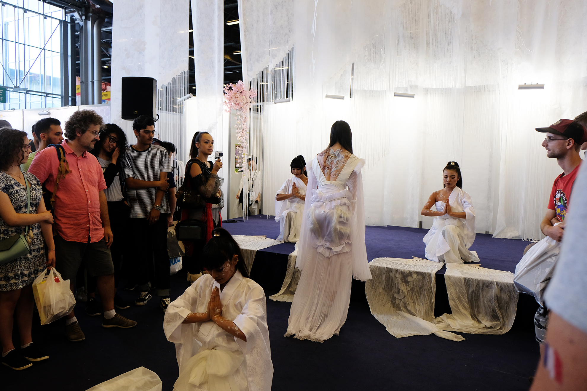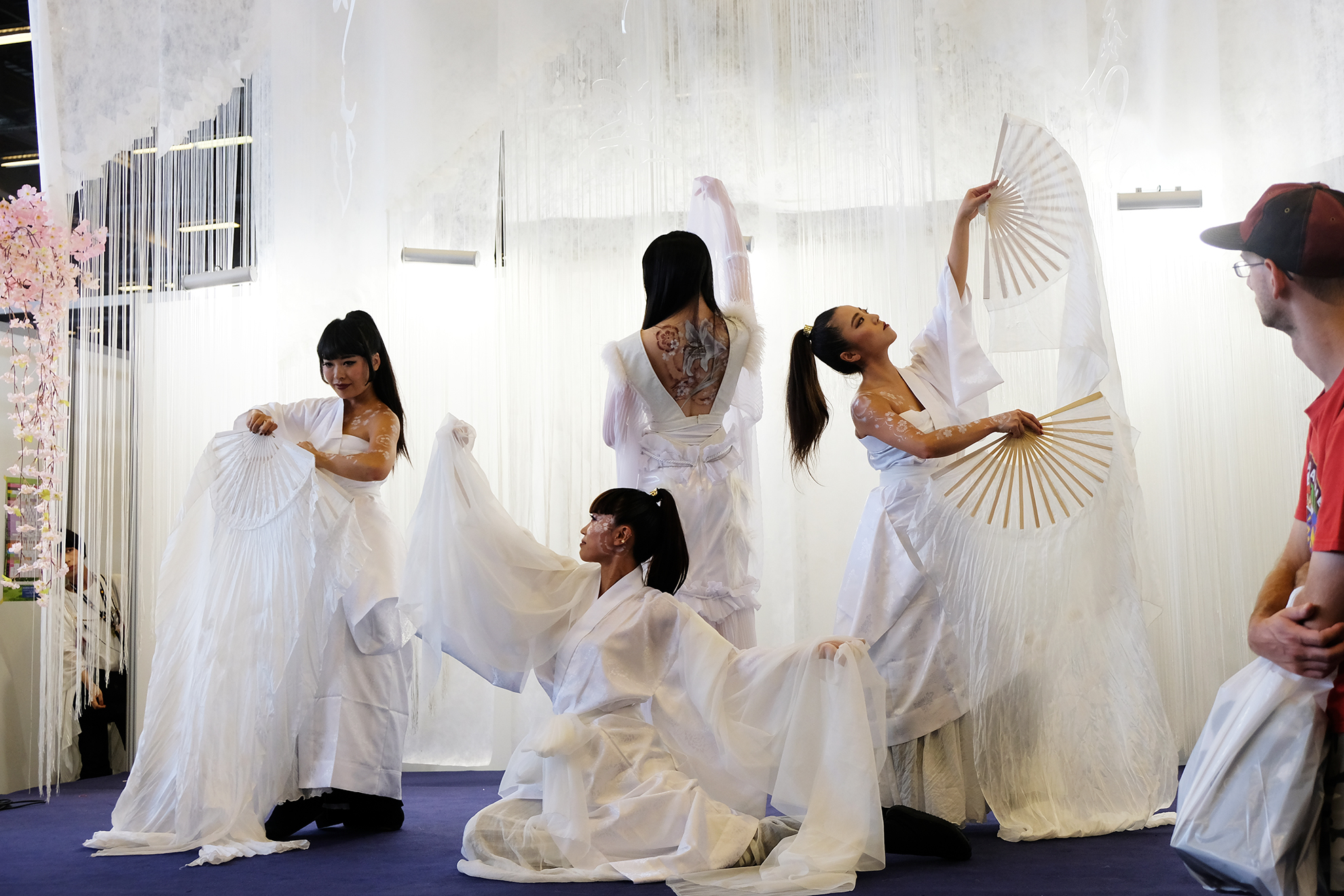 Japan Expo 2018におけるKIRIEさんのWABISABIブースでの”羽衣道中”。