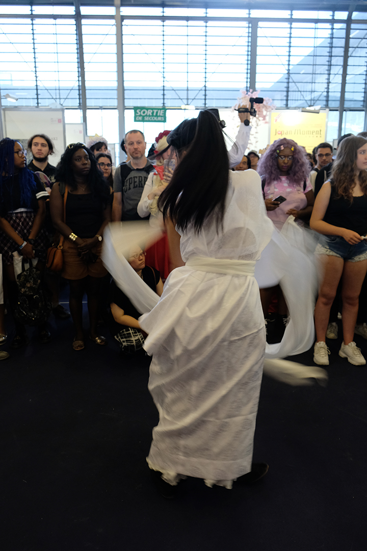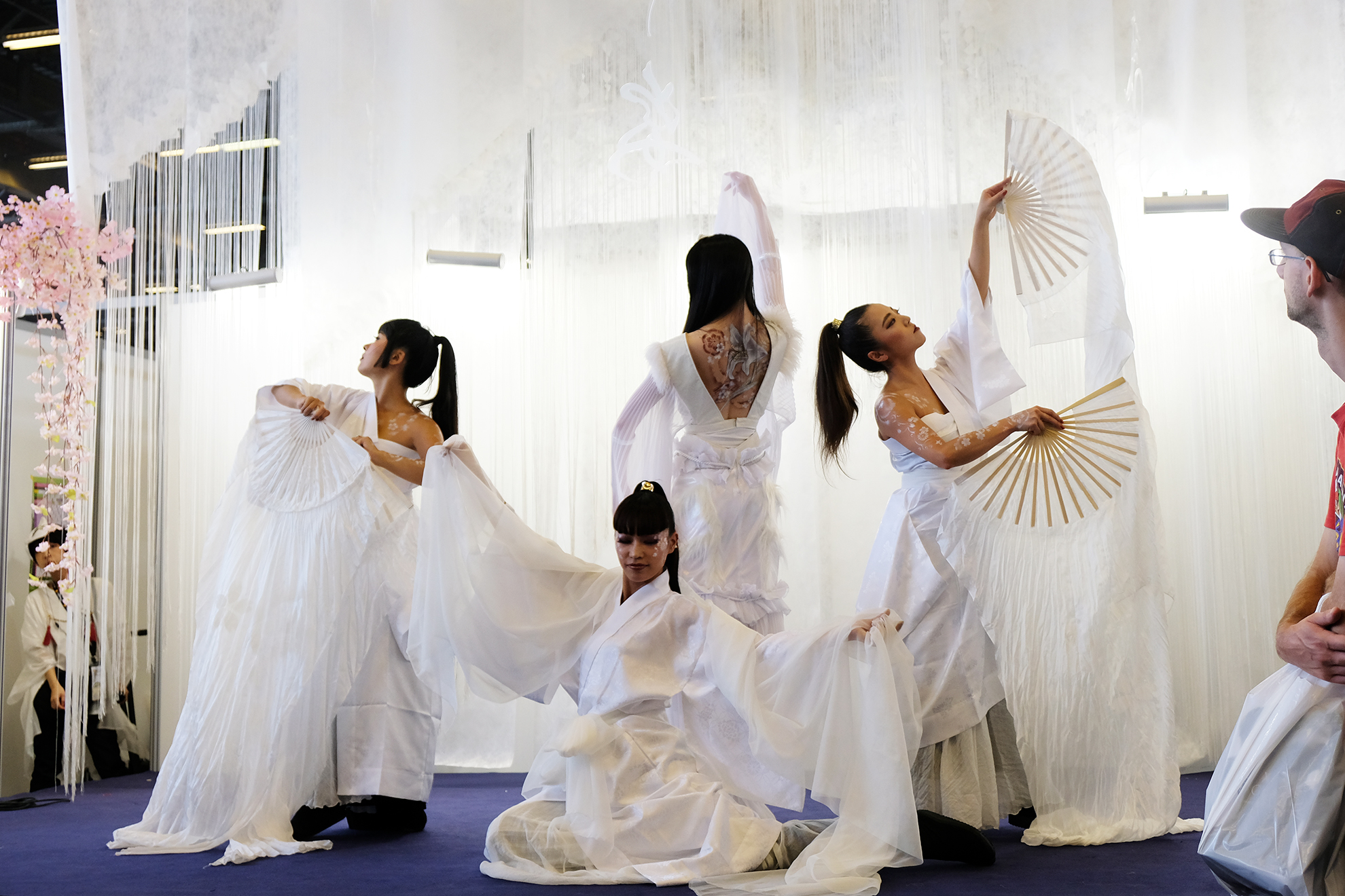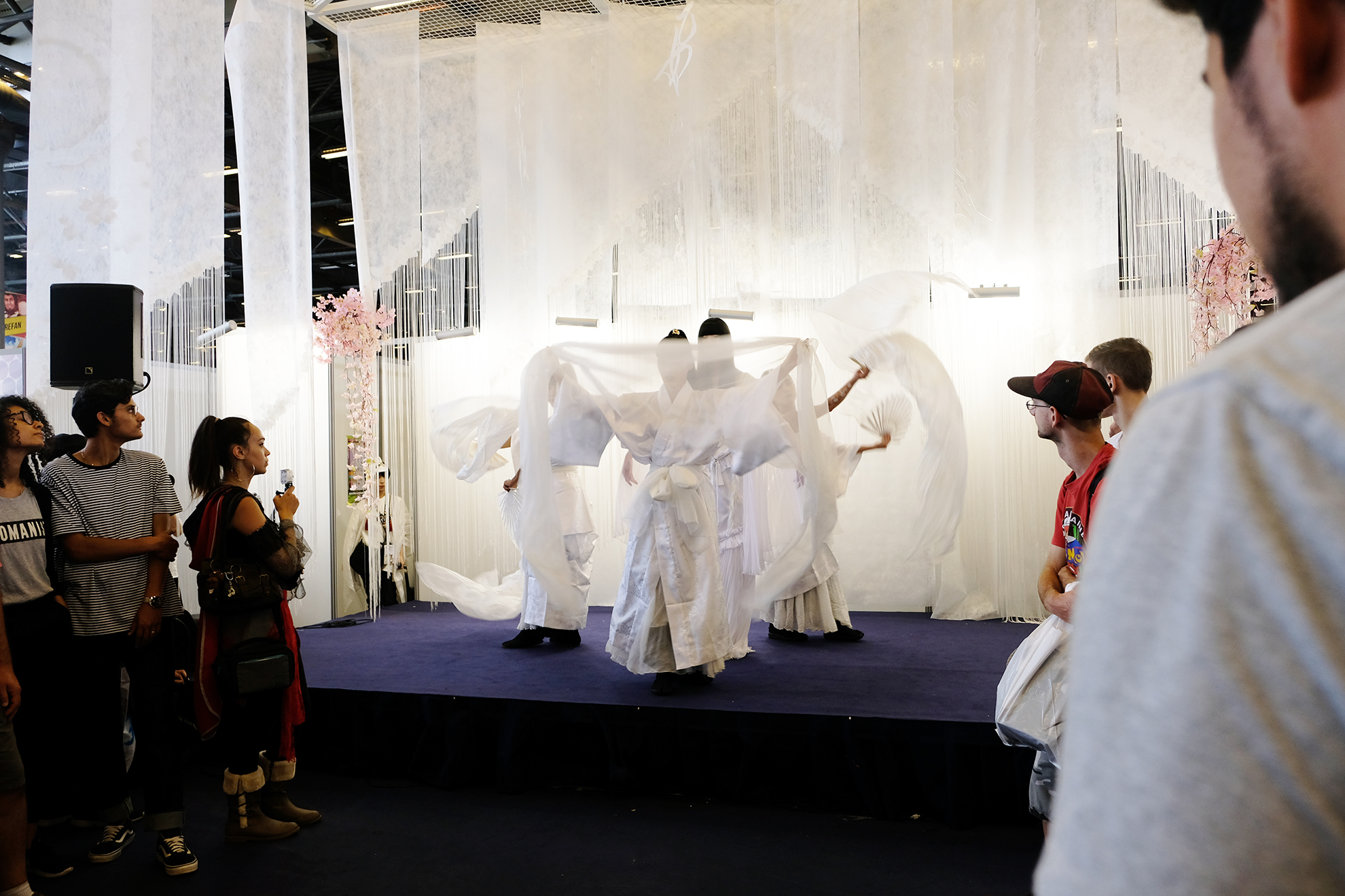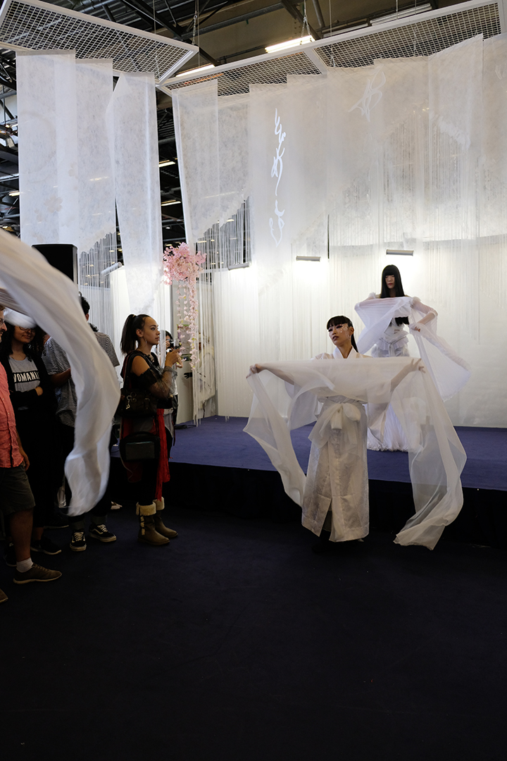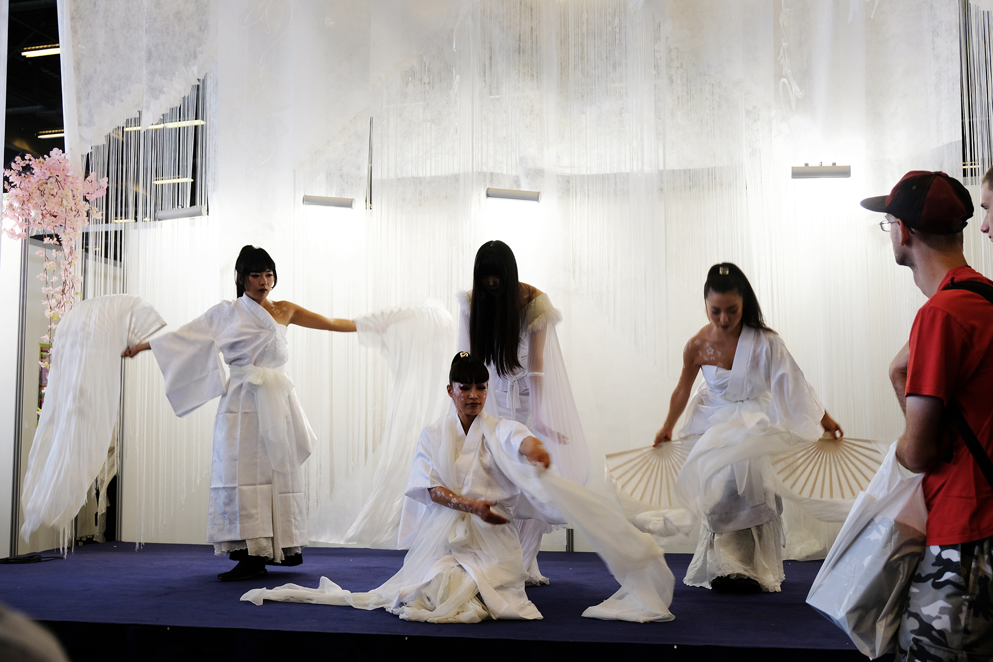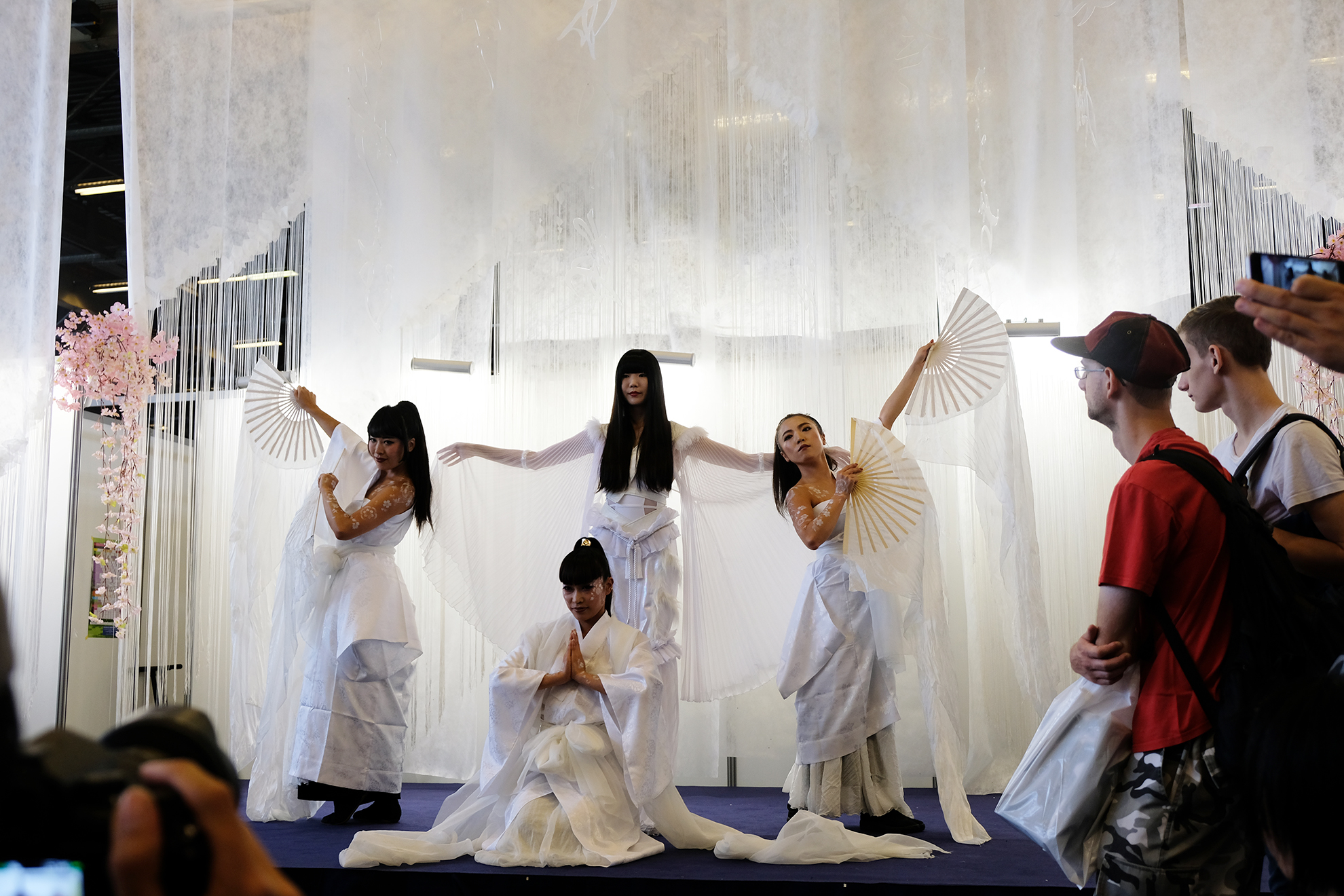 Japan Expo 2018におけるKIRIEさんのWABISABIブースでの”羽衣道中”。