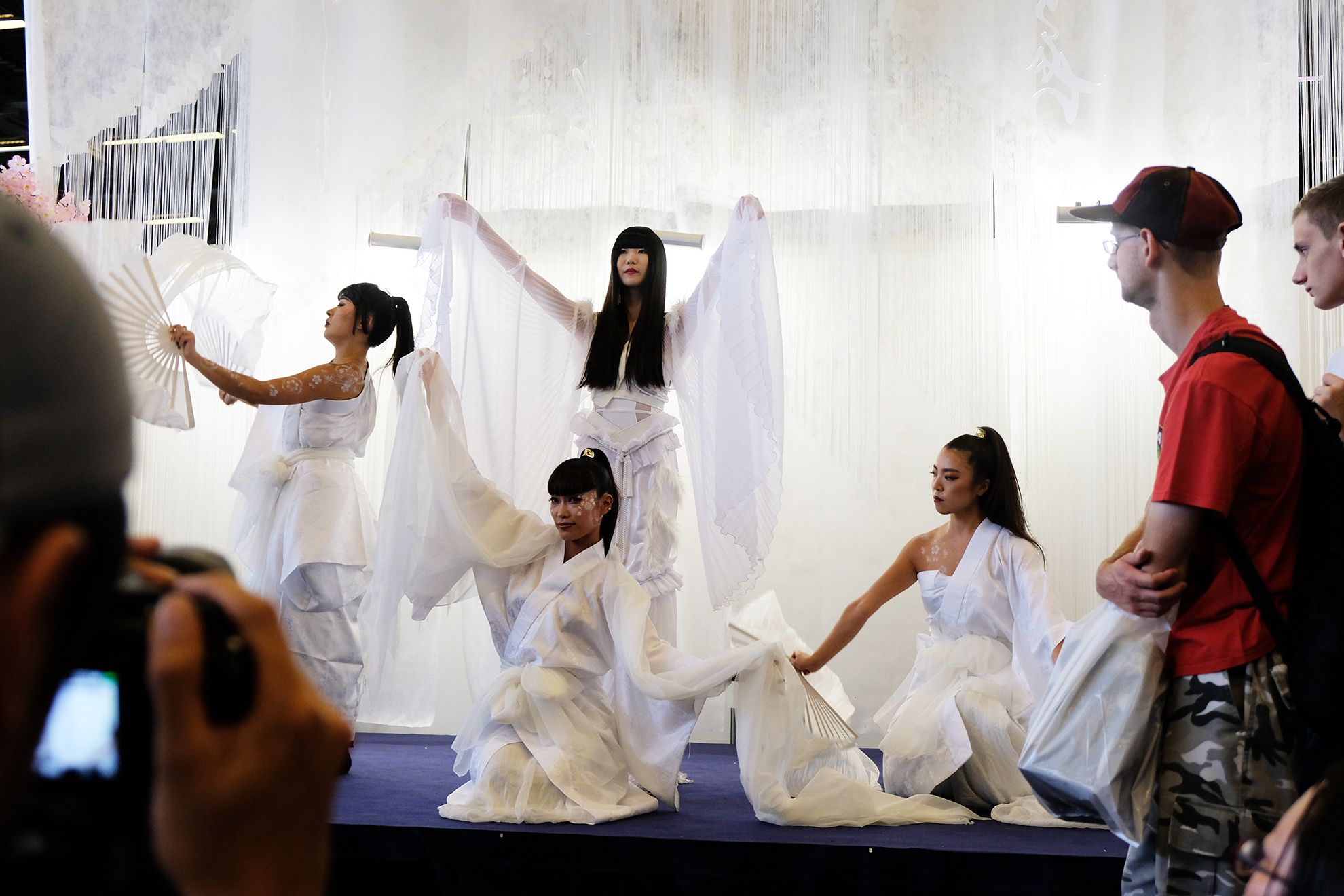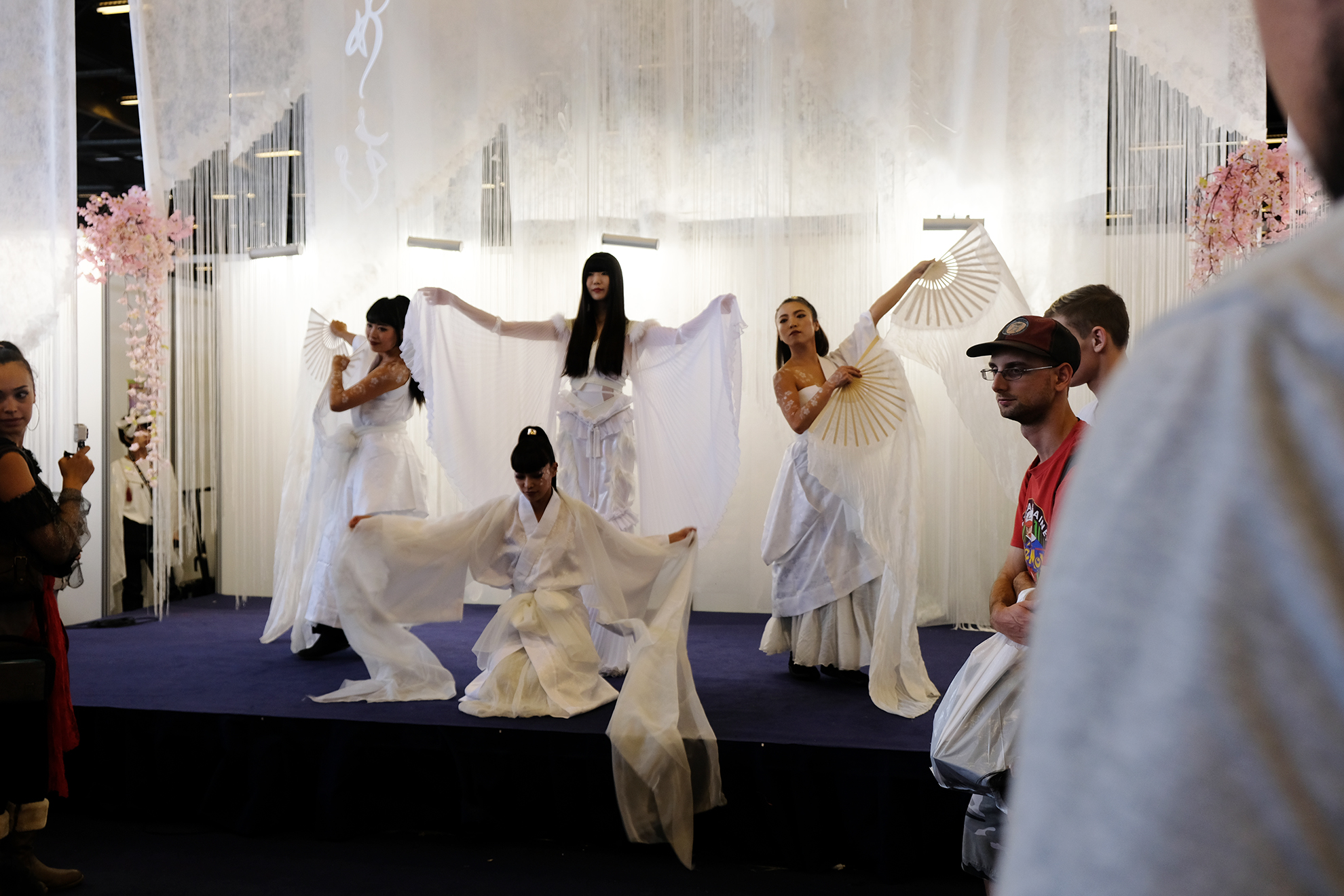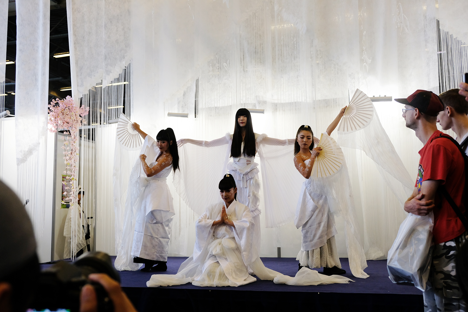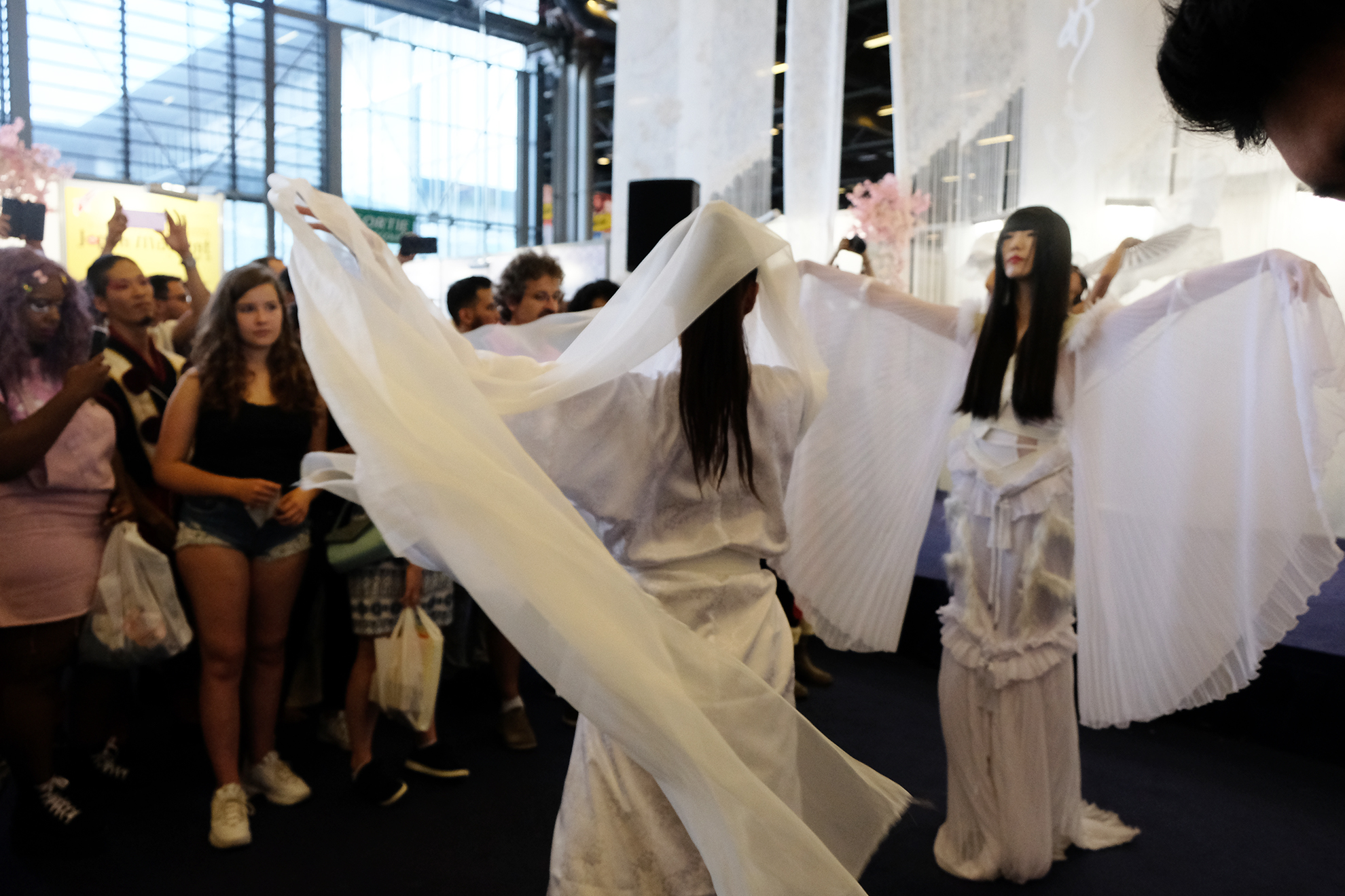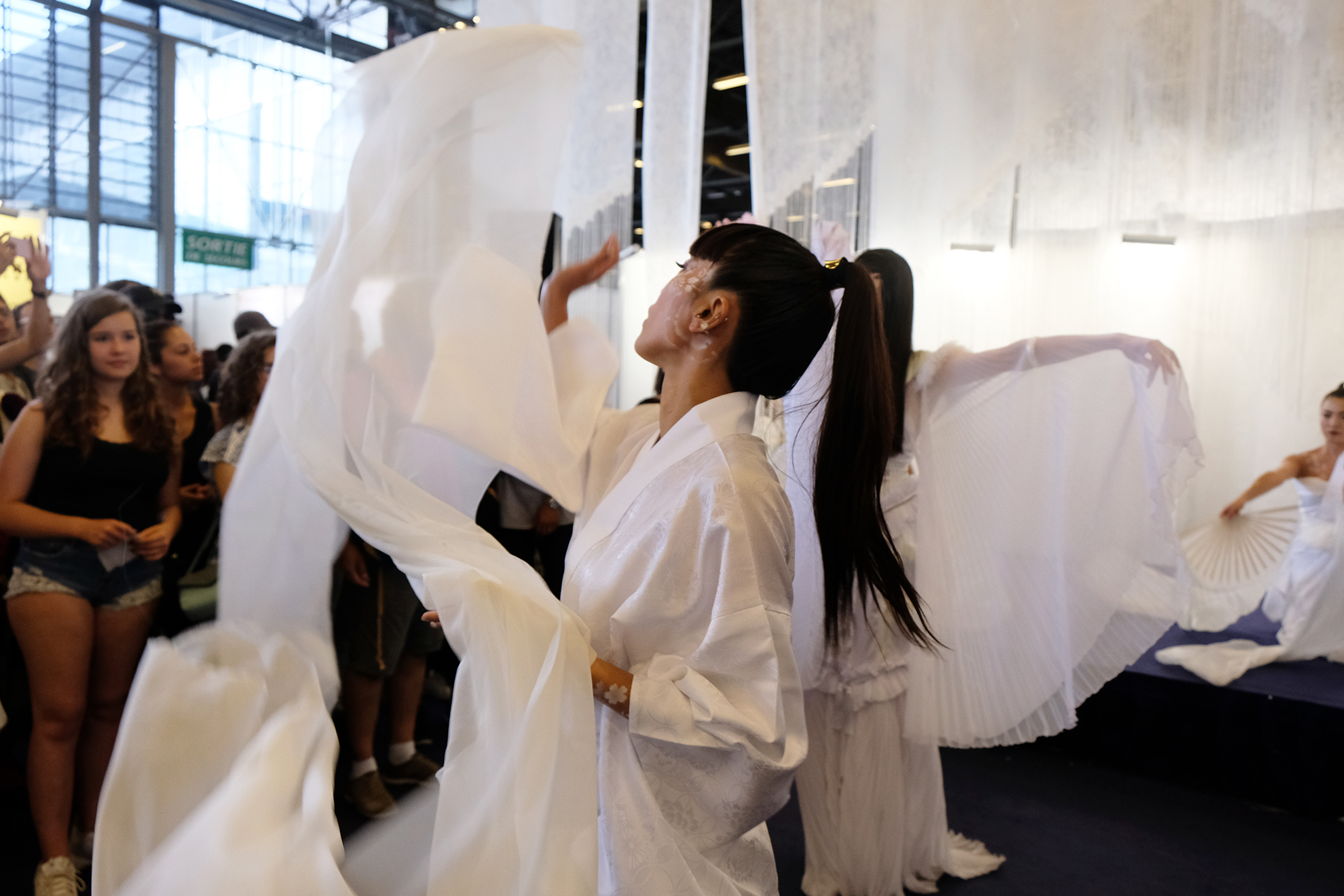 Japan Expo 2018におけるKIRIEさんのWABISABIブースでの”羽衣道中”。