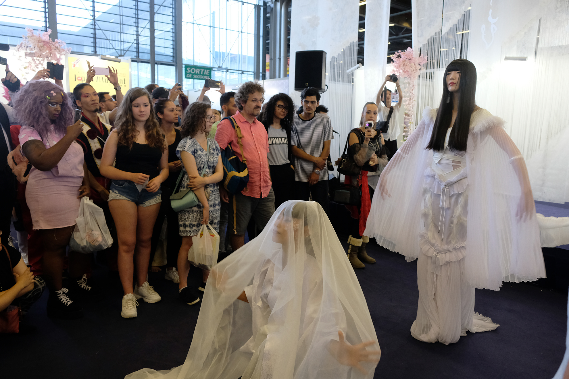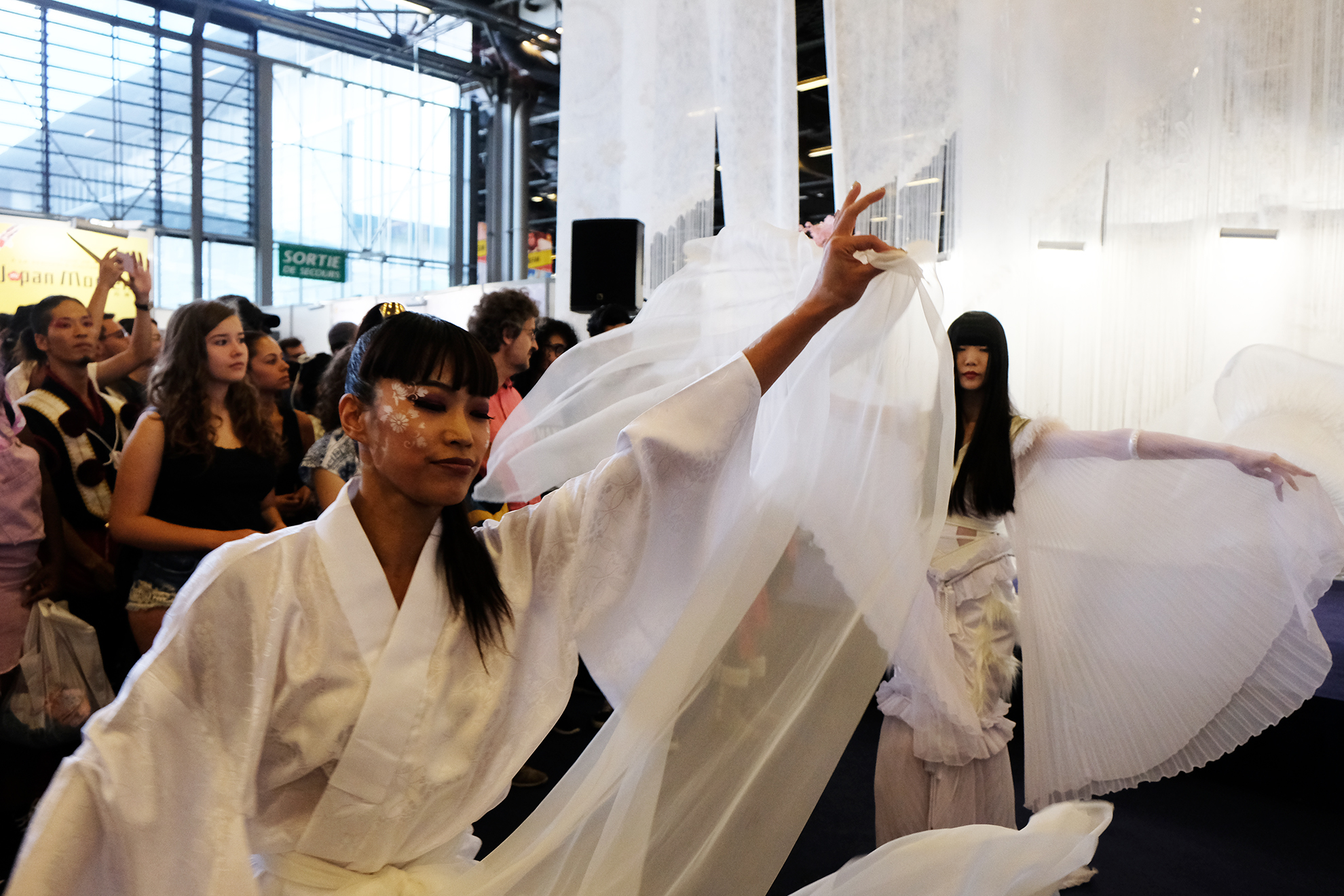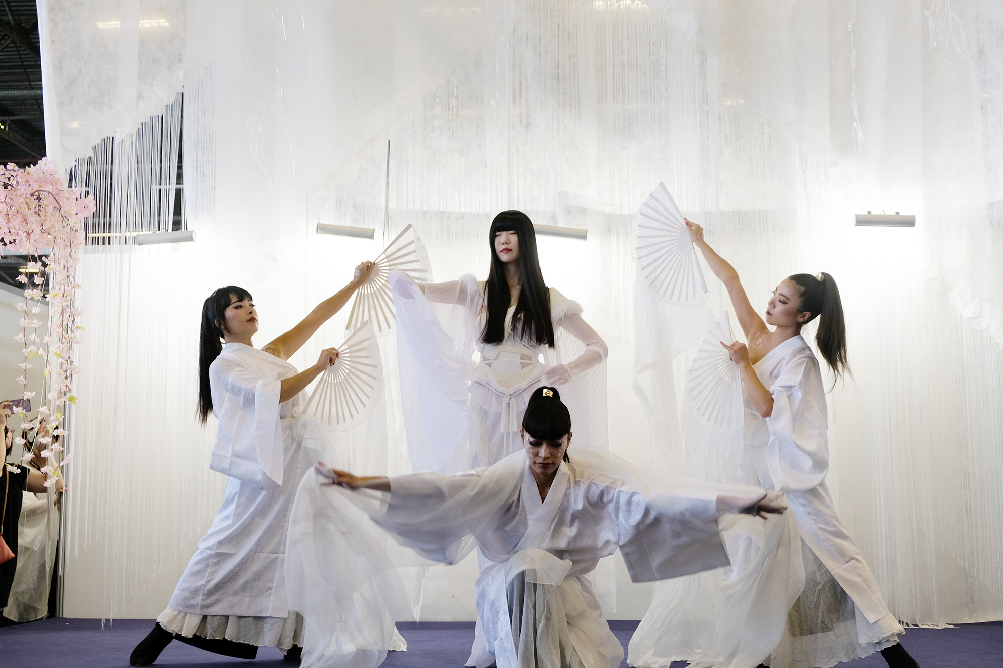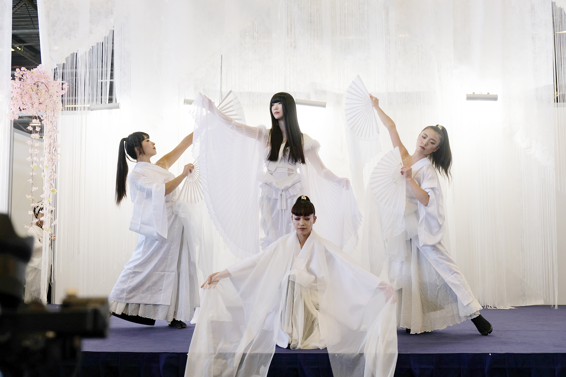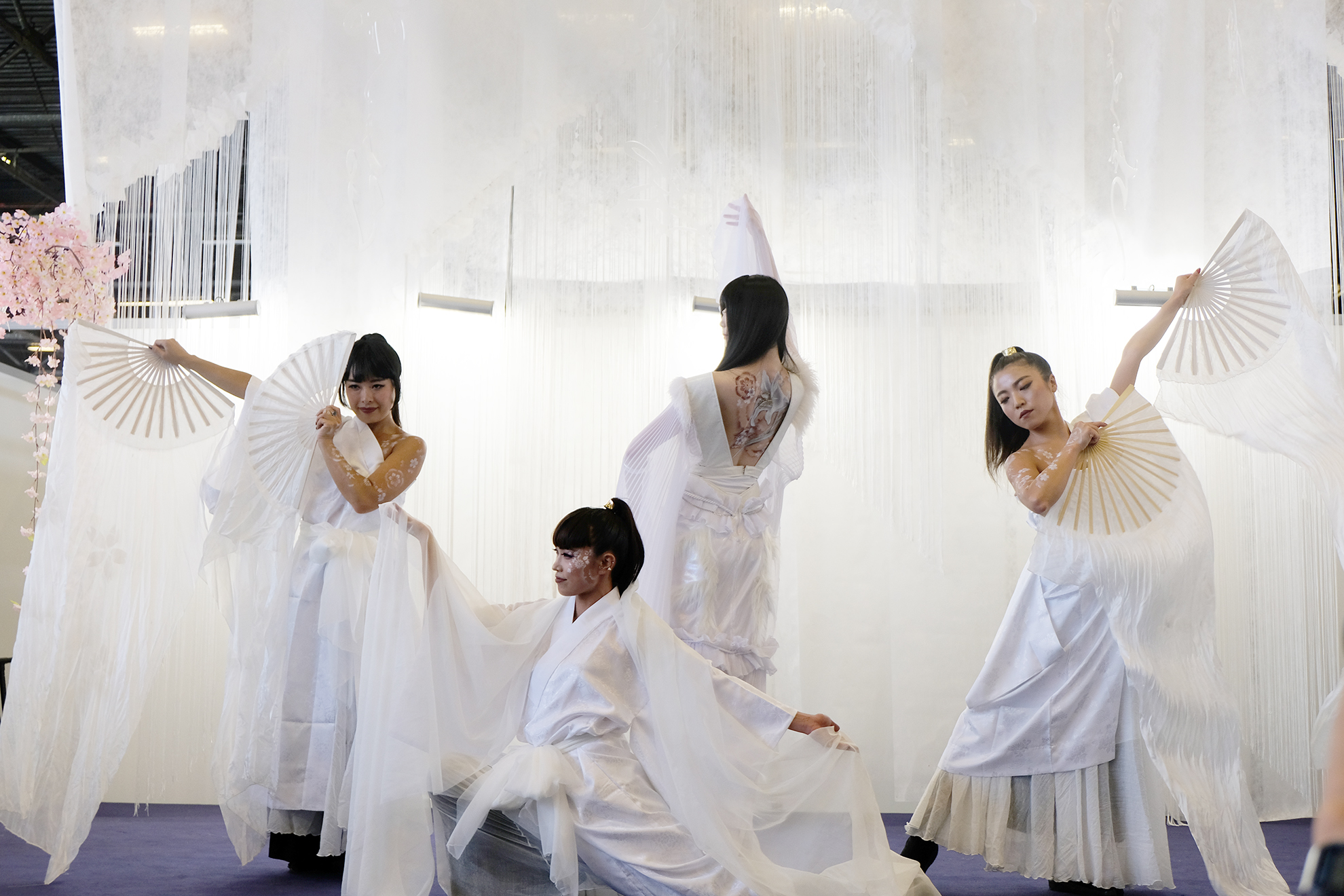 Japan Expo 2018におけるKIRIEさんのWABISABIブースでの”羽衣道中”。