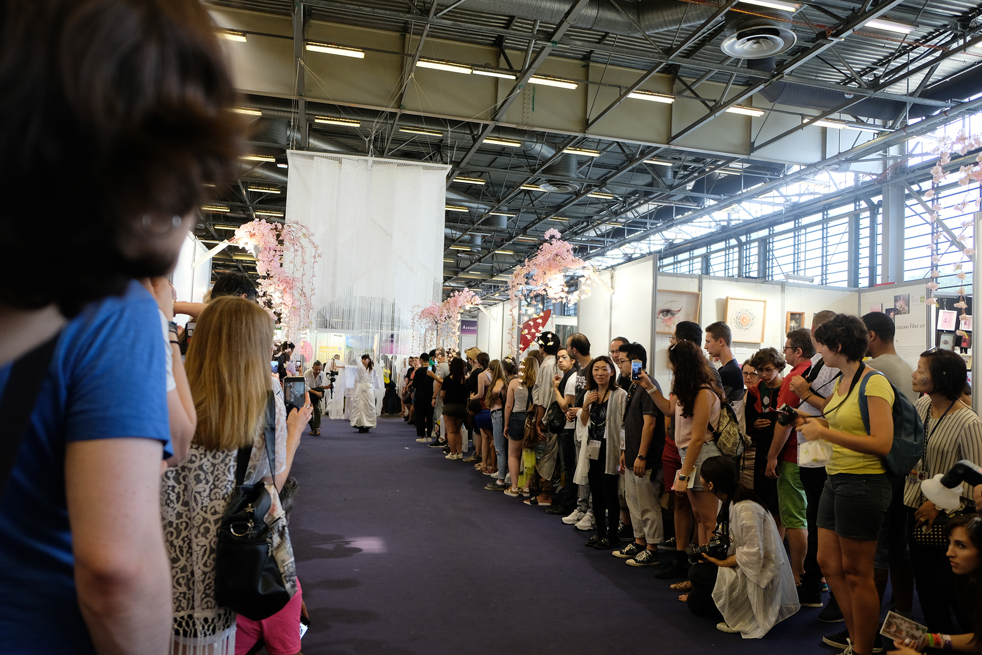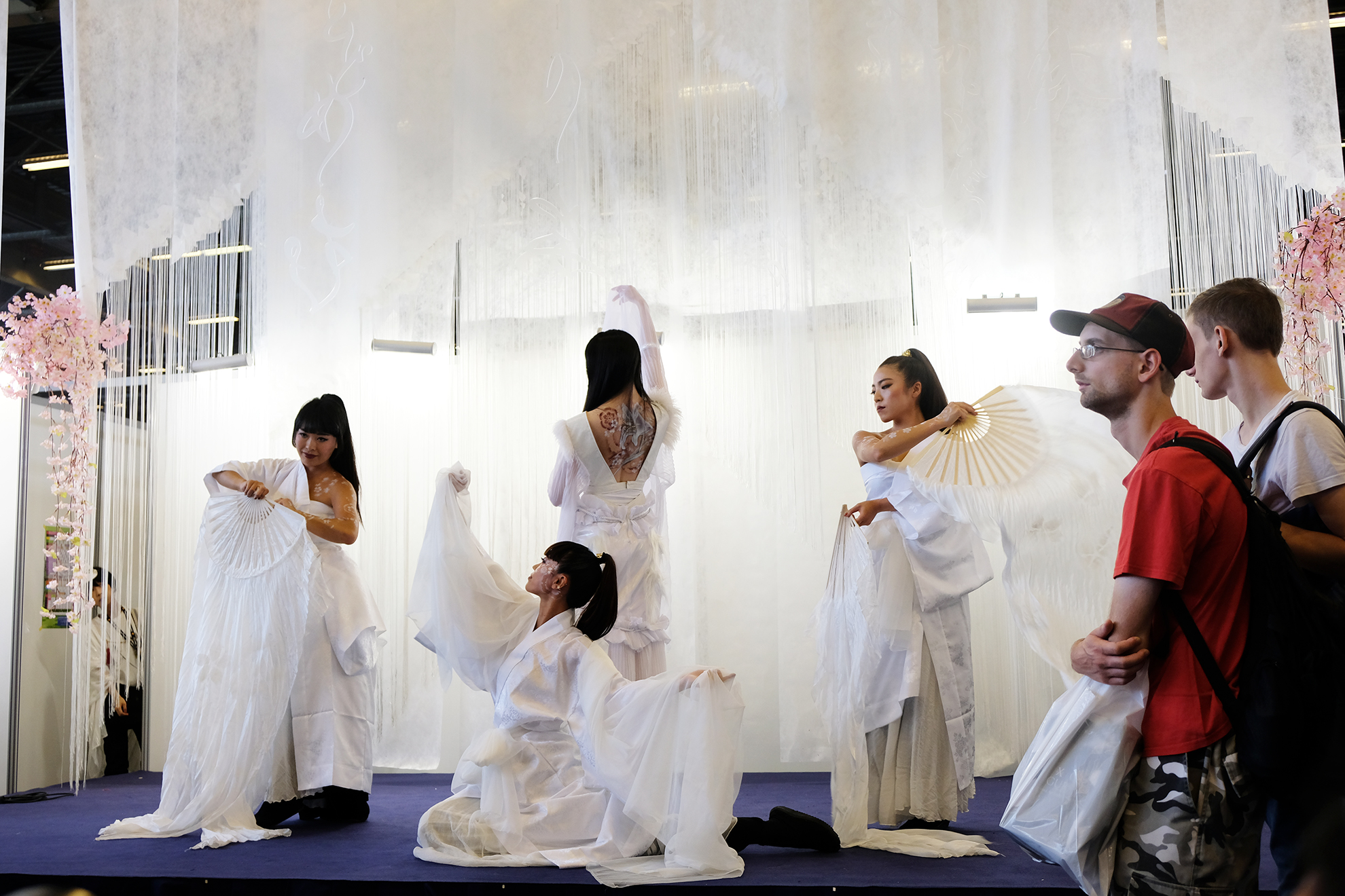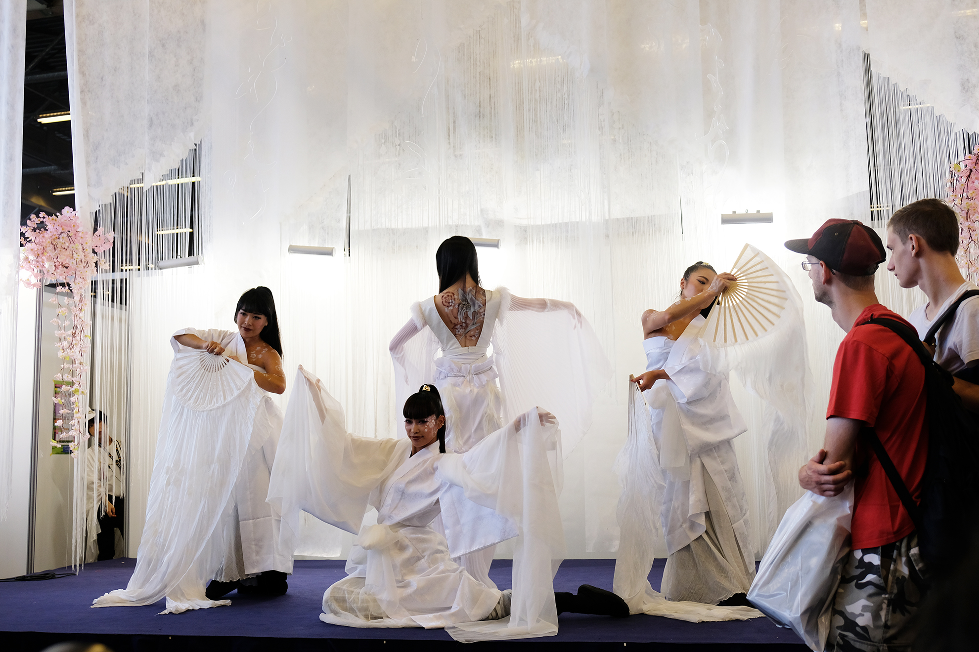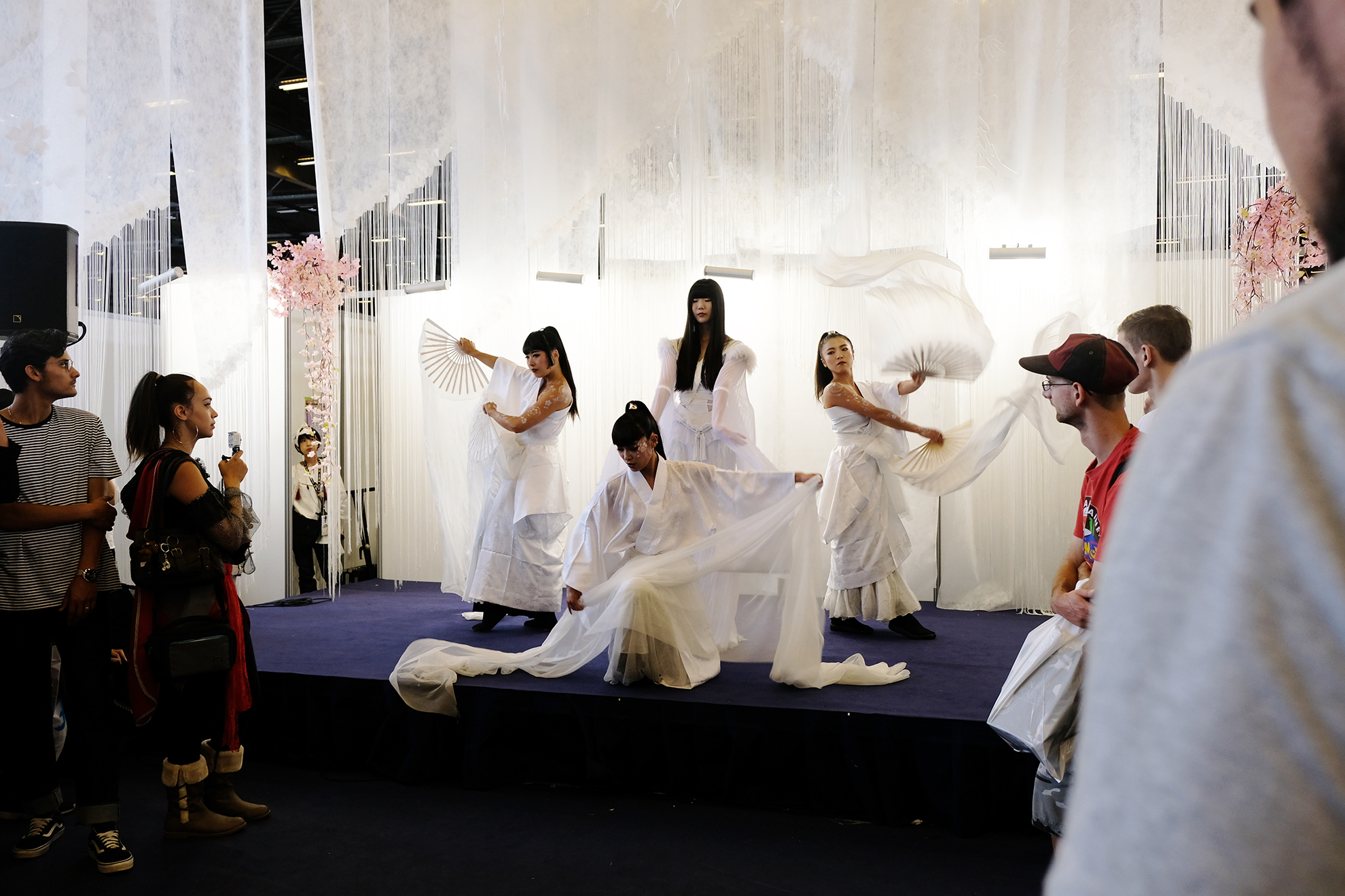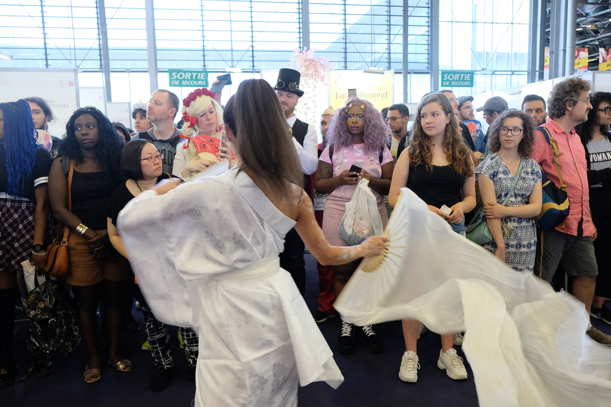 Japan Expo 2018におけるKIRIEさんのWABISABIブースでの”羽衣道中”。