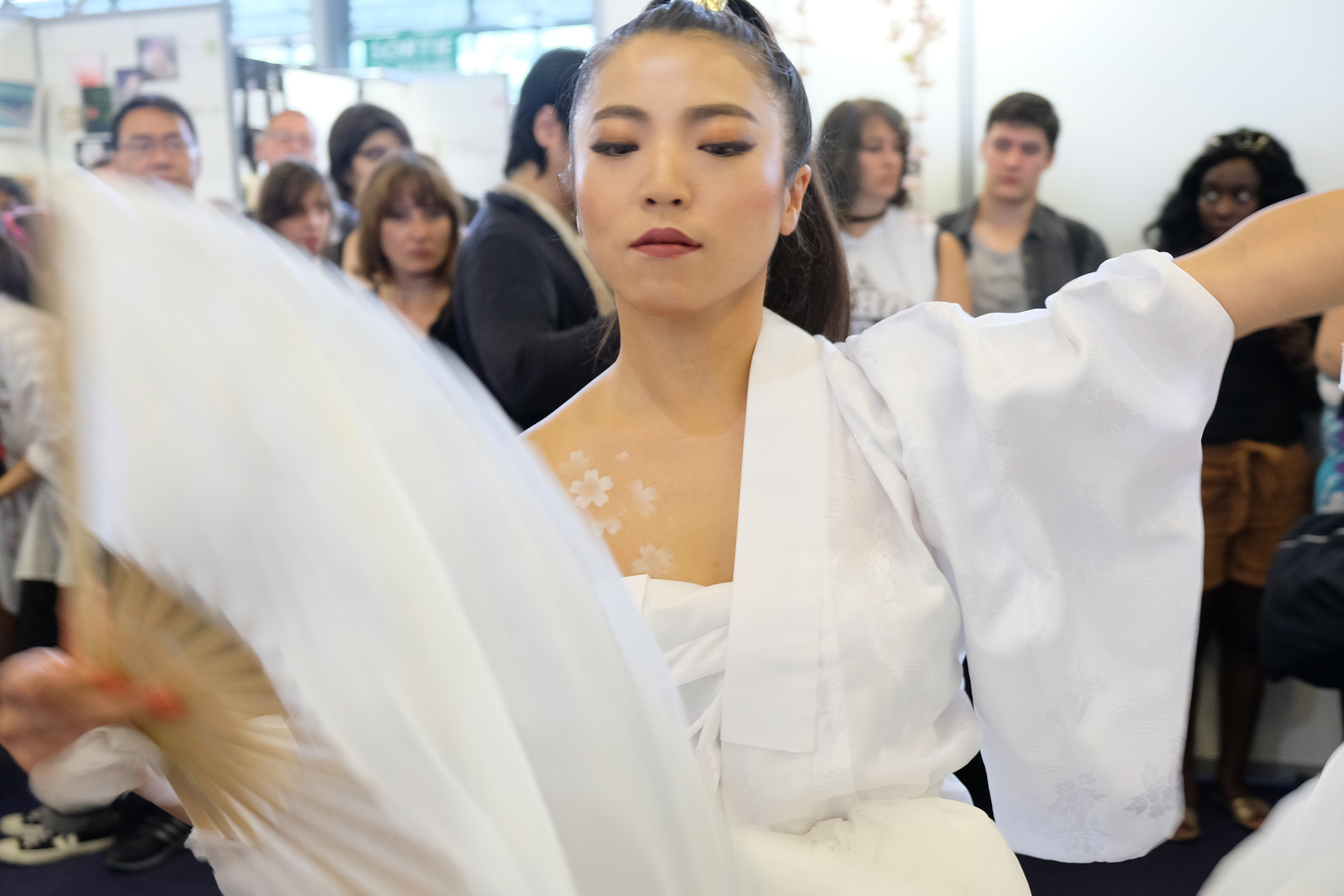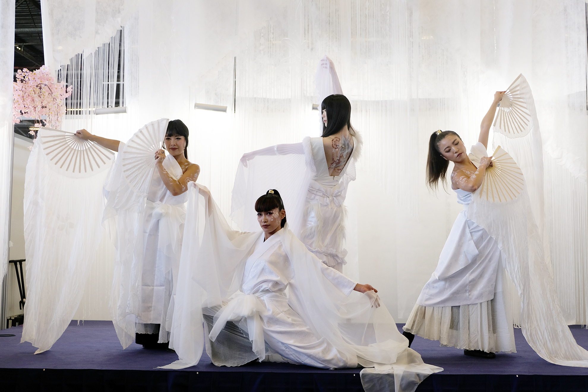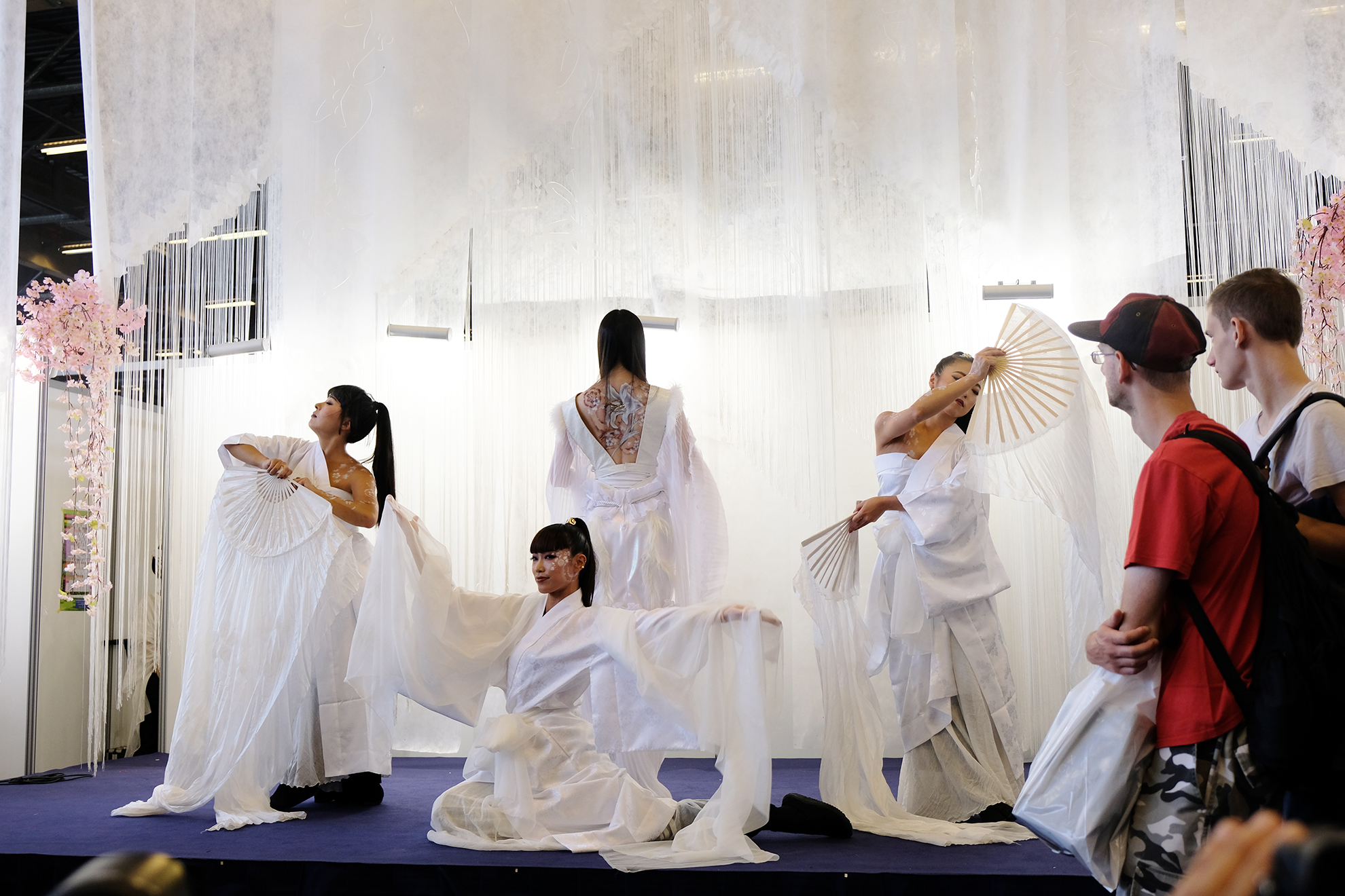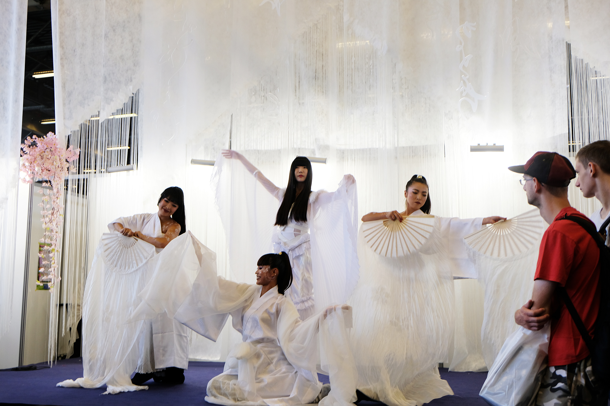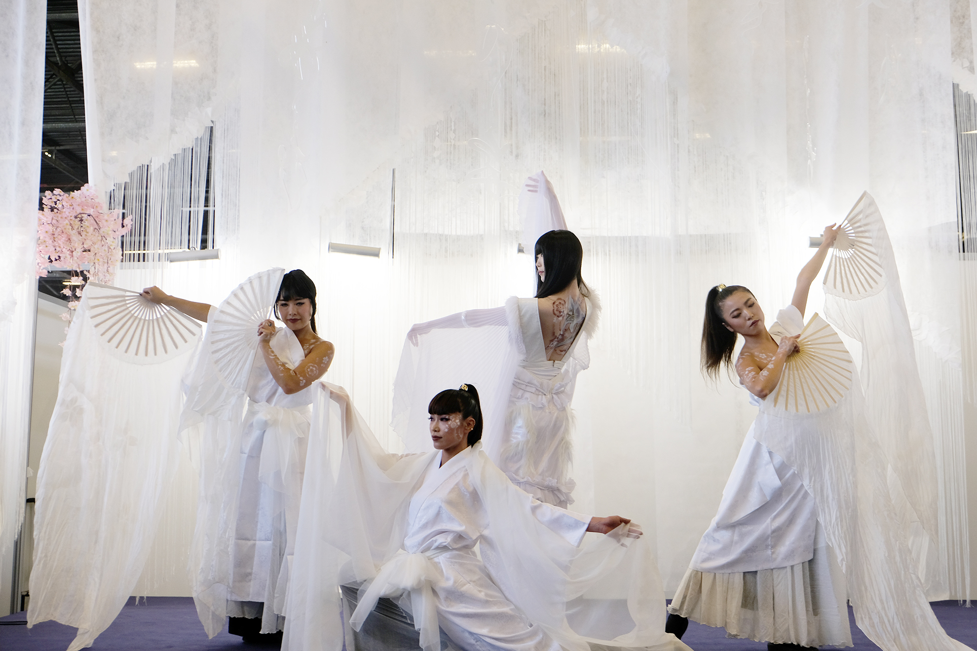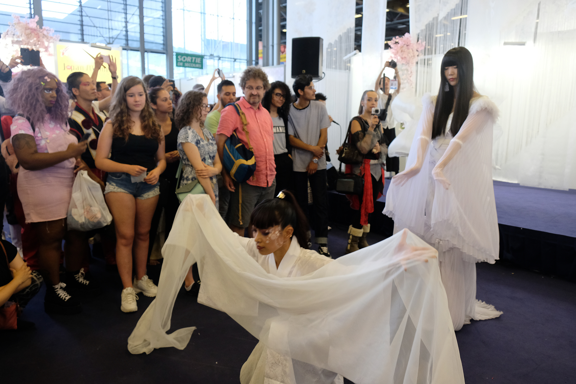 Japan Expo 2018におけるKIRIEさんのWABISABIブースでの”羽衣道中”。