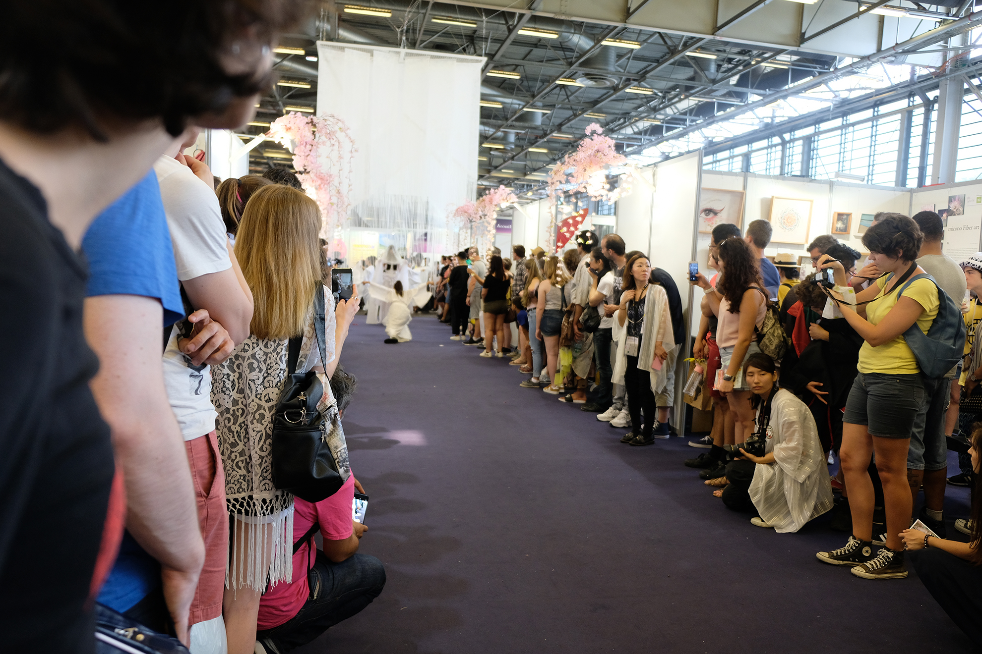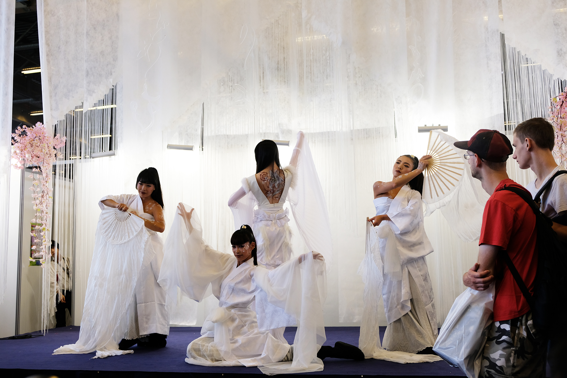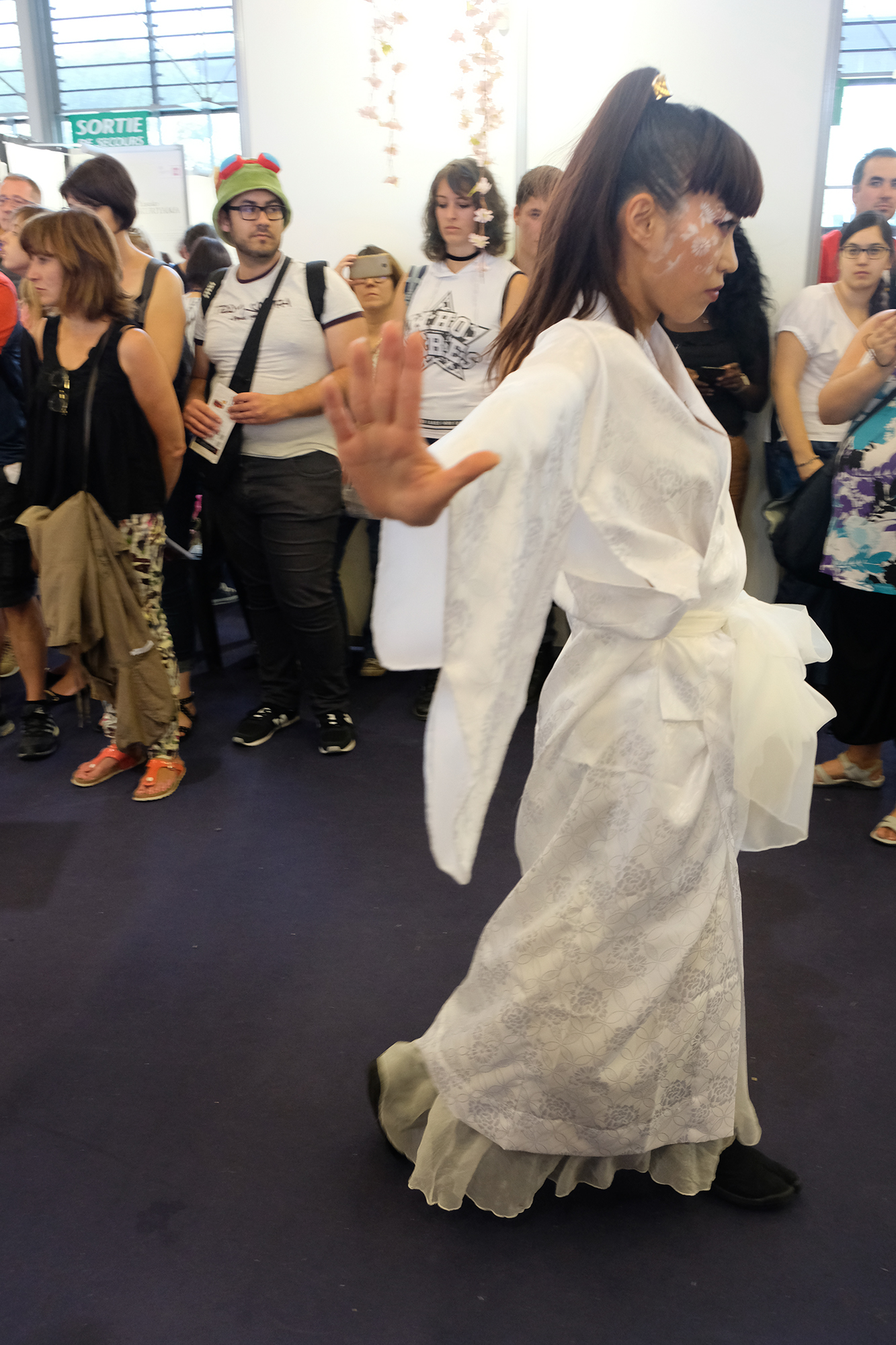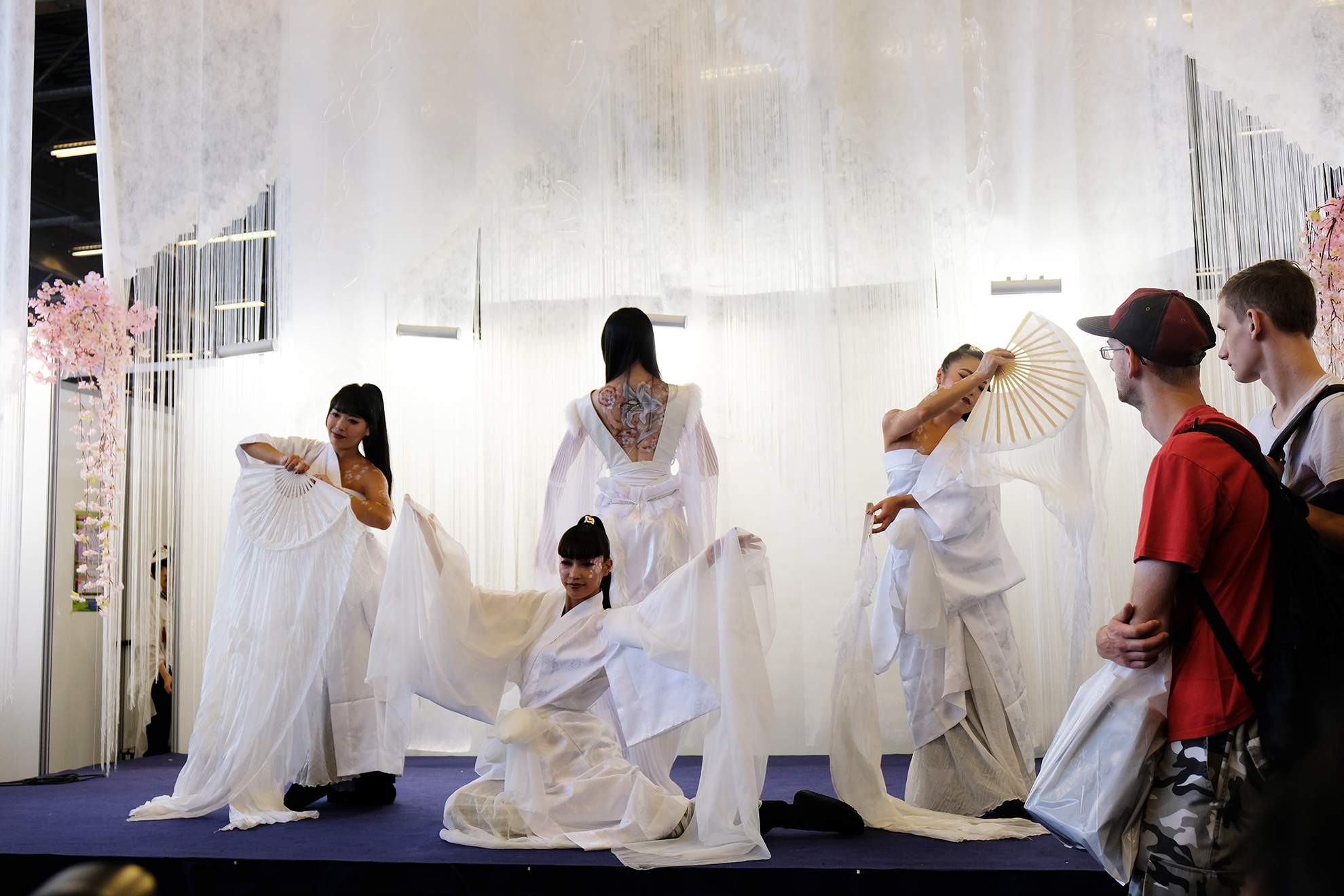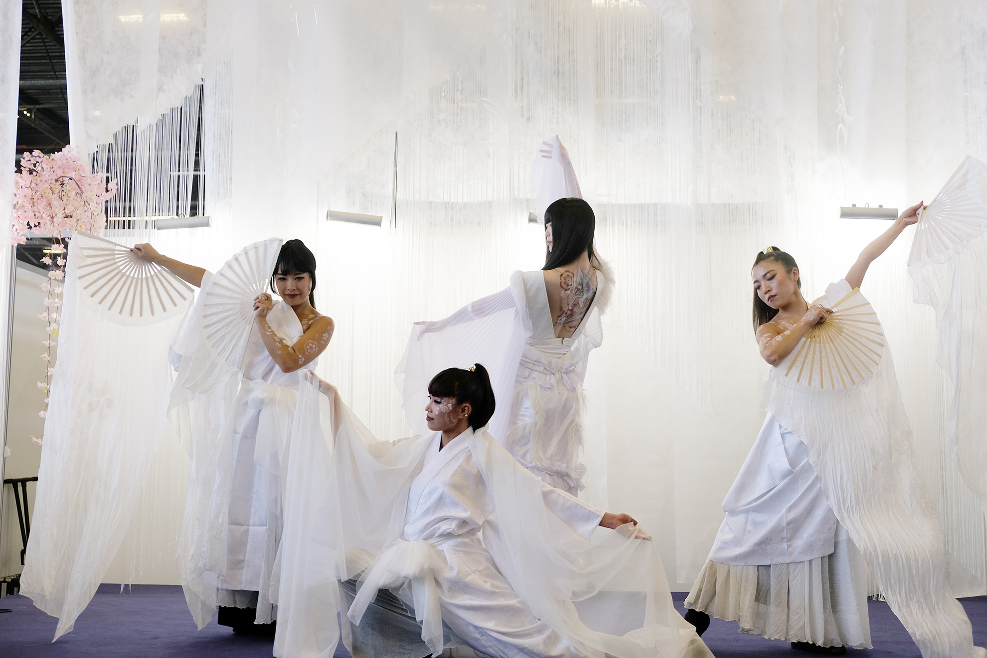 Japan Expo 2018におけるKIRIEさんのWABISABIブースでの”羽衣道中”。