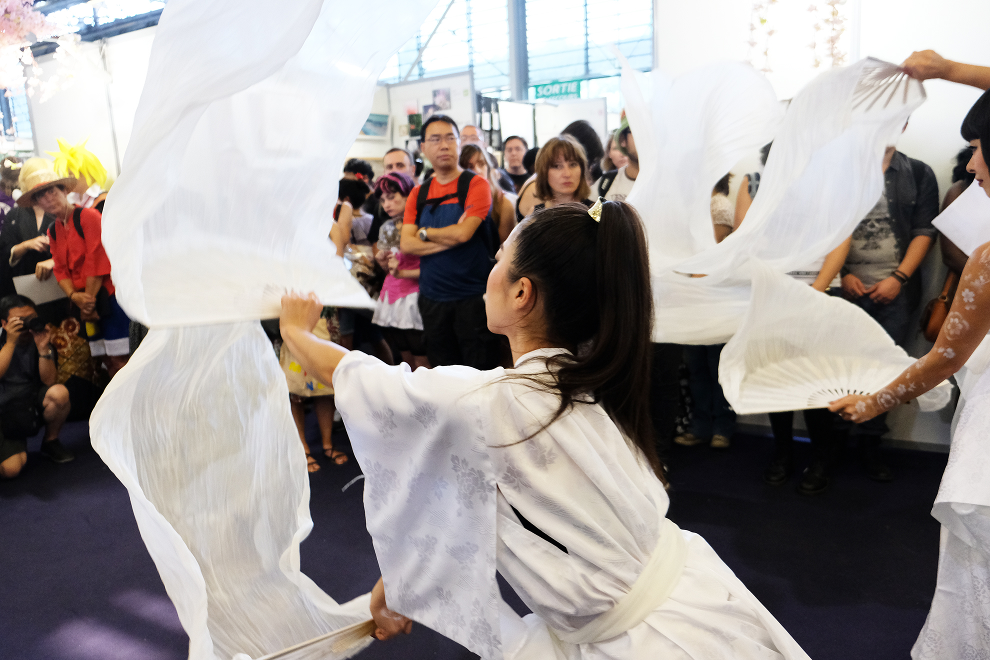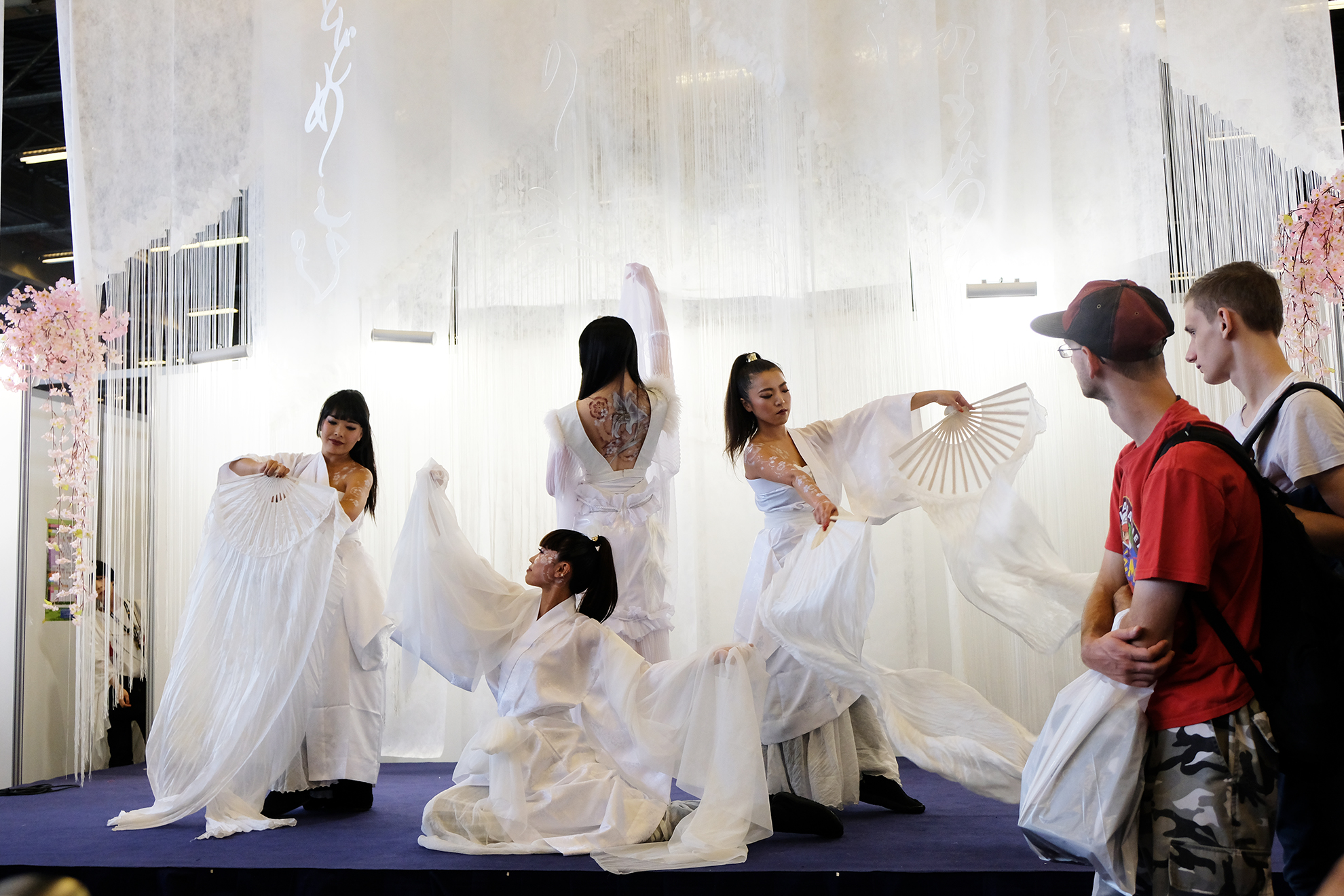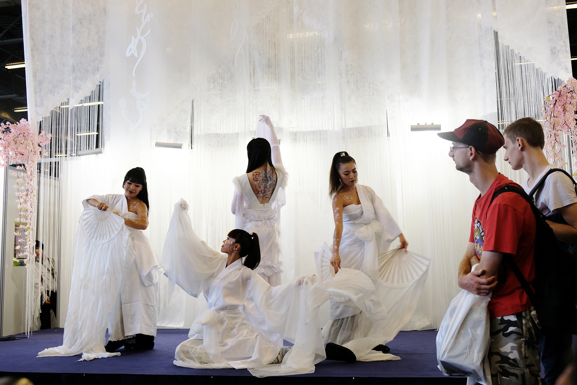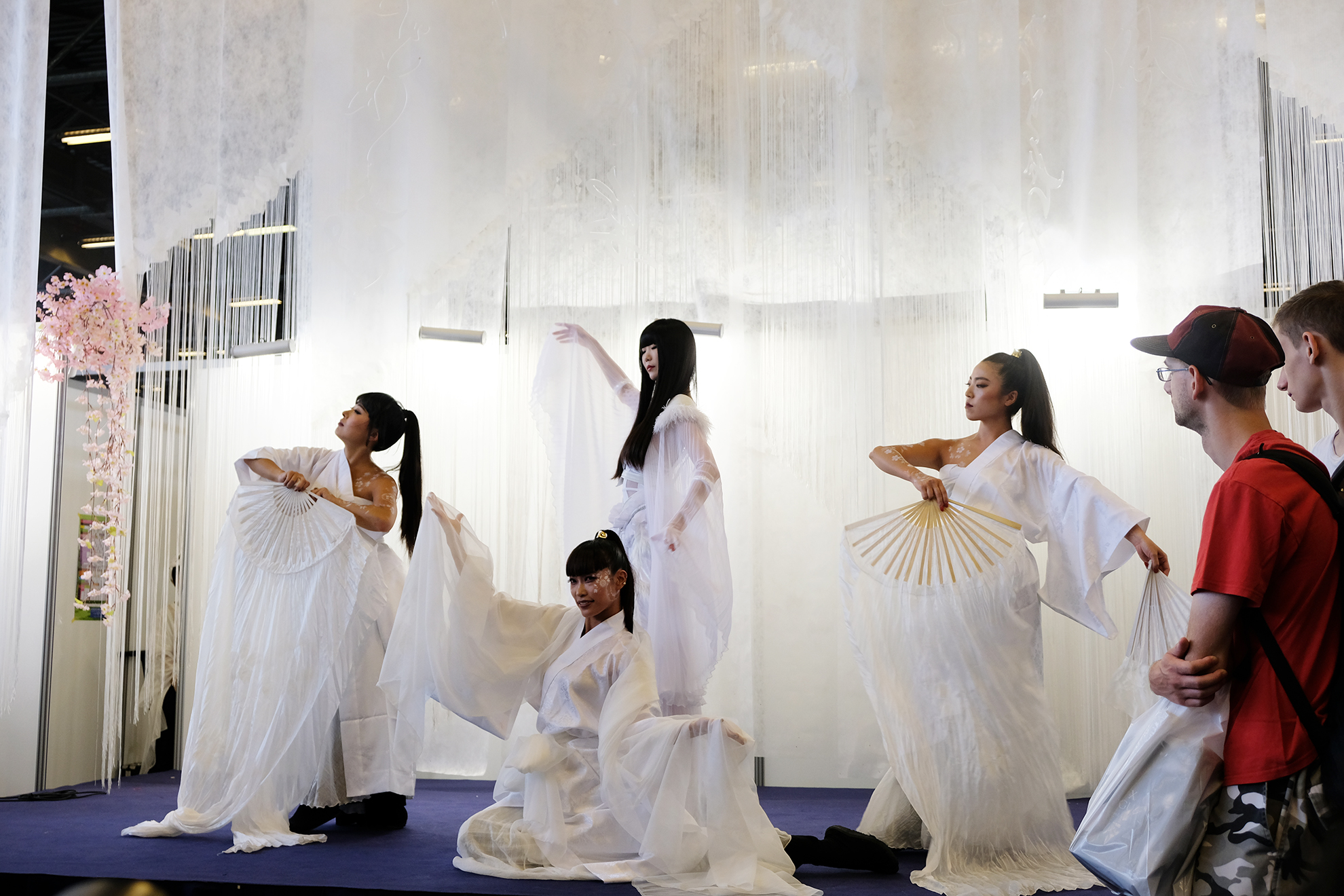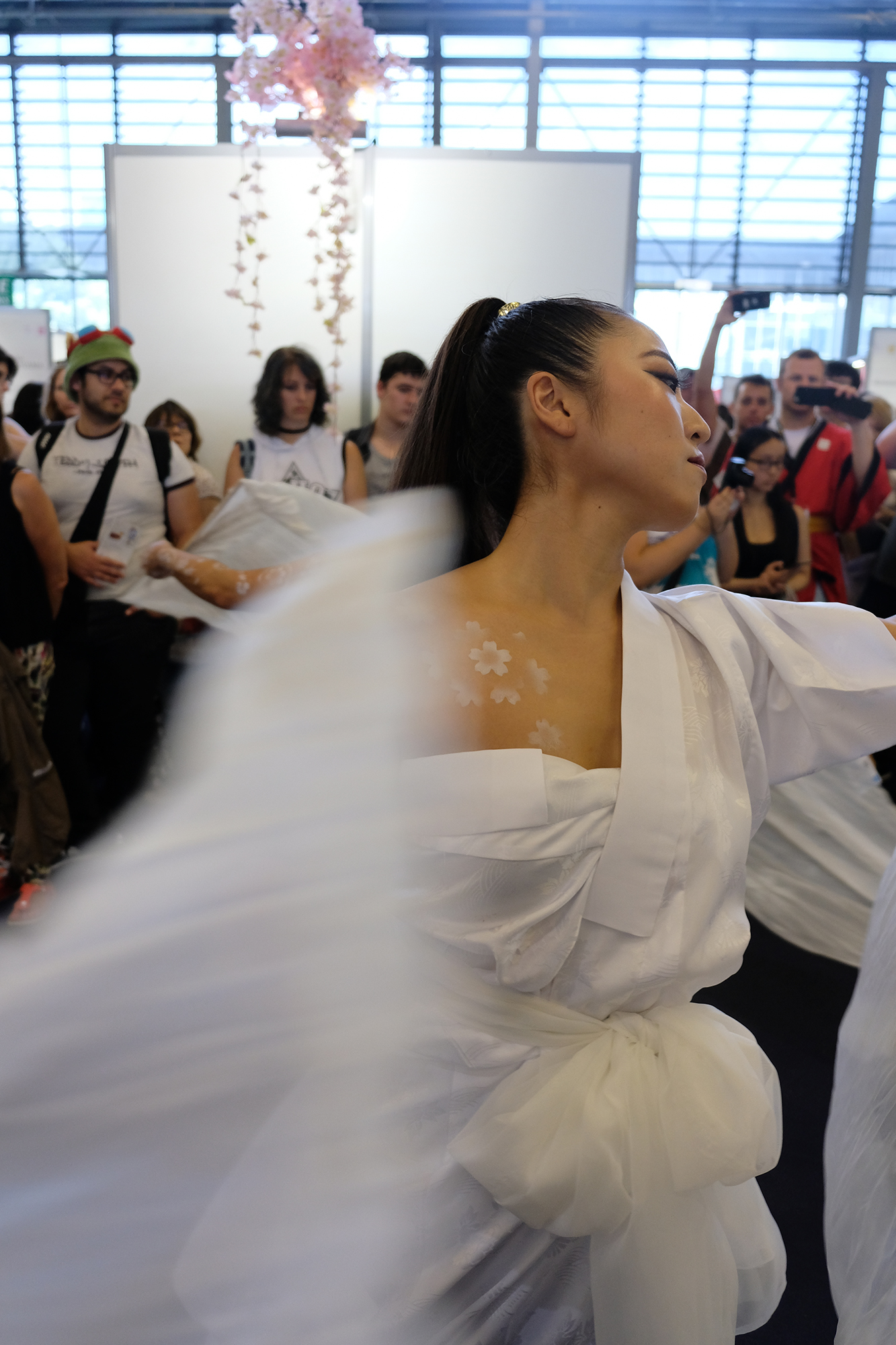 Japan Expo 2018におけるKIRIEさんのWABISABIブースでの”羽衣道中”。