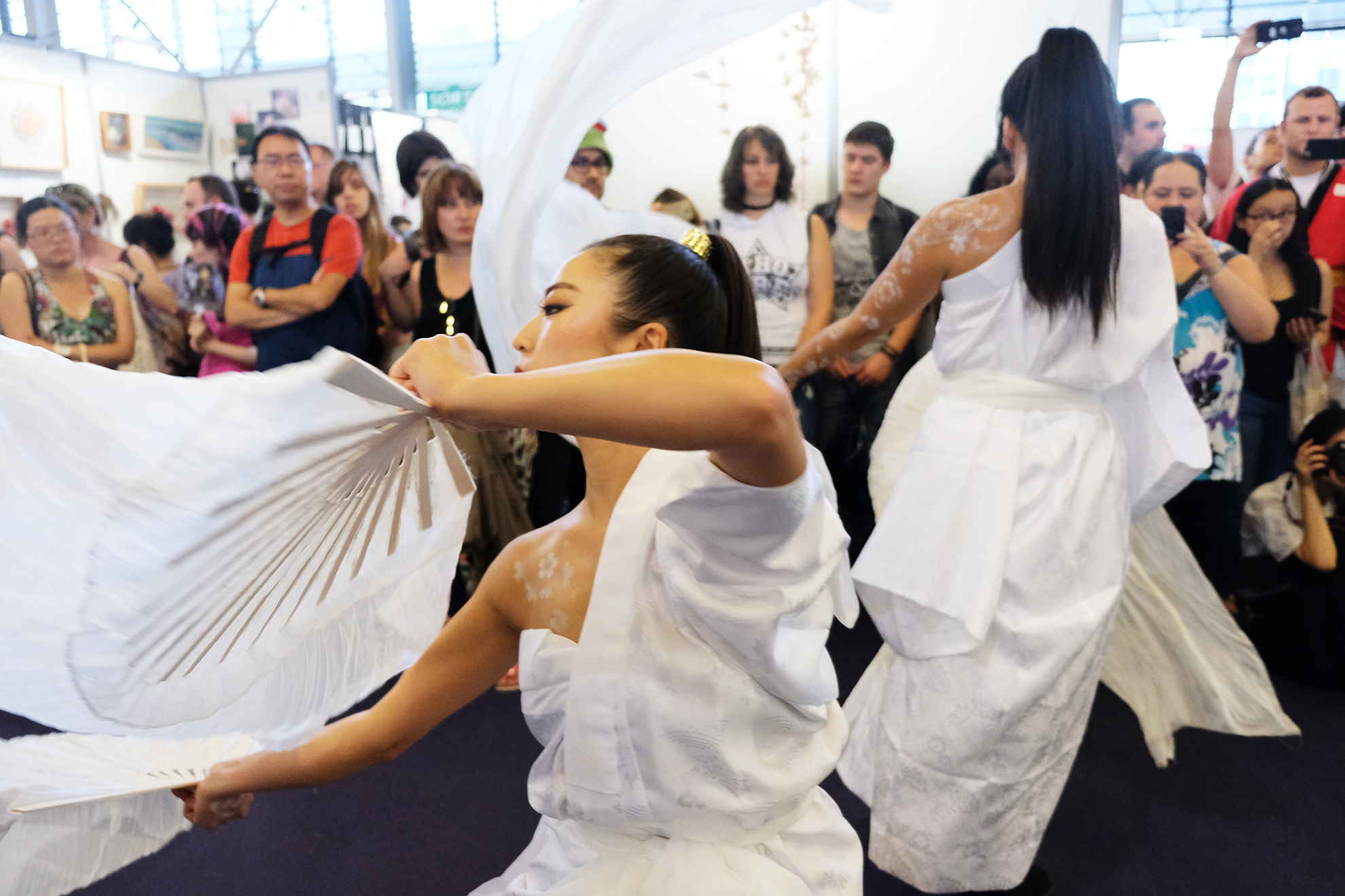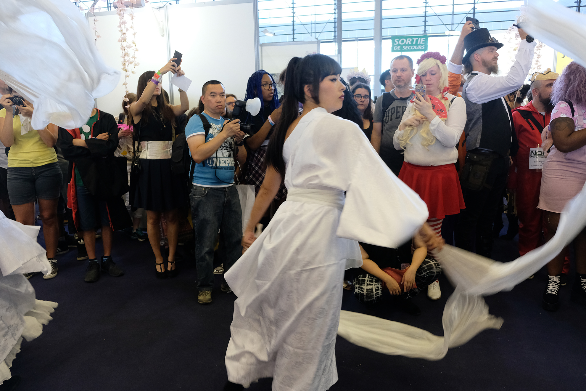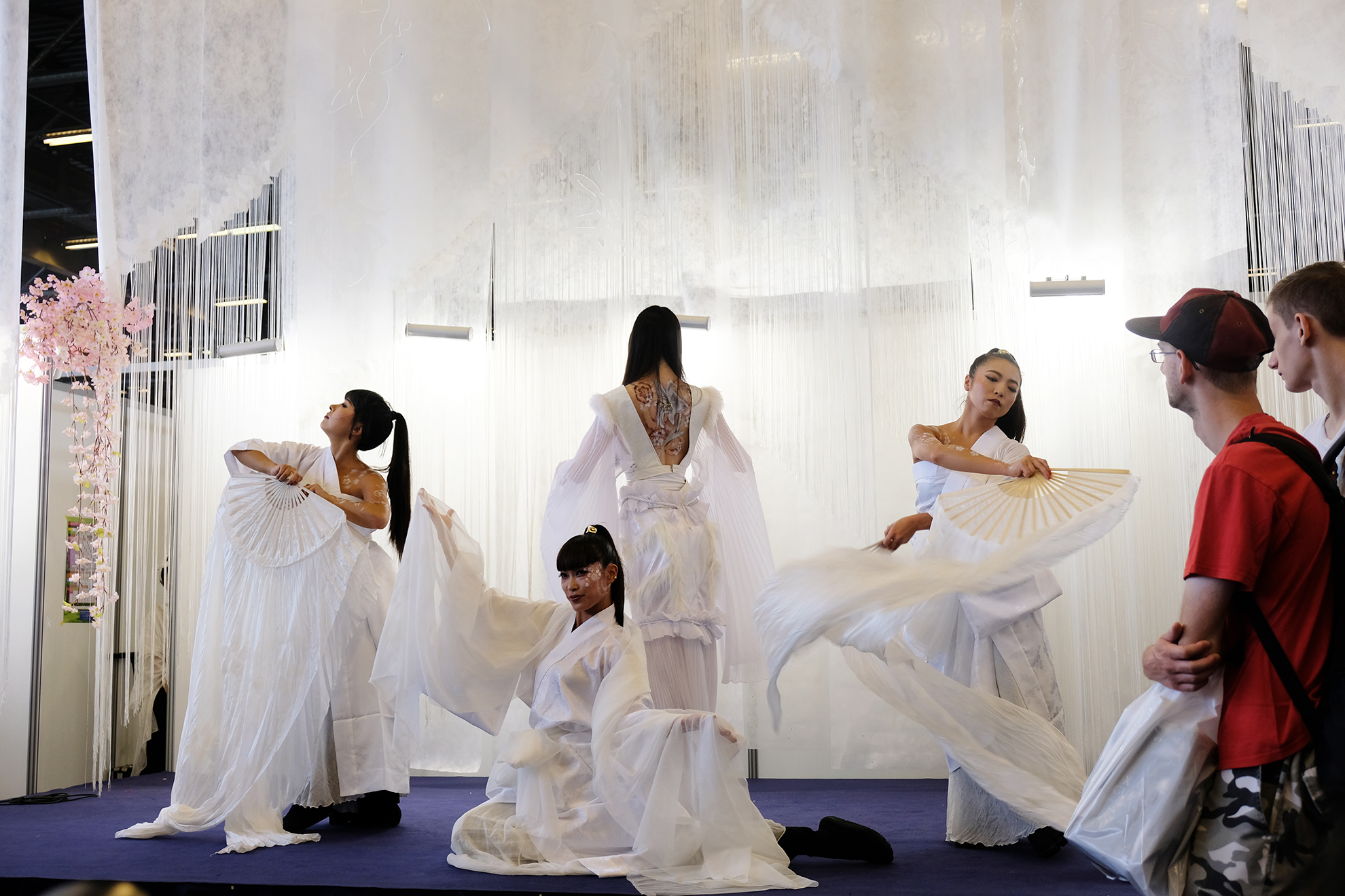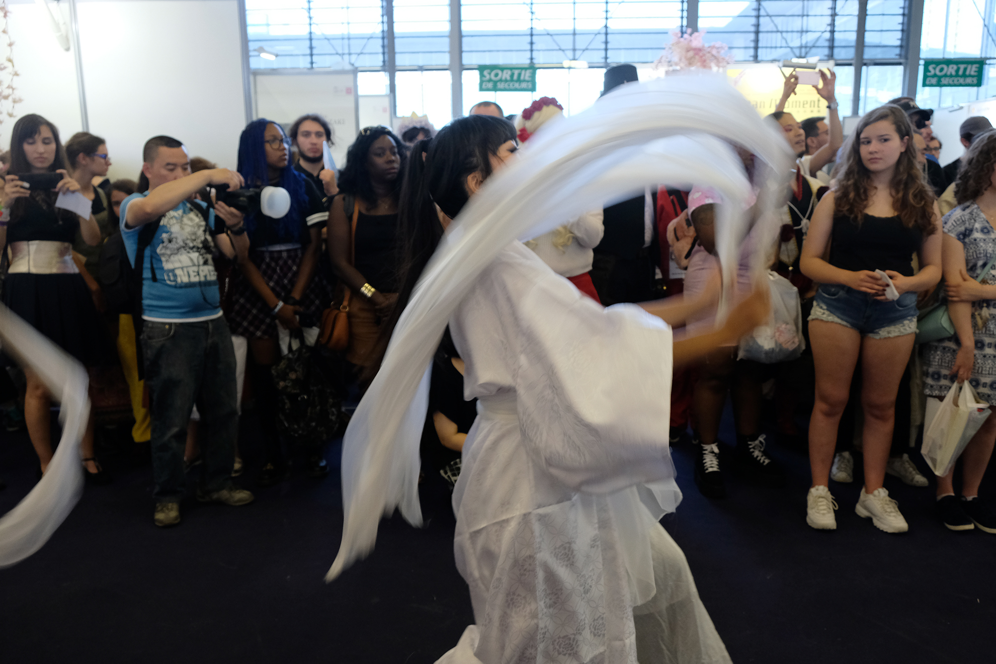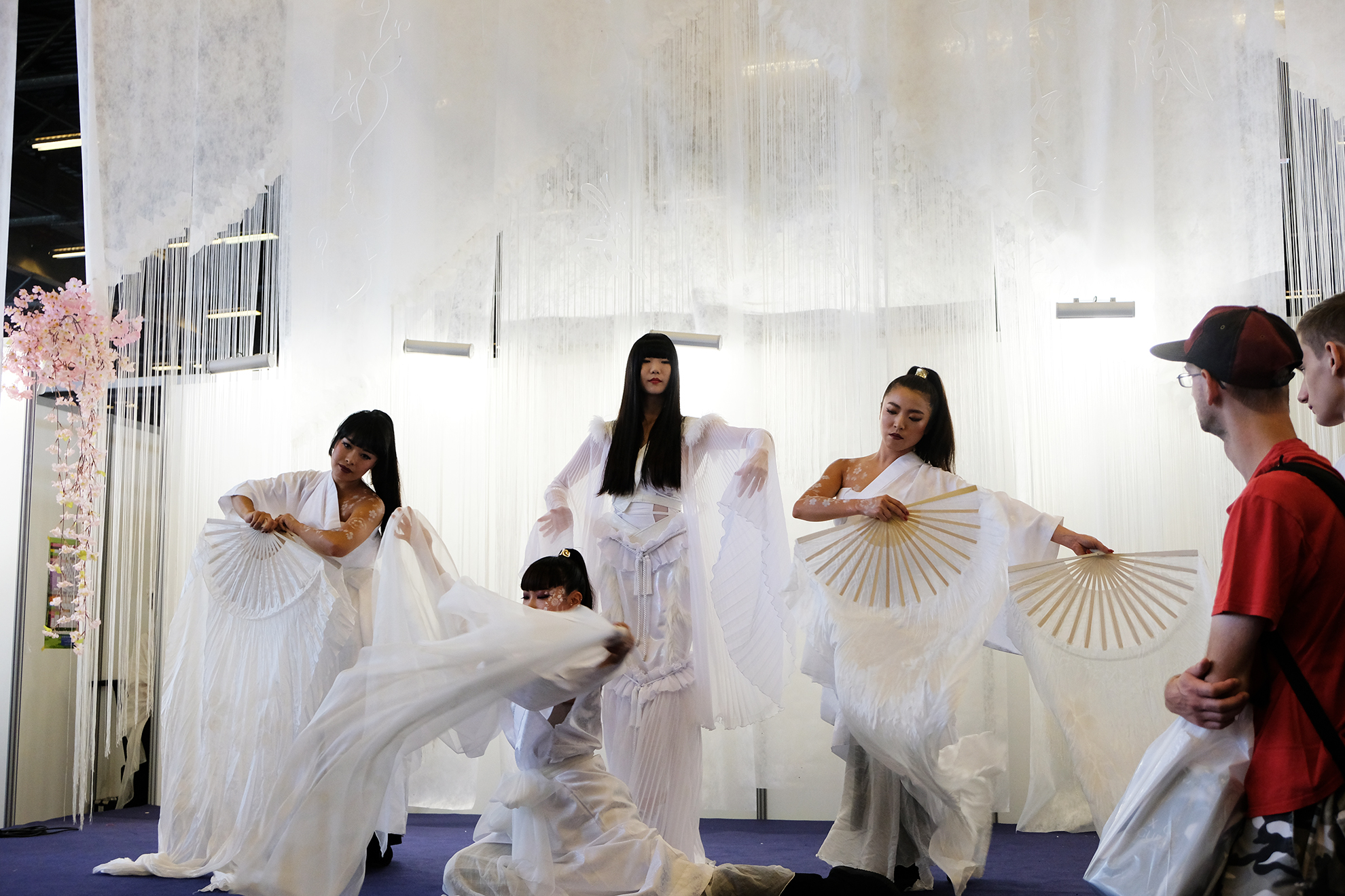 Japan Expo 2018におけるKIRIEさんのWABISABIブースでの”羽衣道中”。