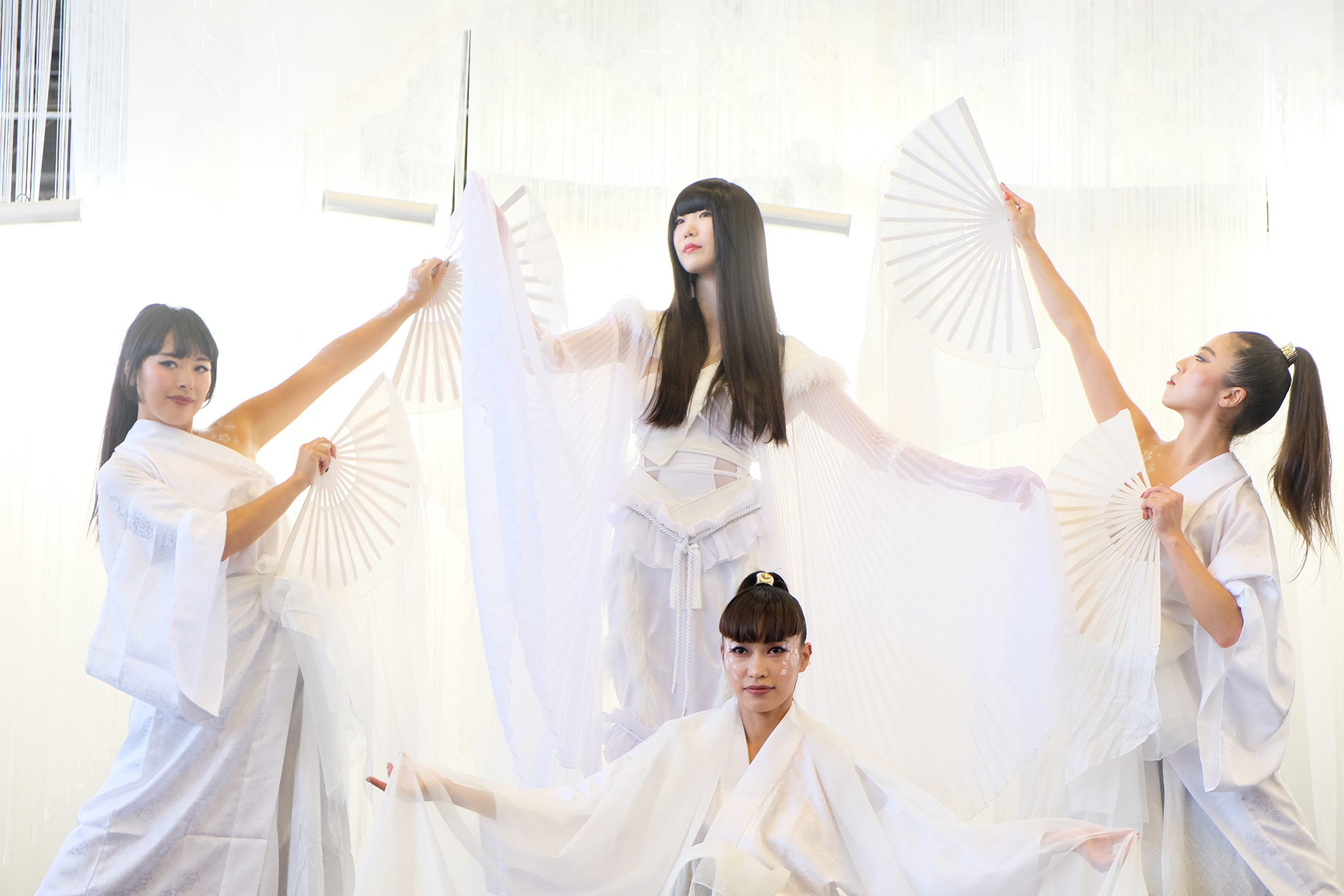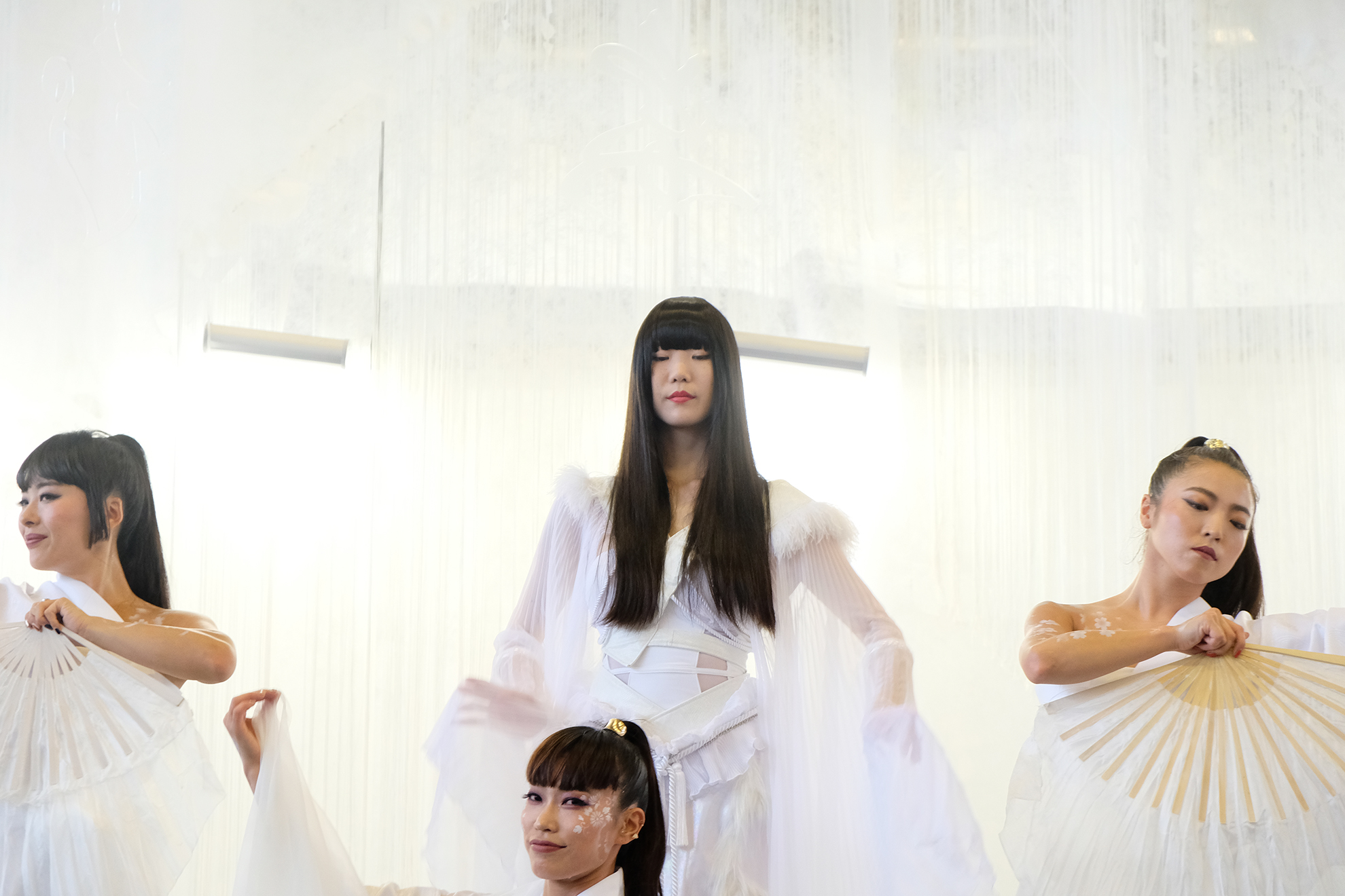 お馴染みのCoolなWacchaさんのビートボックスで始まり、穏やかに観客を羽衣の世界へ誘います。そして天女でろうminaさんを囲むようにに、KAIENさんら美しい女官達が舞い踊りながら、天女が約束の地へと導かれて行きます。真っ白い衣装がとても美しく眩しく踊りと相まって、光を浴びれば見ている私たちはきっとWhite Outしてしまうのではないだろうかと思える眩さでした。