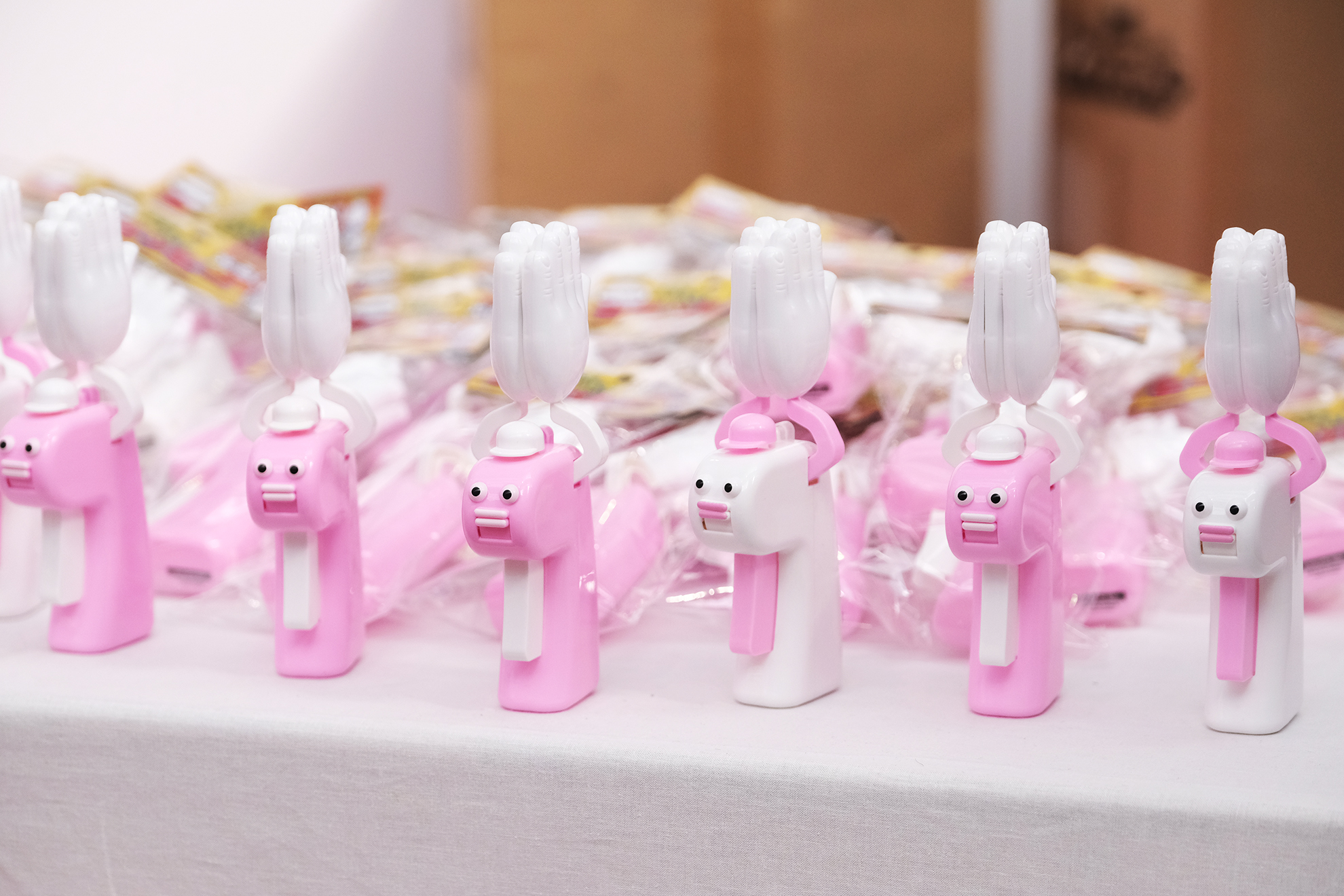 ・バイバイワールド株式会社が贈る、盛り上げ拍手ロボット”Big Clappy”!どこから見てもこちらを見ている…!(様な気がする(笑))奇妙な彼が、拍手して合いの手打って、気分が落ち込んでる時も、勝手に(笑)盛り上げてくれます!「しゃーないなぁ~」とつい顔がほころんでしまうこと間違いなし!?
