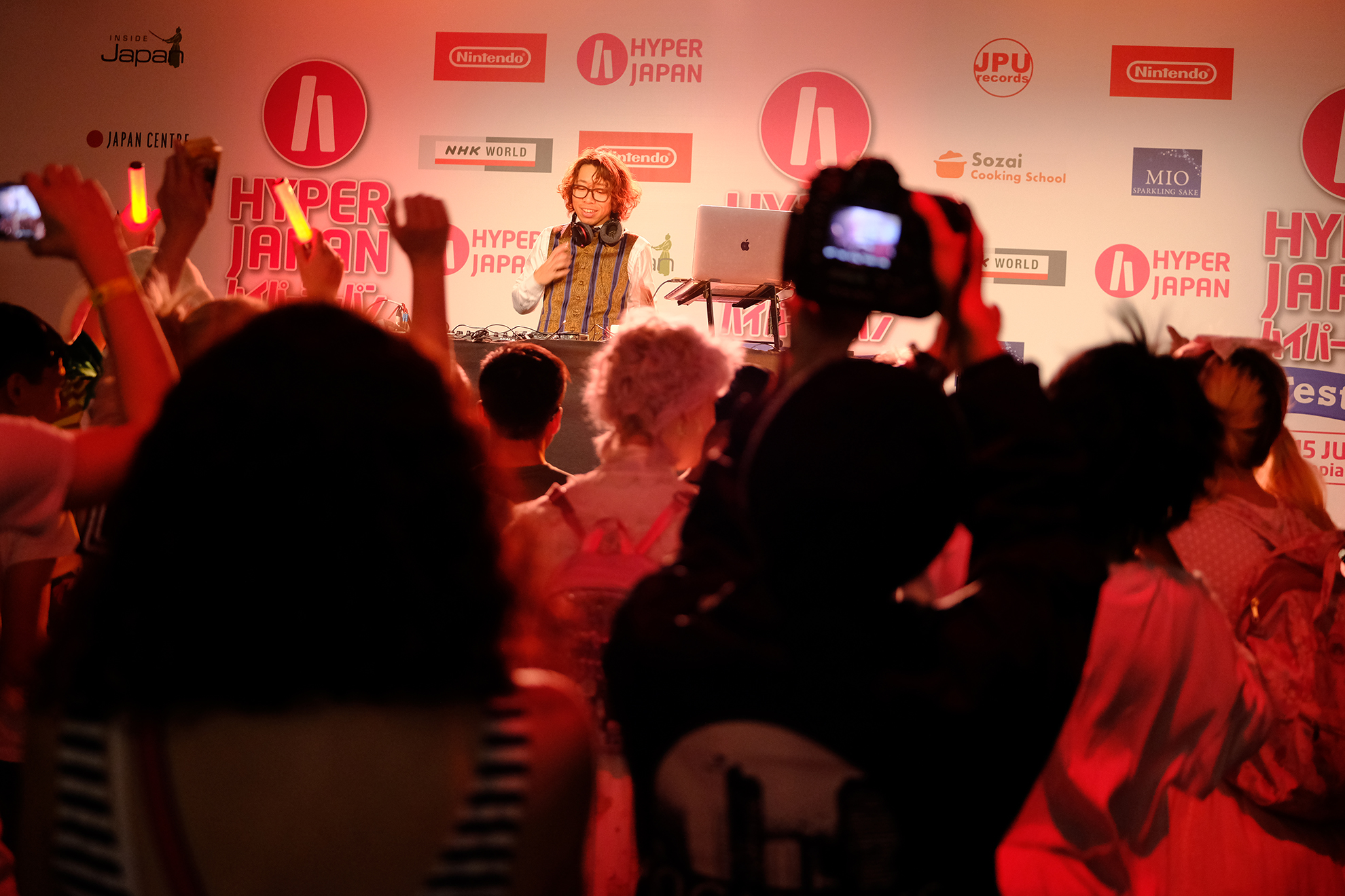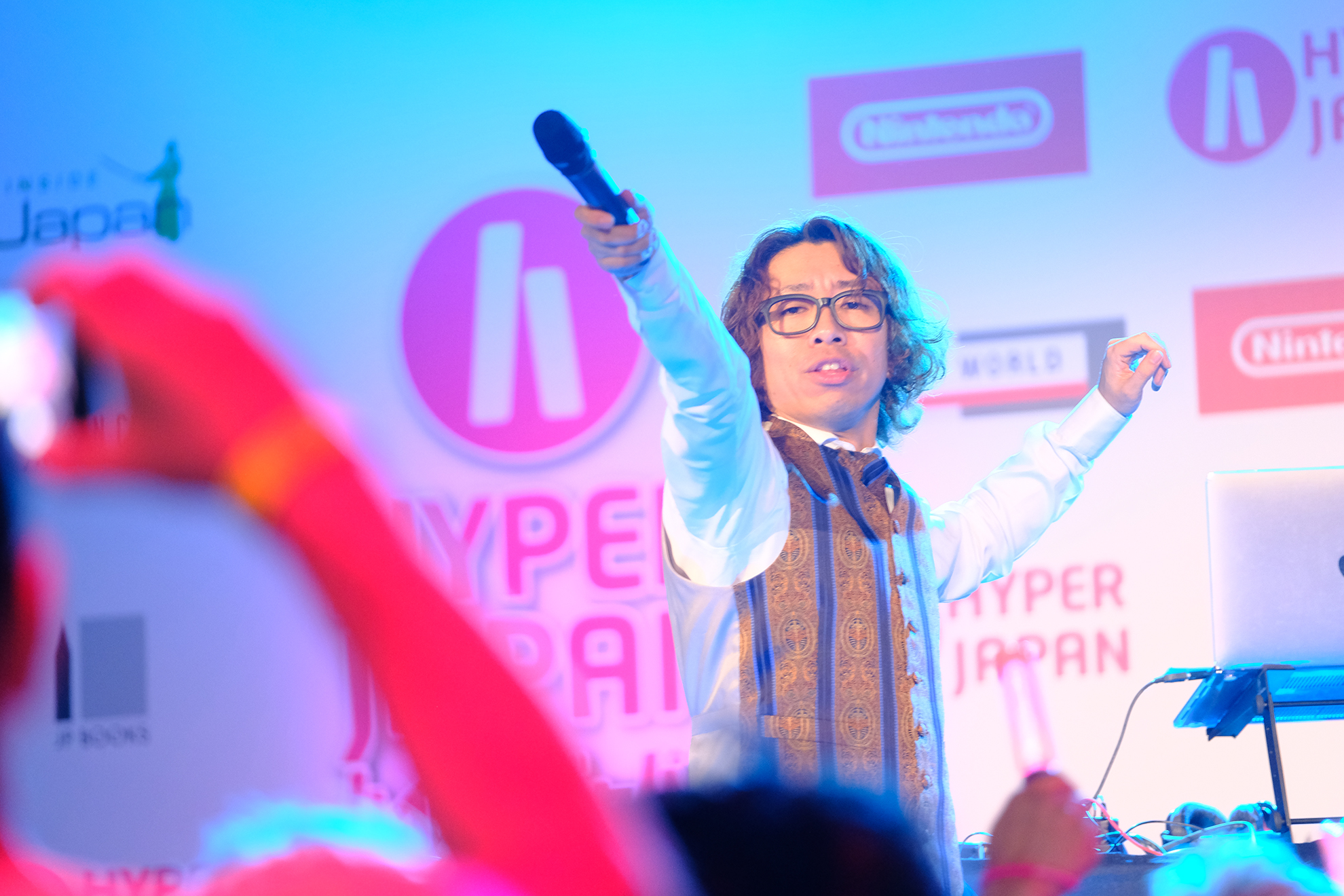 ・“Manga Planet” Presents “Hyper Anison Party ” feat.Taketeru SUNAMORI・HYPER LIVEステージでのアニソンDJによるパフォーマンス。Hyper Anison Party のDJ部屋も個別に設置され、アニソンで大いに盛り上がっていました。誰でも知るアニソンはついつい口ずさんだり、体が動いてしまします!
