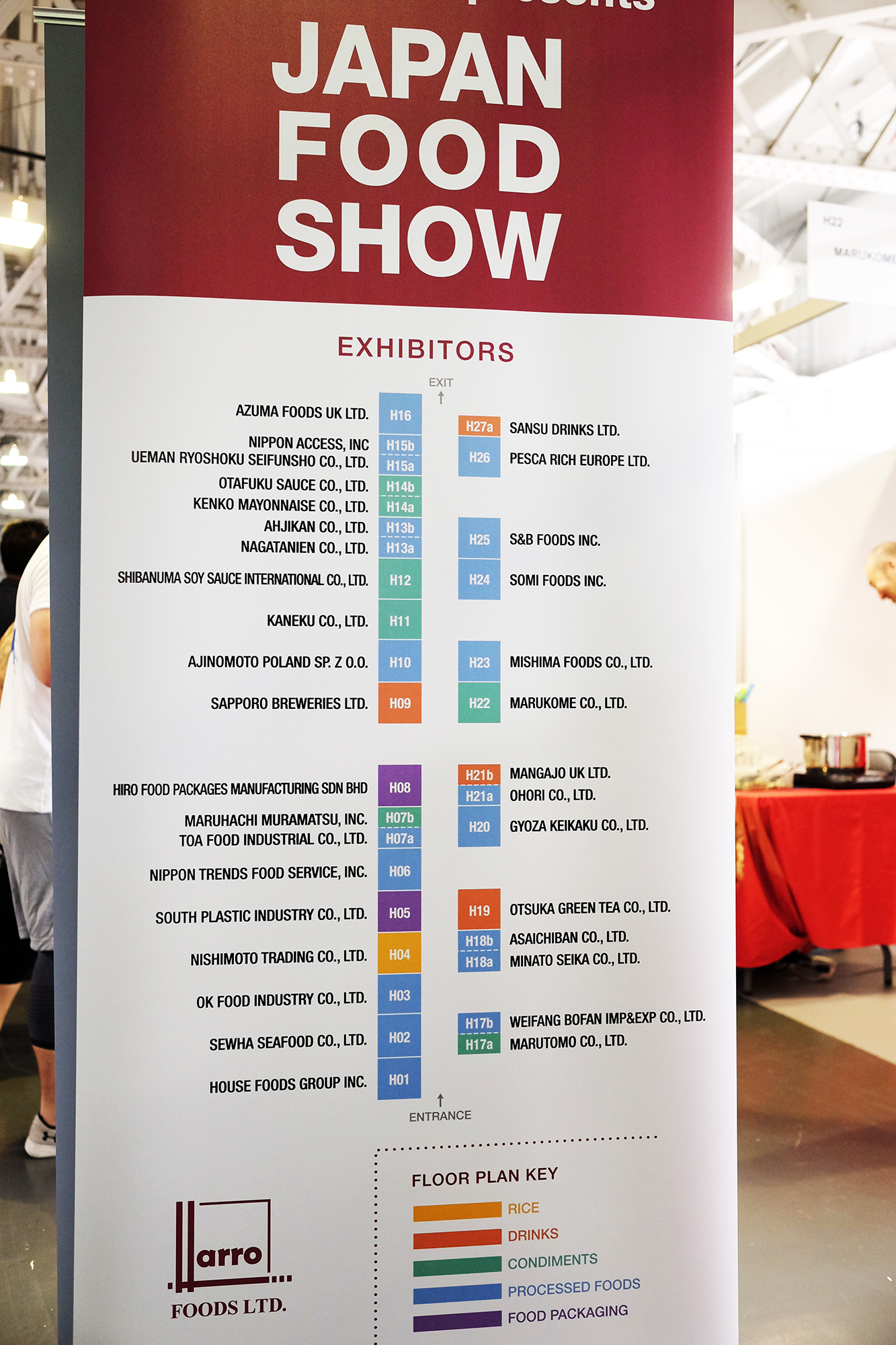 ・こちらは食品では無く、食品を入れる容器の製造会社。マレーシアに拠点を置くHIRO FOOD PACKAGES MANUFACTURING SDN BHDさん。オーストラリアなど担当の馬さんが大変詳しくお話をしてくださいました。パッケージの製造拠点は埼玉に作り、その流通の主は日本では無く、海外で自社のパッケージを流通されている会社さんとの事です。日本企業らしくそのクオリティーの高さ・デザインの豊富さ・密閉力の強さは勿論、環境への配慮がかなりされており、こちらの製品を燃やしても有害物質は一切出ず、今海の生物たちがプラスチックを大量に飲み込んでいる環境破壊が起こっている事を懸念し、もしも海に流れてしまっても大丈夫な製品づくりをされているとの事です。そして、馬さんが小話として、こちらのパッケージがデザインが可愛いので、今回「アクセサリー入れにしたいから頂戴」「時計など身に付ける小物入れにしたい」「写真を入れて壁に貼りたい」などイギリス人の発想が面白いと話してくださいました! ➡ http://hirofood.com/