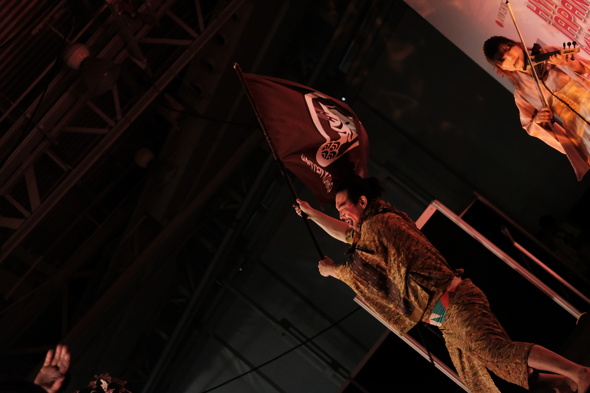リーダーのSADAさんを筆頭に、各分野で活躍するメンバーで構成された、唯一無二のエンターテイメントバンド。そのあらゆる技術の卓越者によって次から次へと繰り出される演武(舞)は、観る者をLIVEの最後の最後まで飽きさせず魅了する。