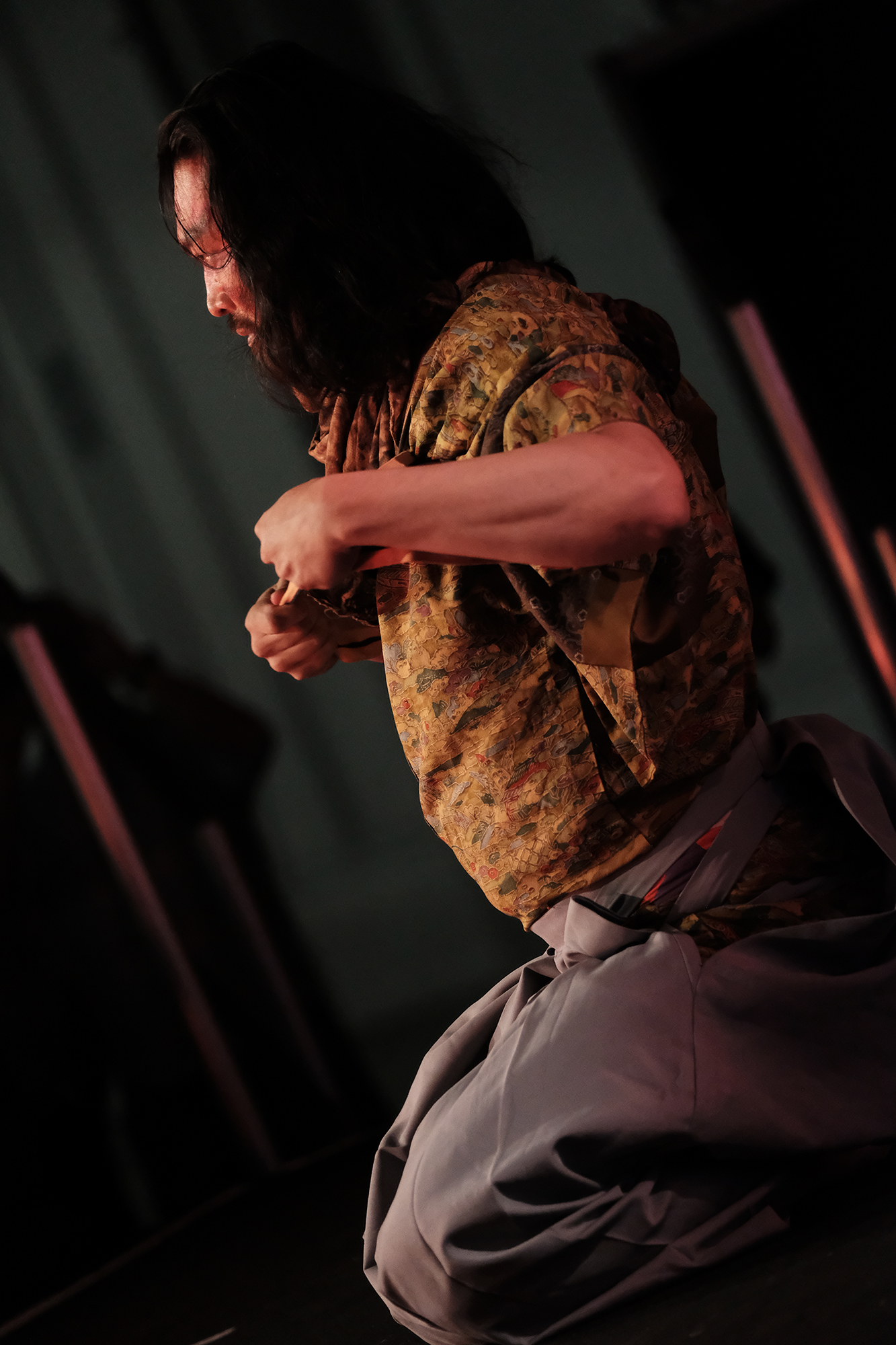 再度現れた以津輝さん、何と舞台で正座をし隈を引きます。