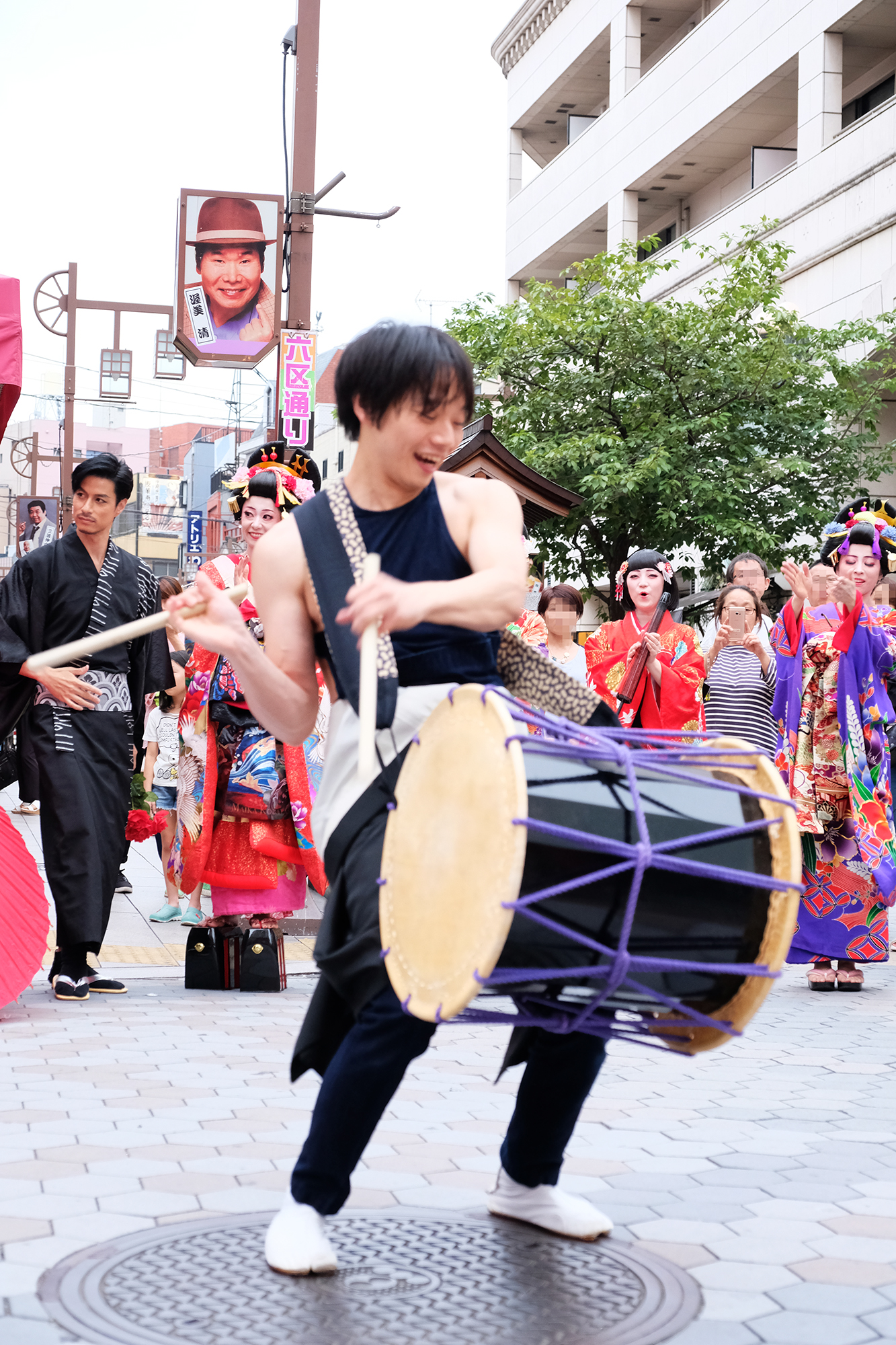 雨は見事に上がり、本番の衣装に身を包んだ演者たちが、ゆめまち劇場から六区ブロードウェイ通りをゆっくりと歩く姿があったのである。