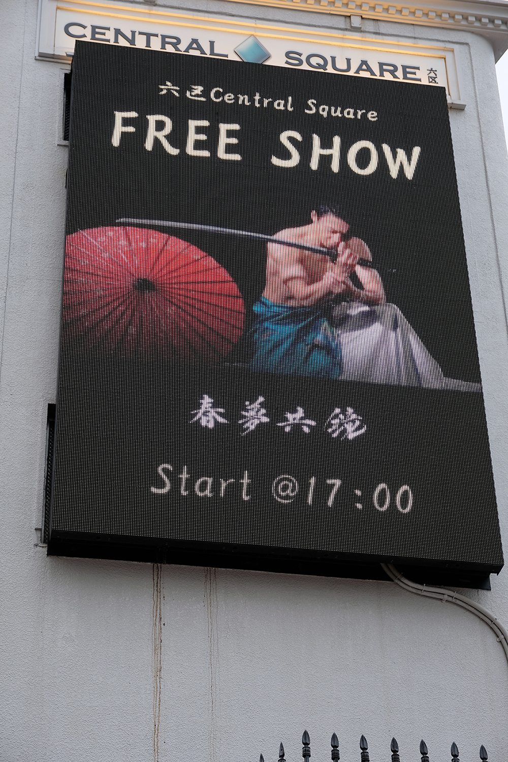 この日、17:00より「春夢共鏡」演者によるフリーパフォーマンスを屋外で行う予定になっていた。