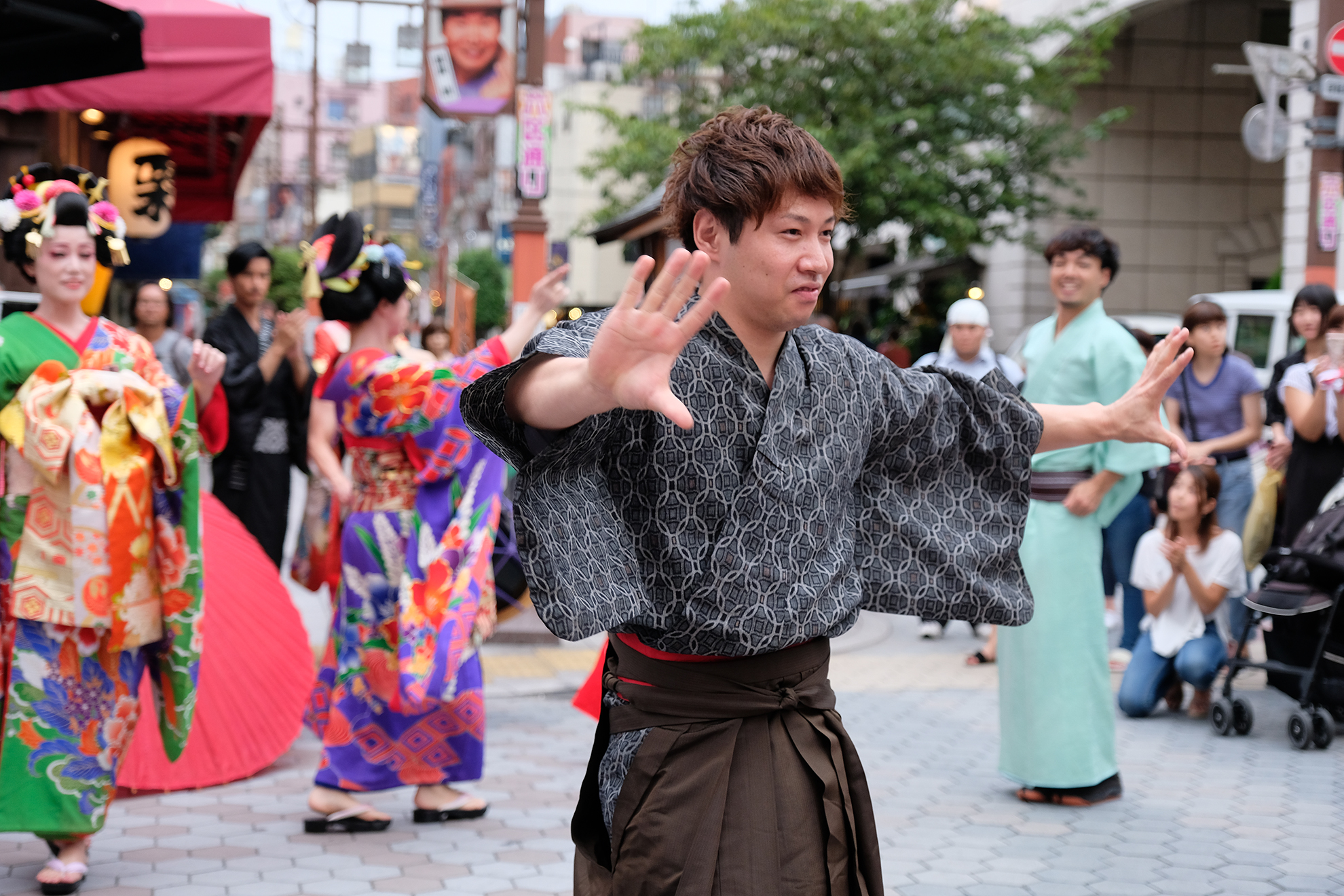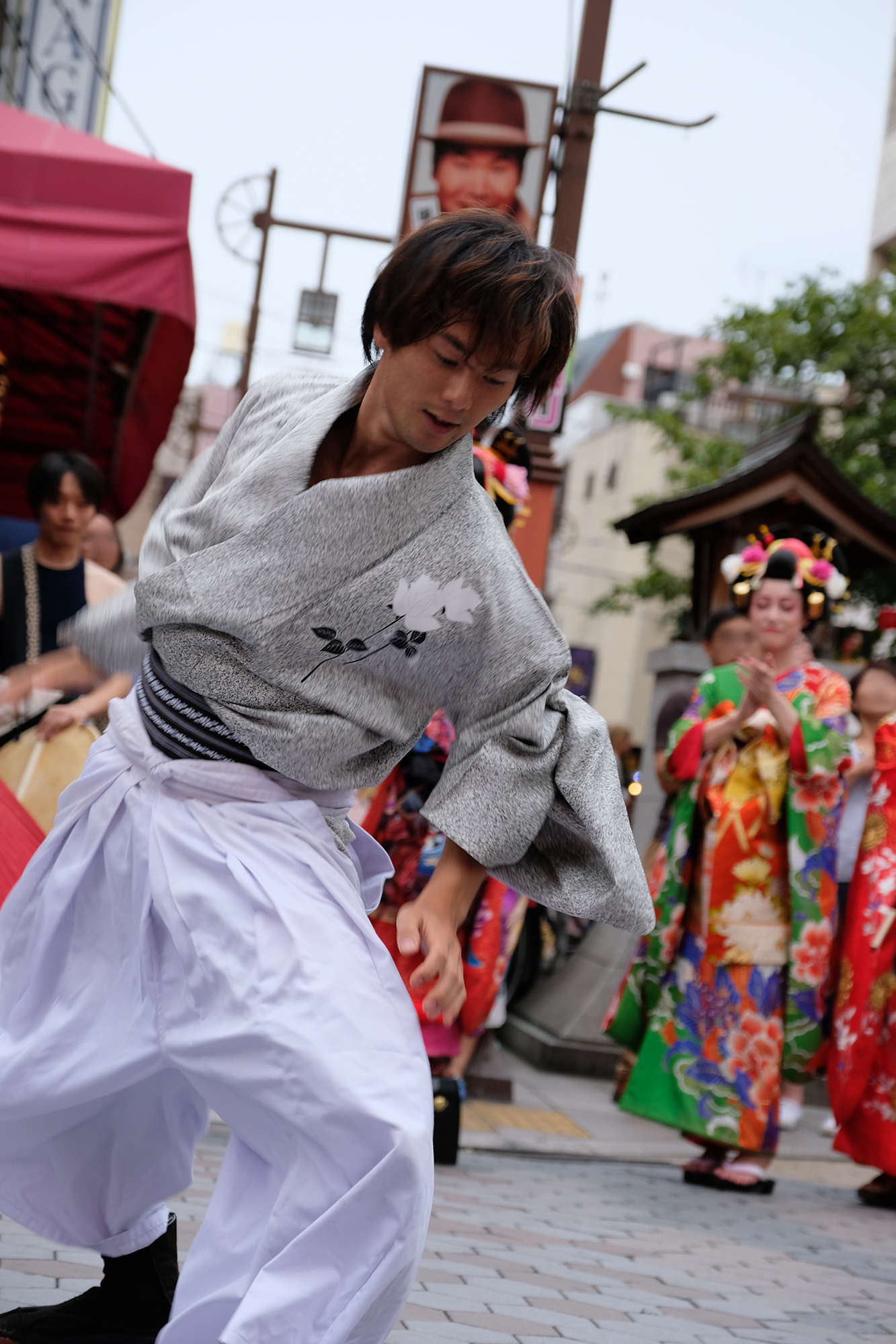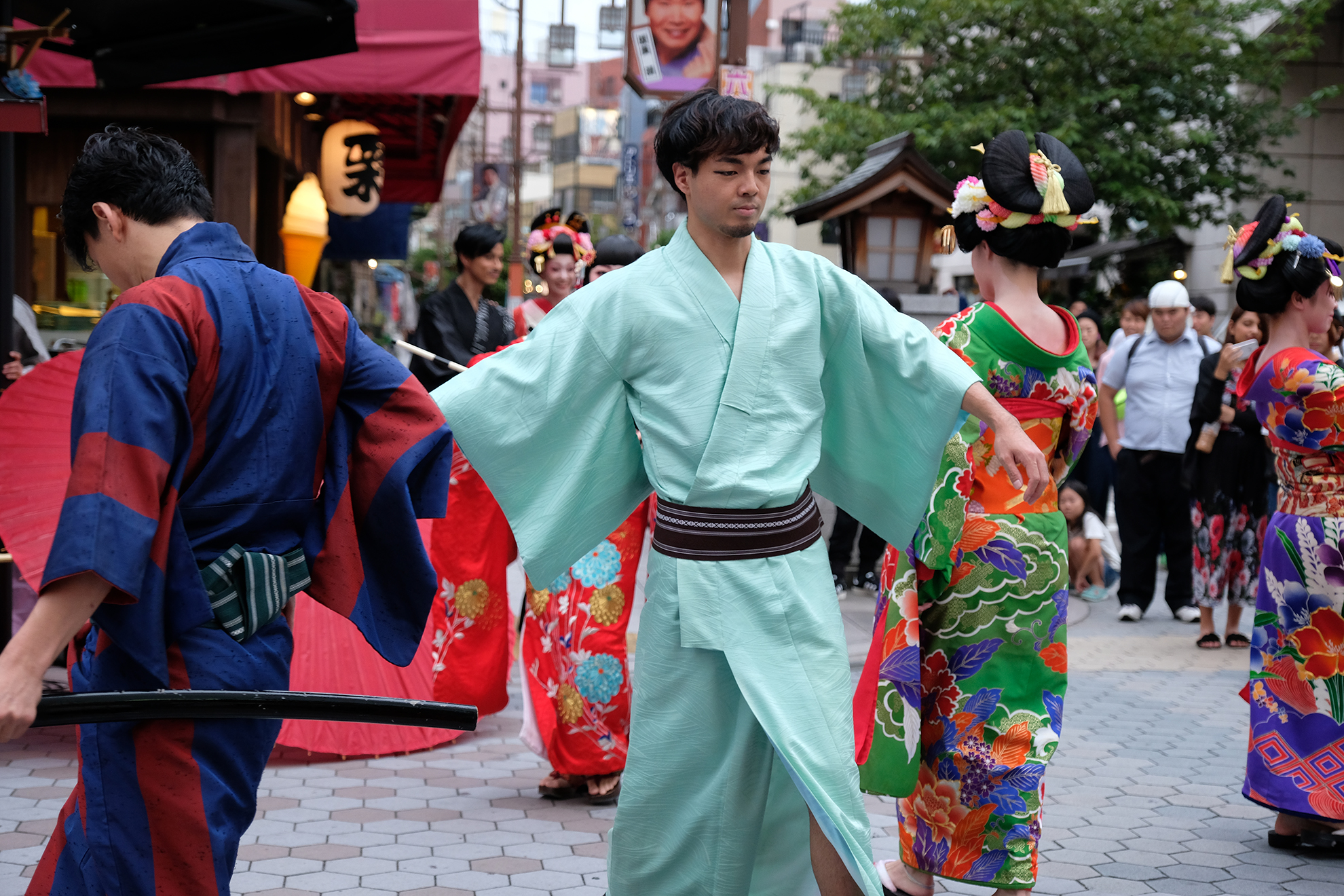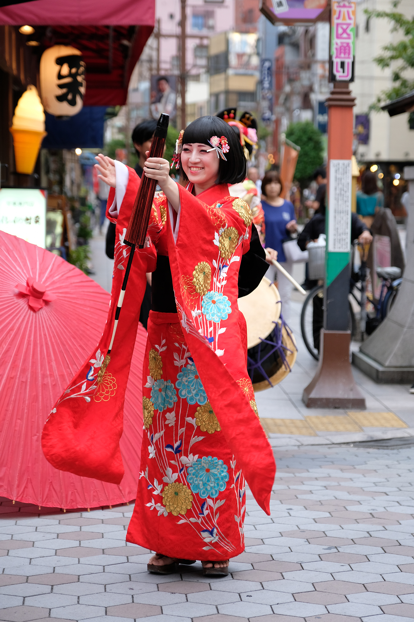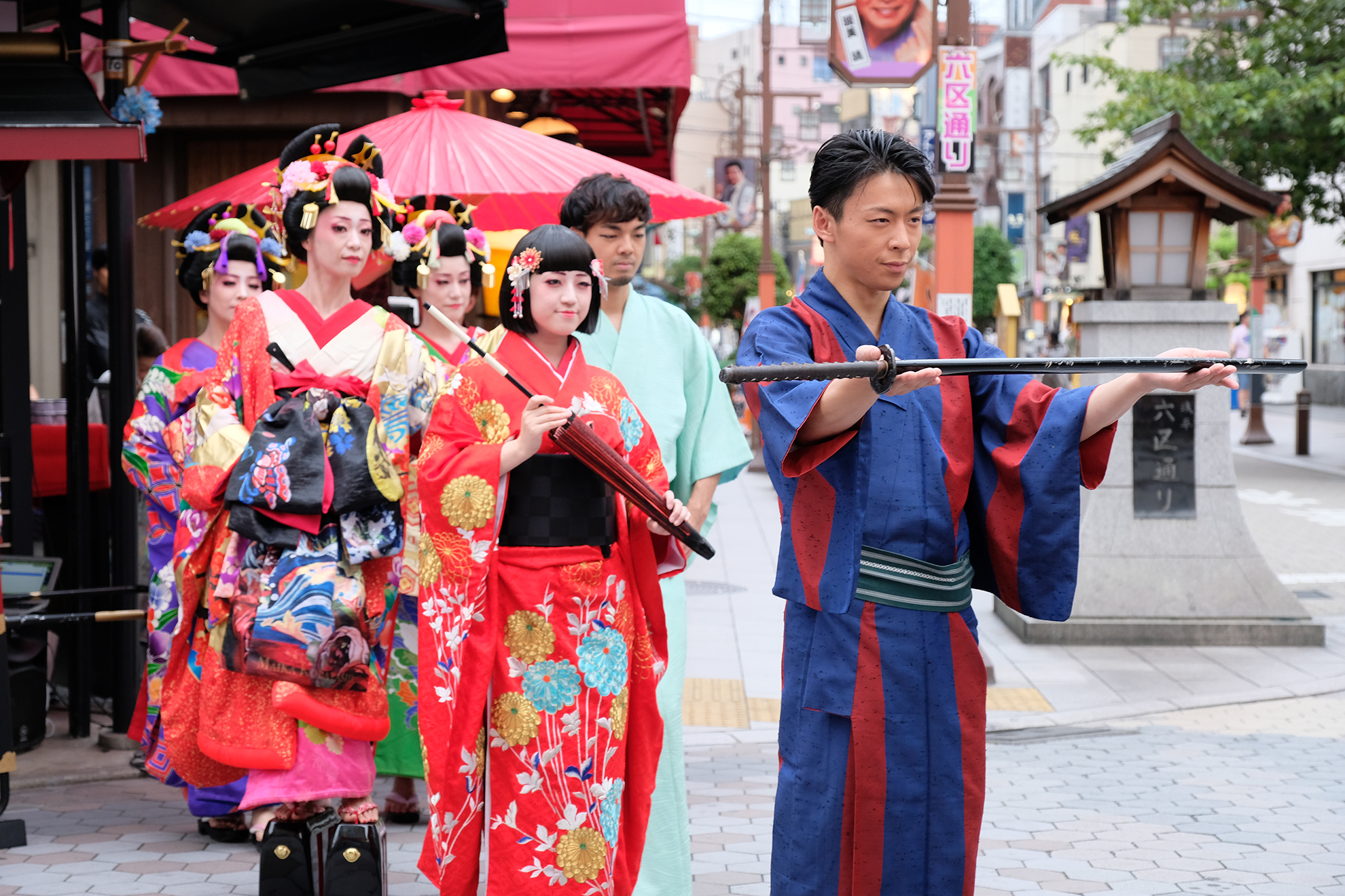 雨は見事に上がり、本番の衣装に身を包んだ演者たちが、ゆめまち劇場から六区ブロードウェイ通りをゆっくりと歩く姿があったのである。