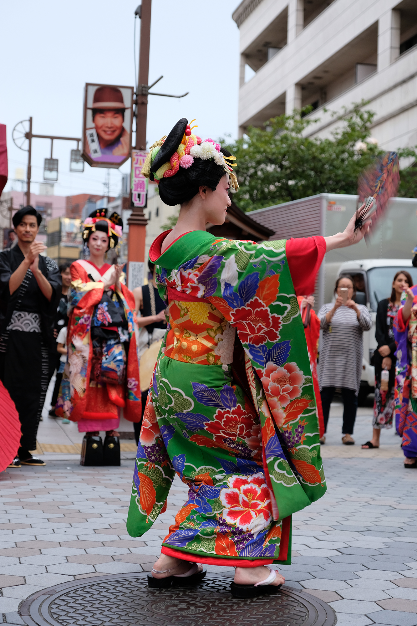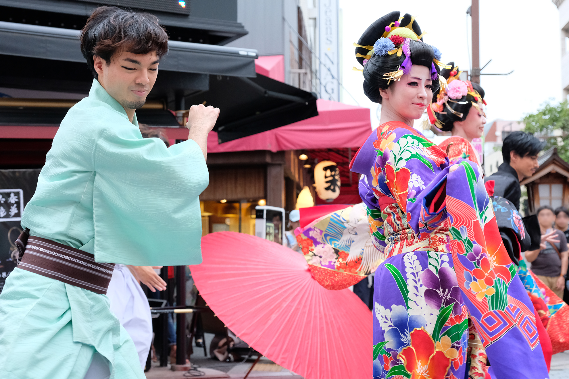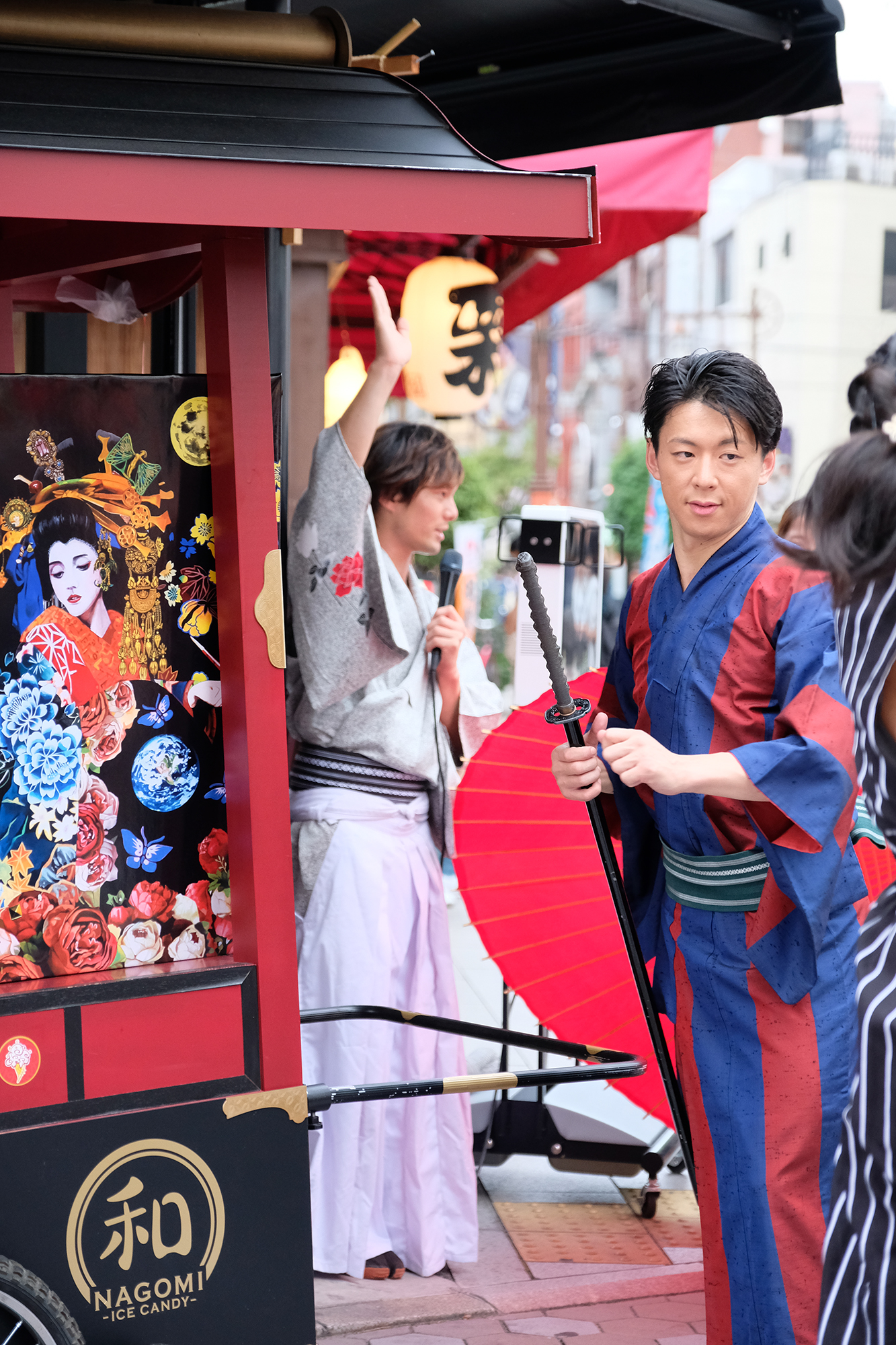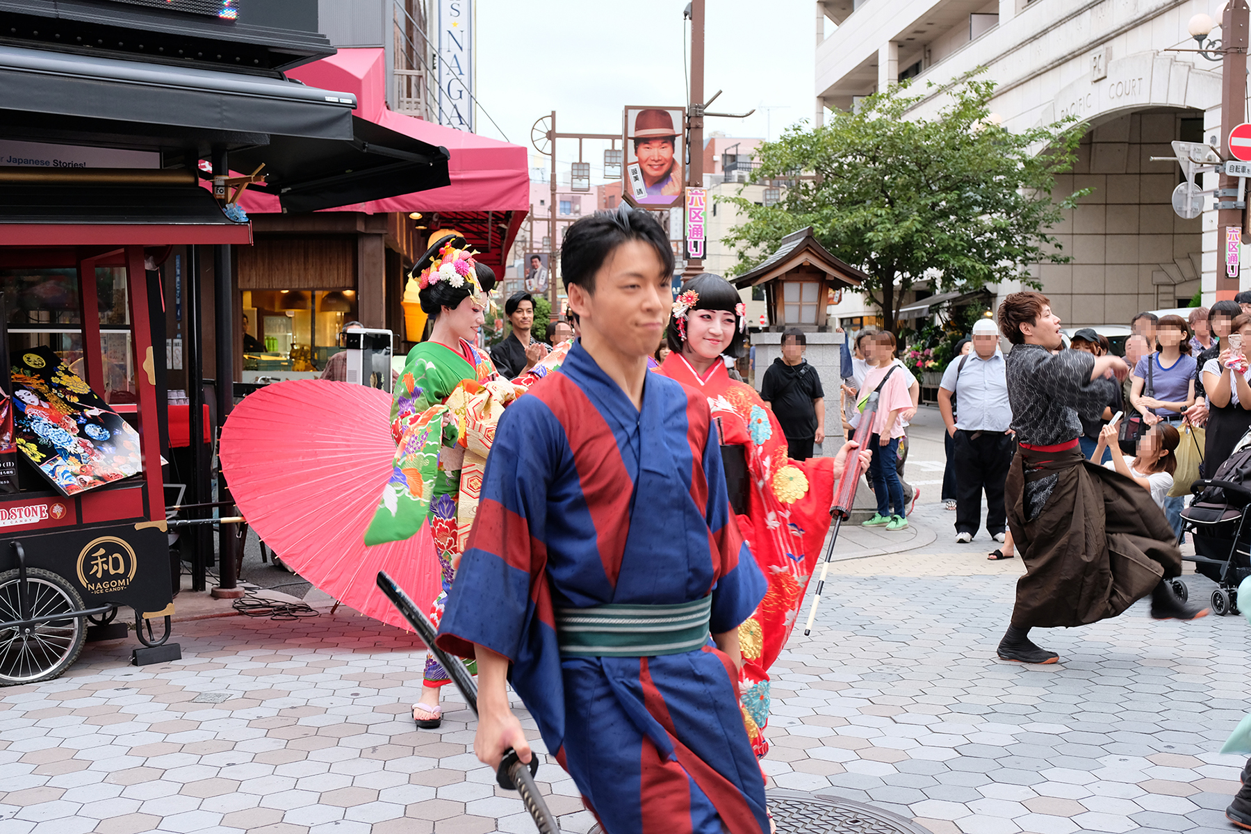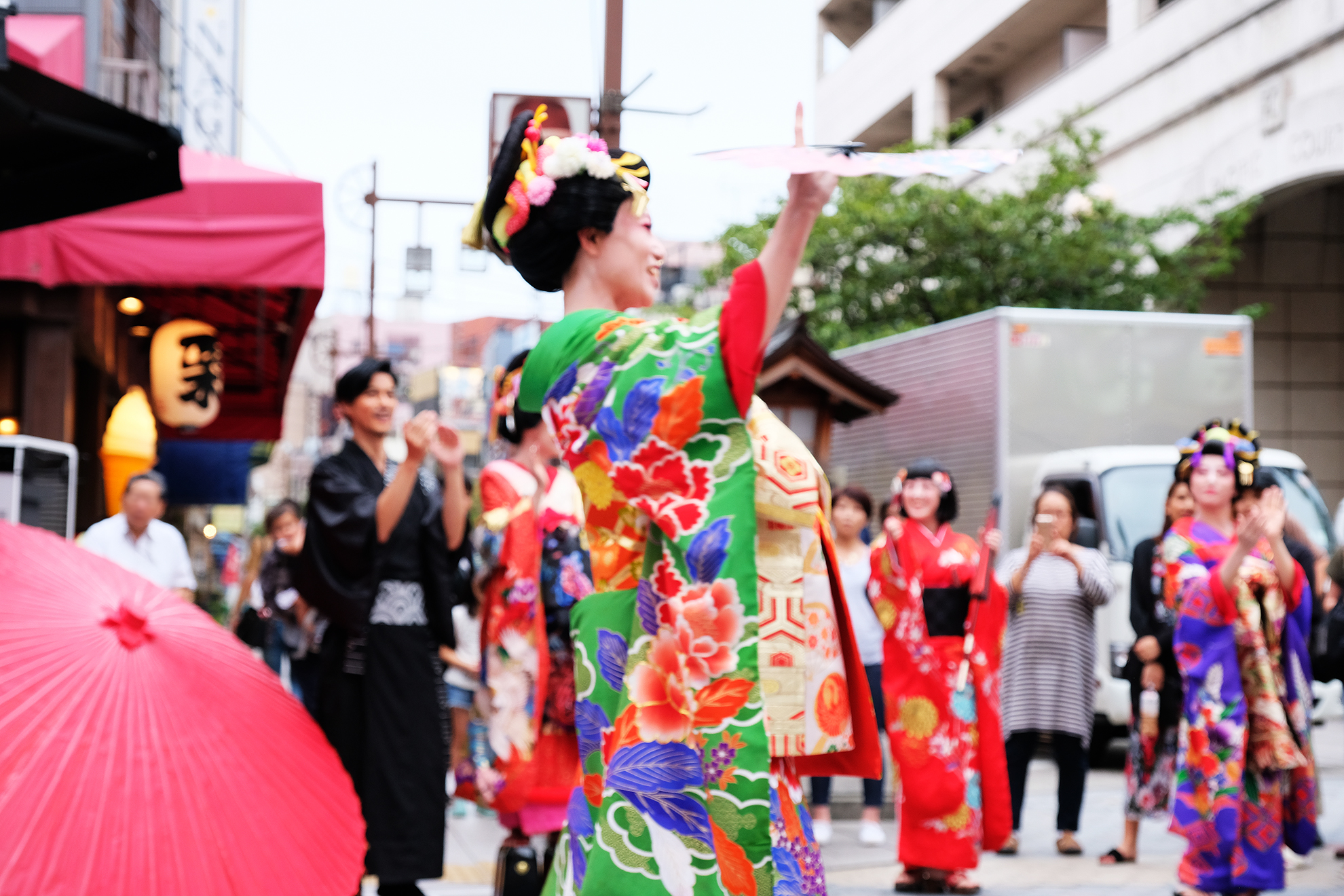 雨は見事に上がり、本番の衣装に身を包んだ演者たちが、ゆめまち劇場から六区ブロードウェイ通りをゆっくりと歩く姿があったのである。