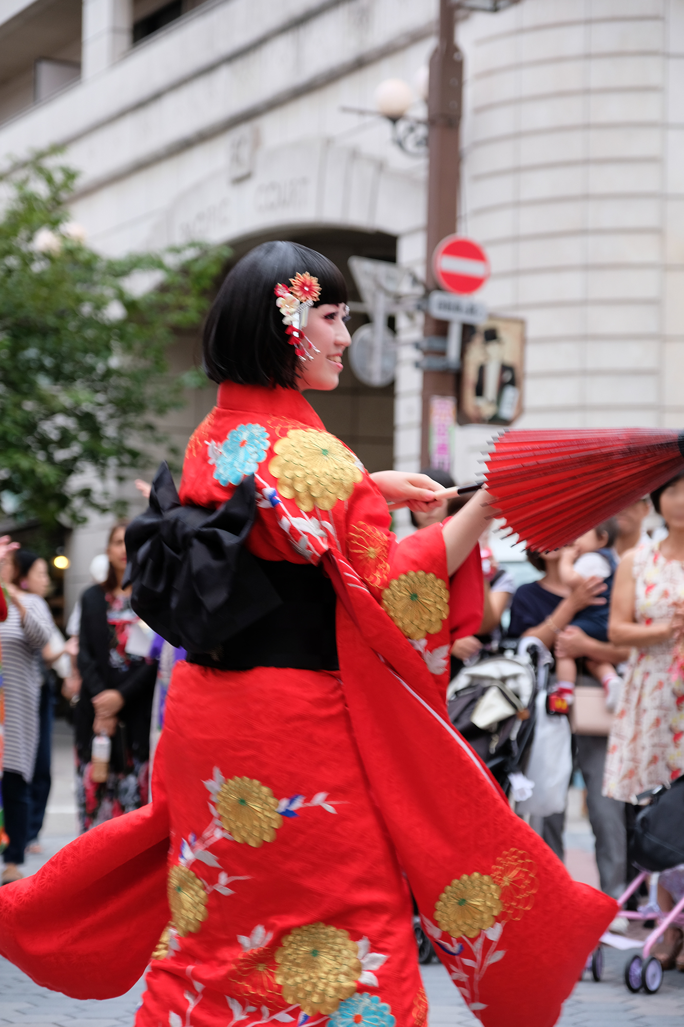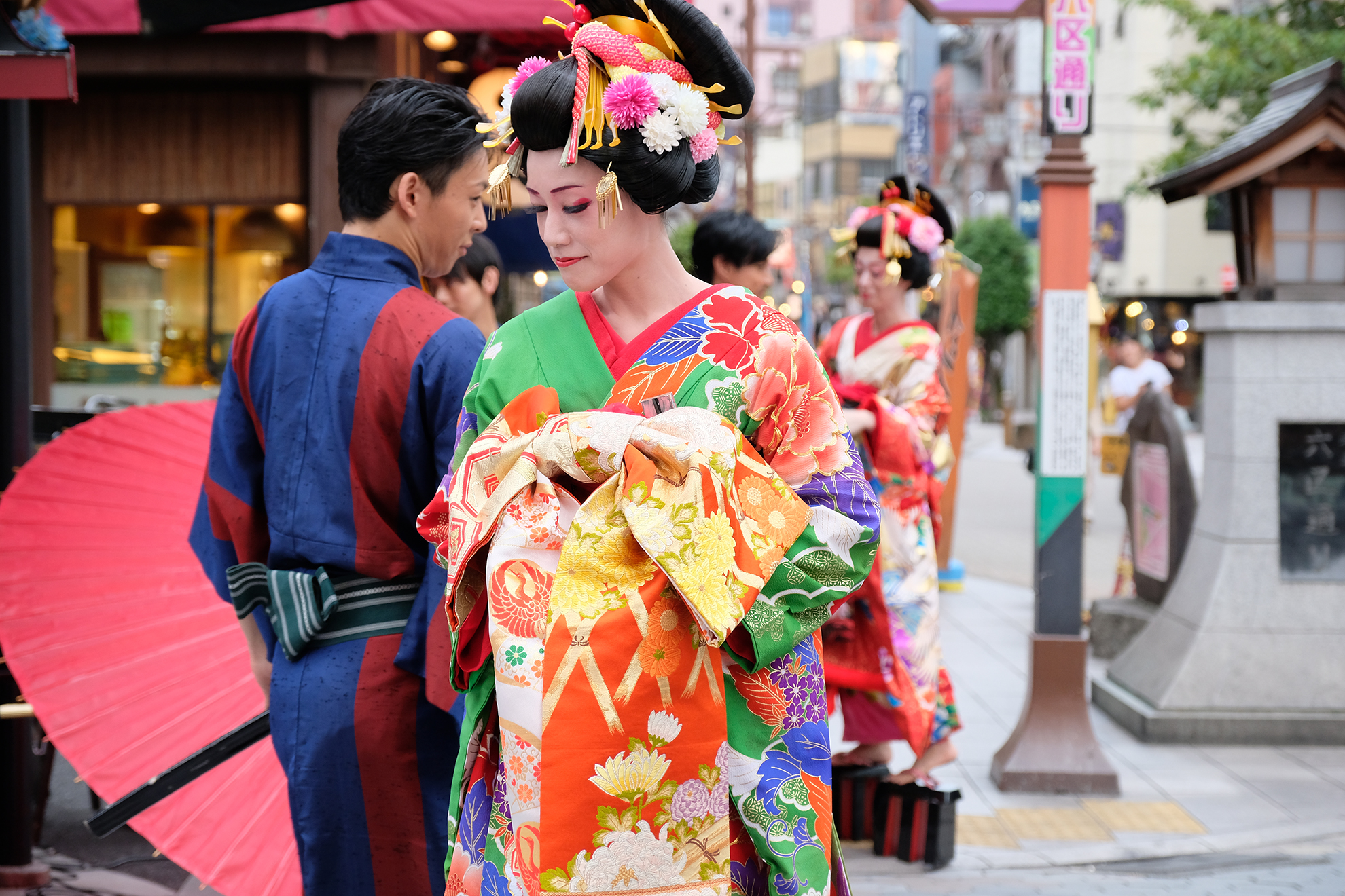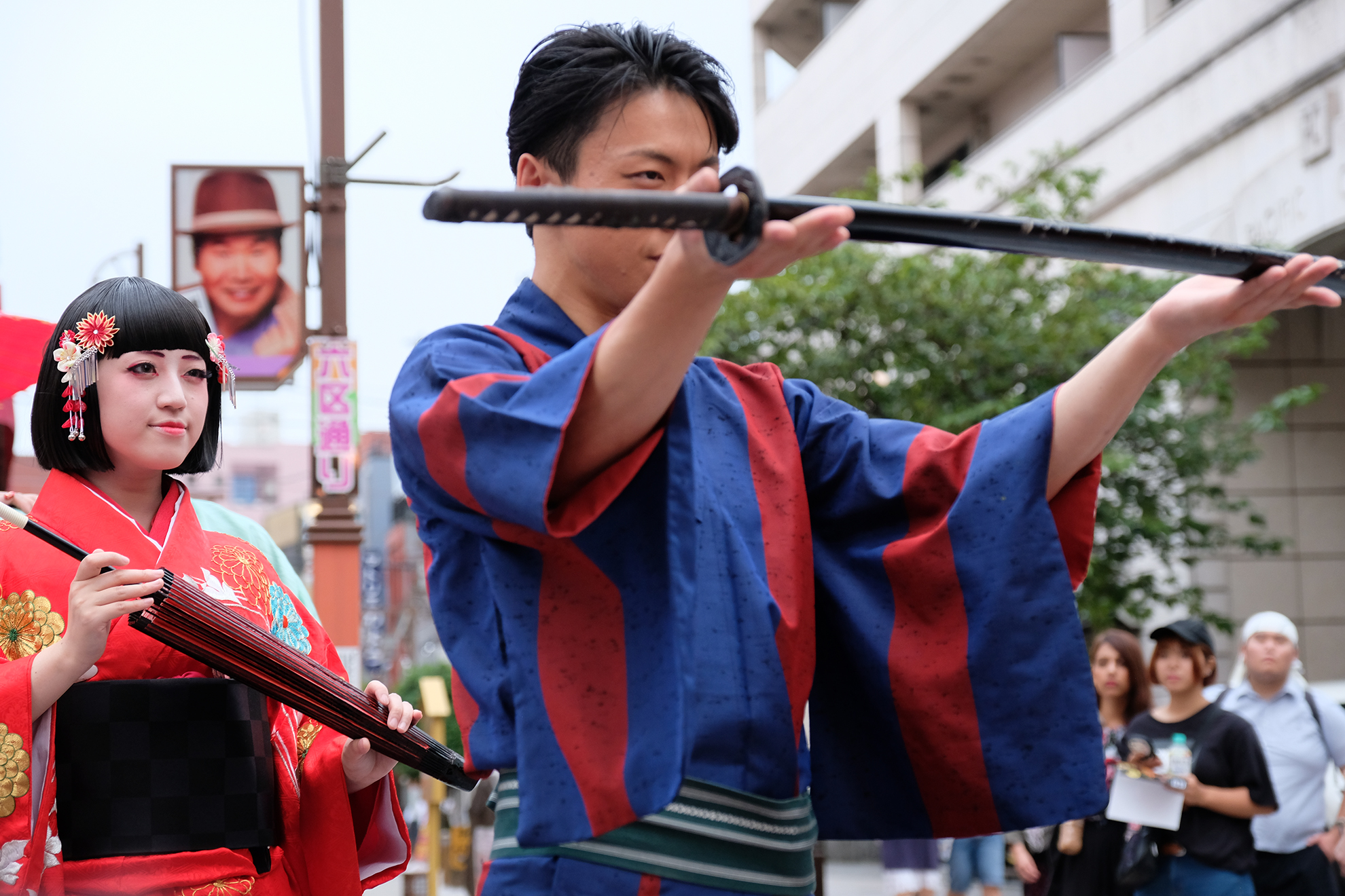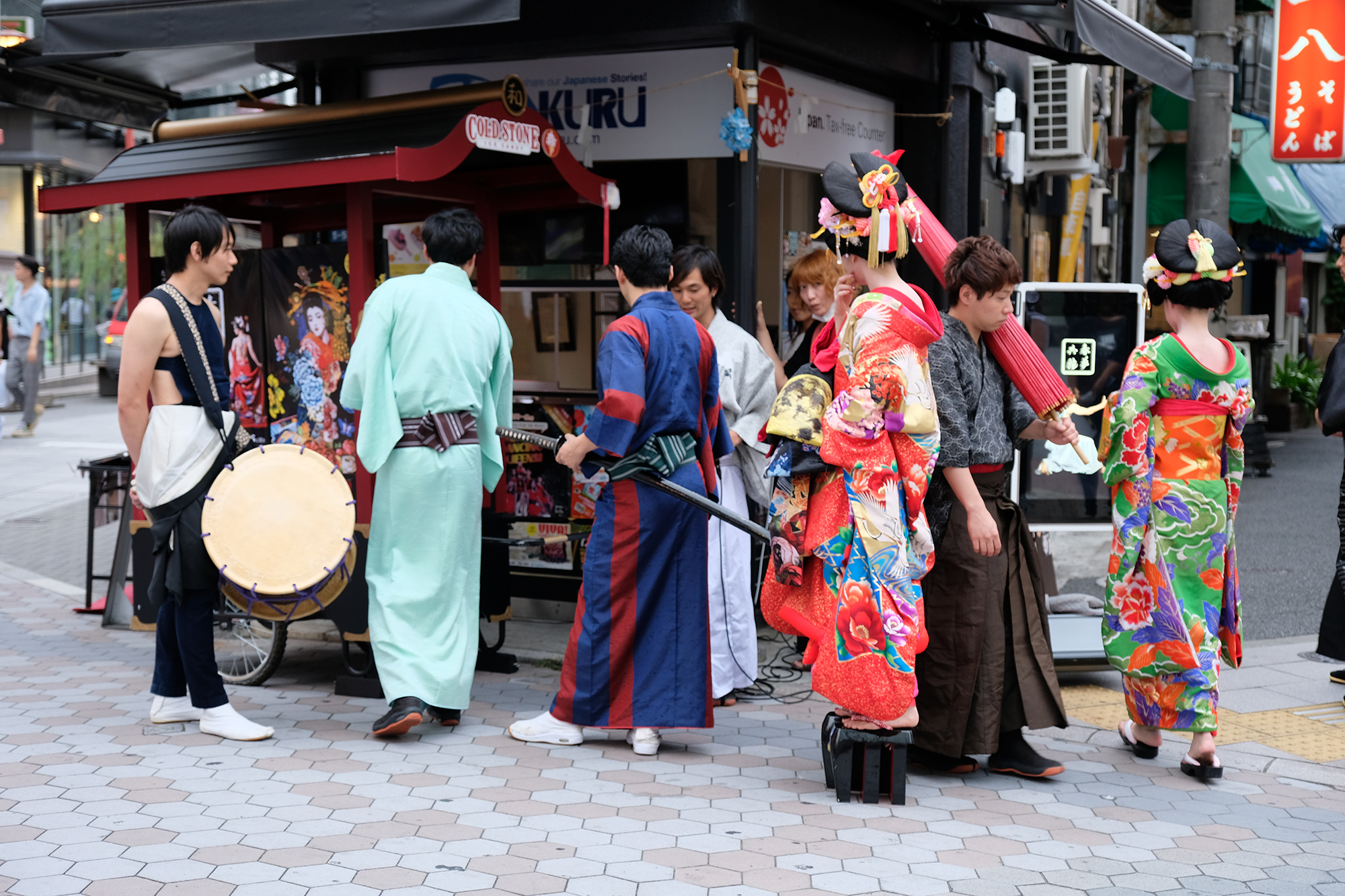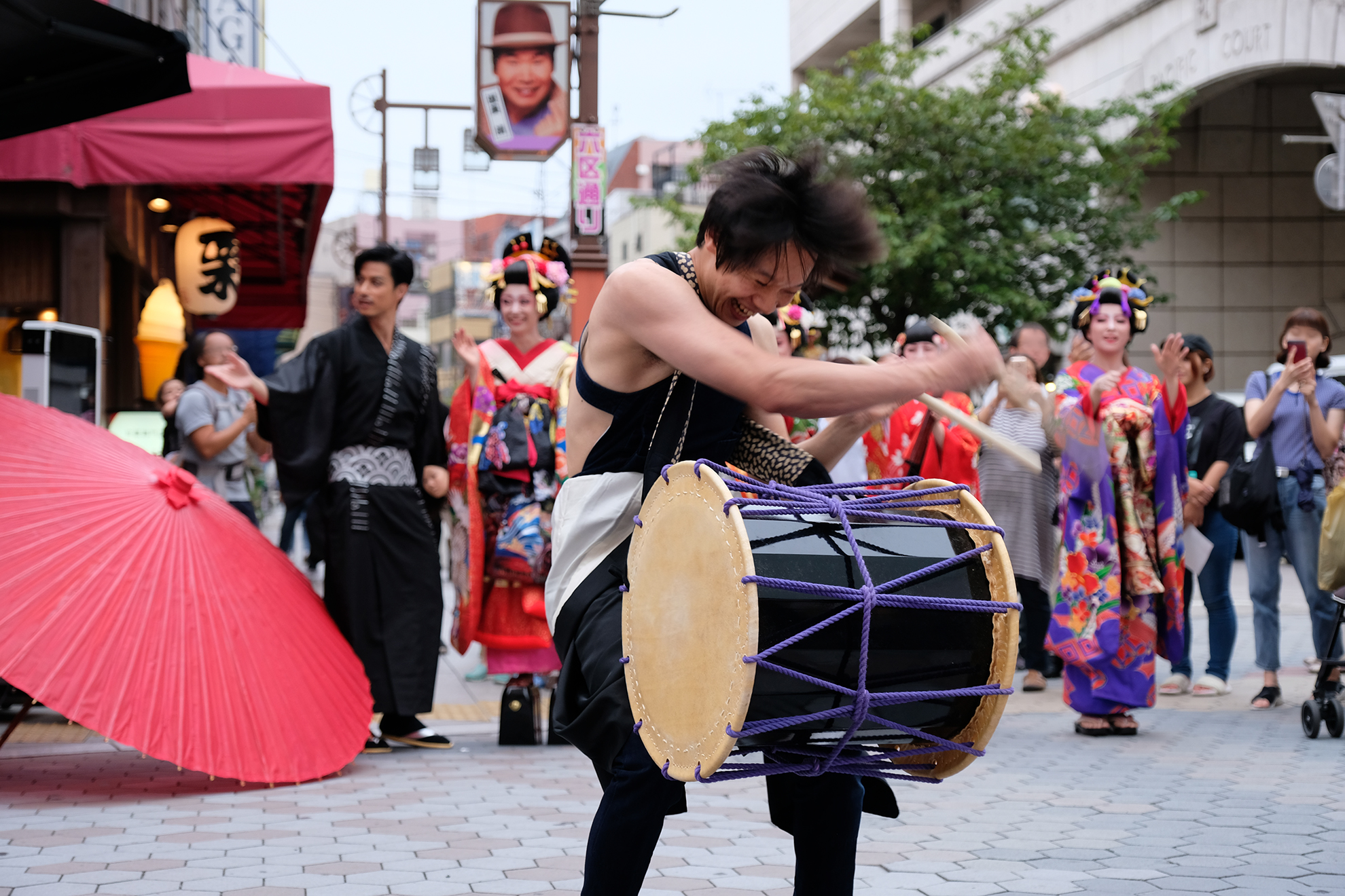 雨は見事に上がり、本番の衣装に身を包んだ演者たちが、ゆめまち劇場から六区ブロードウェイ通りをゆっくりと歩く姿があったのである。
