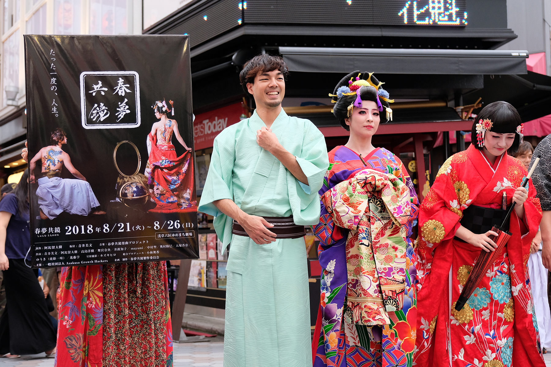 そのプロジェクトに共感した、同じ思いを抱く浅草の地域の方々、今回演出を担当する阿比留大樹、脚本を担当する青井美文、そして最高の役者陣とスタッフ。これら沢山の人々の尽力により、プロジェクトの第一歩となる今回の舞台「春夢共鏡」の公演が実現したのである。