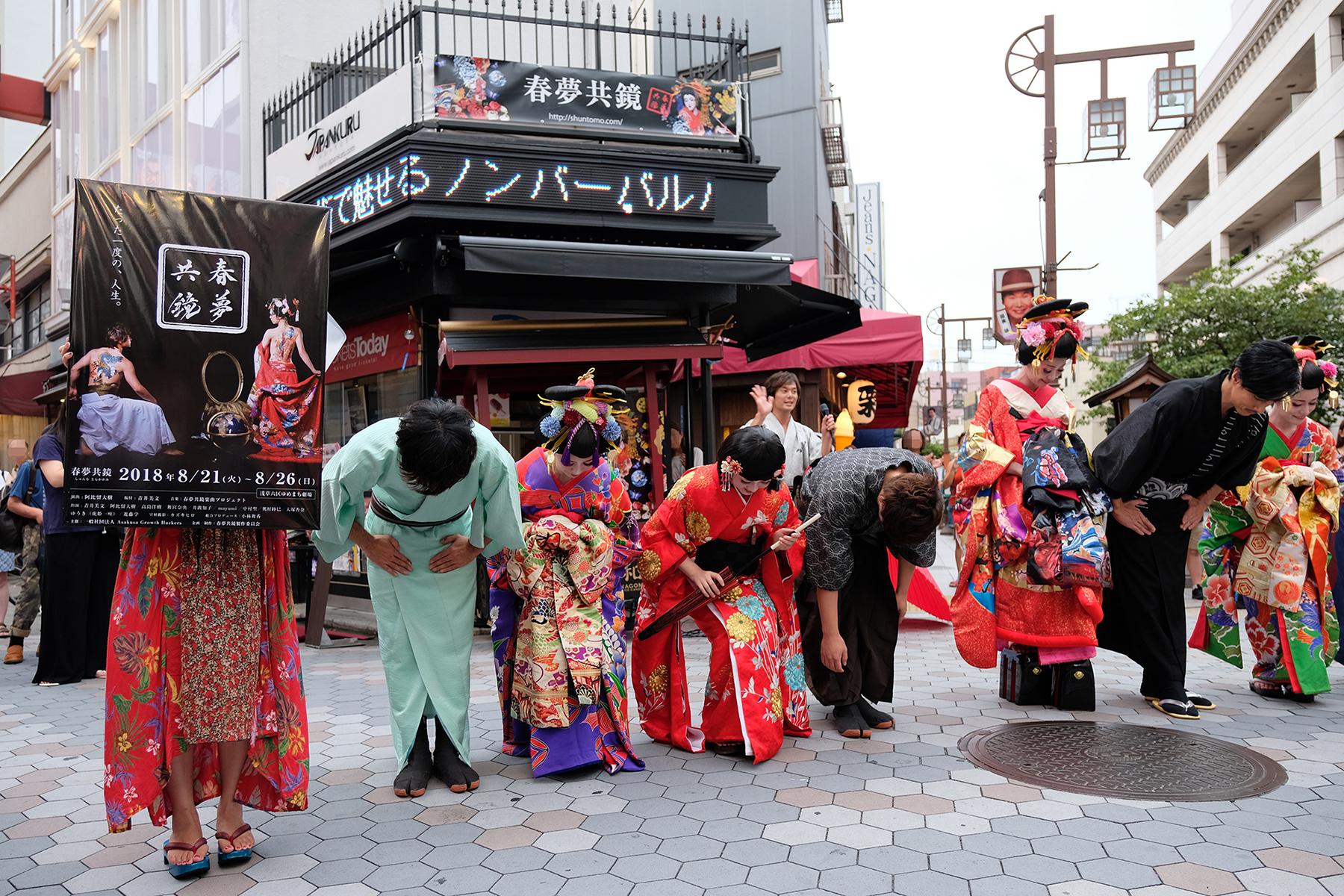 20日夕方、その出演者一同によるフリーパフォーマンスショーが、六区セントラルスクエア・Tickets Today浅草店前にて、決行された!