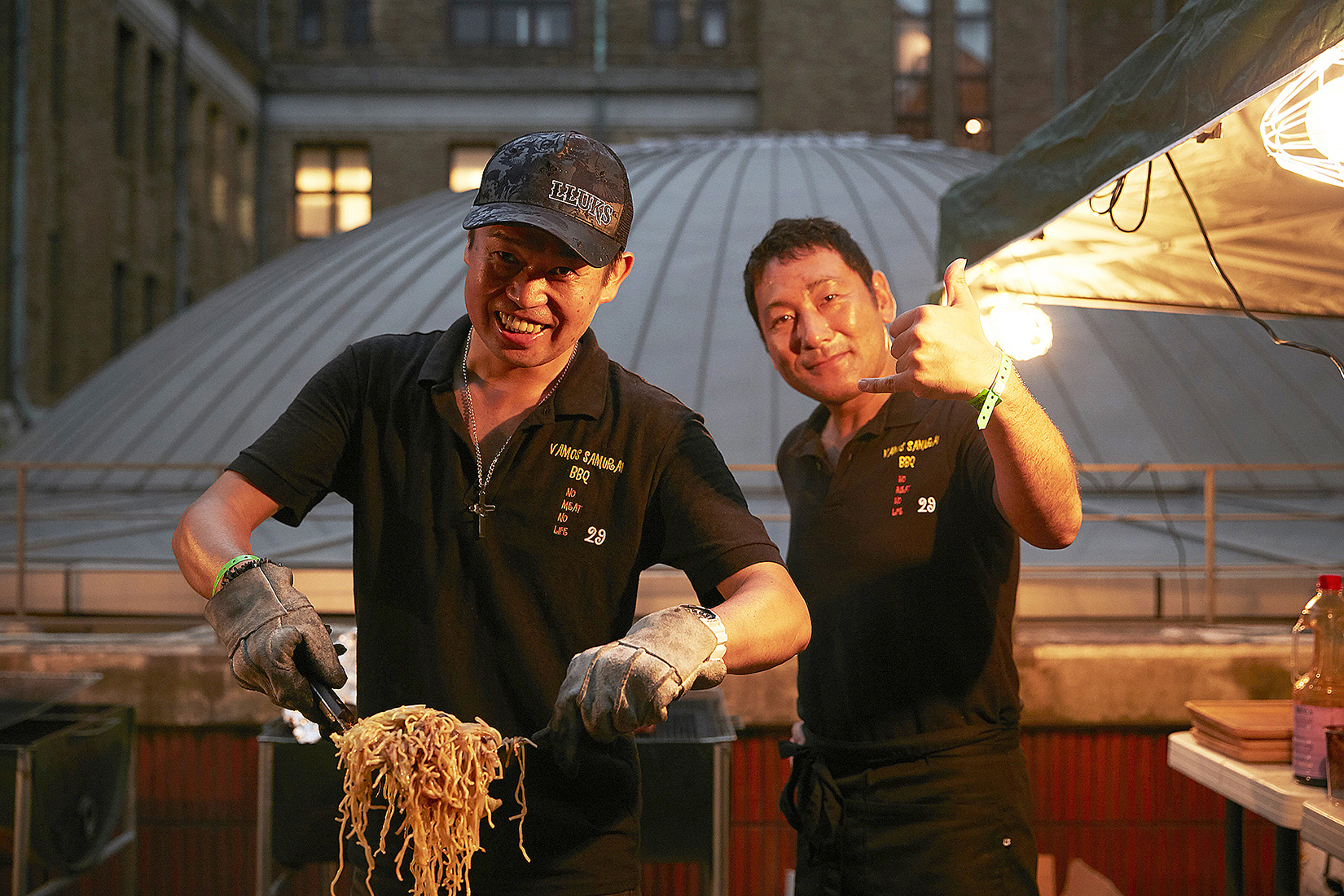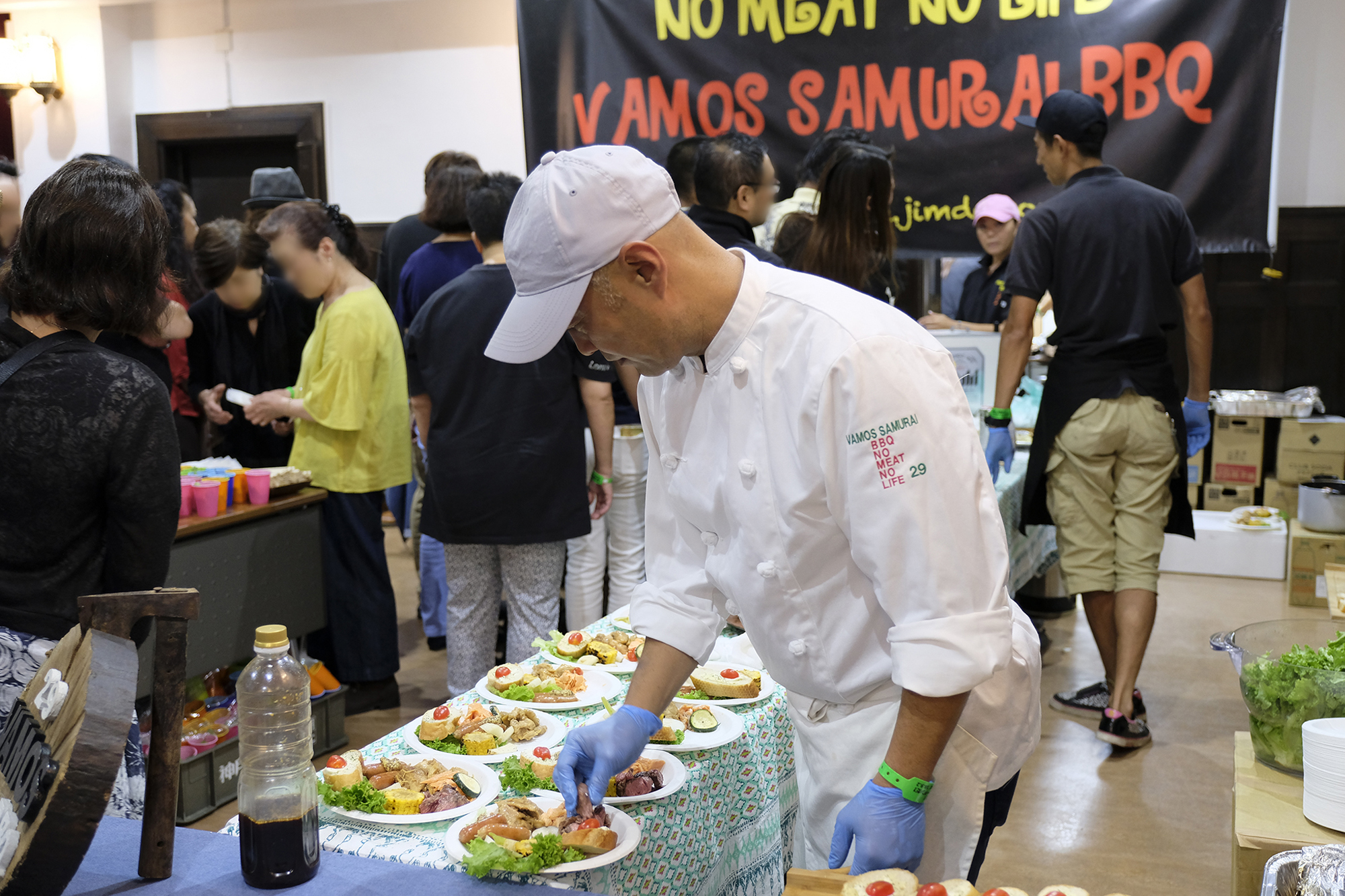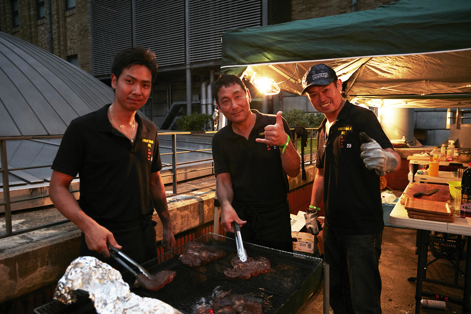 *一瞬も気を抜くこと無く、威勢よく焼き、運び、笑顔でドリンクとフードを振る舞う、”VAMOS SAMURAI BBQ”のメンバーの皆さん!