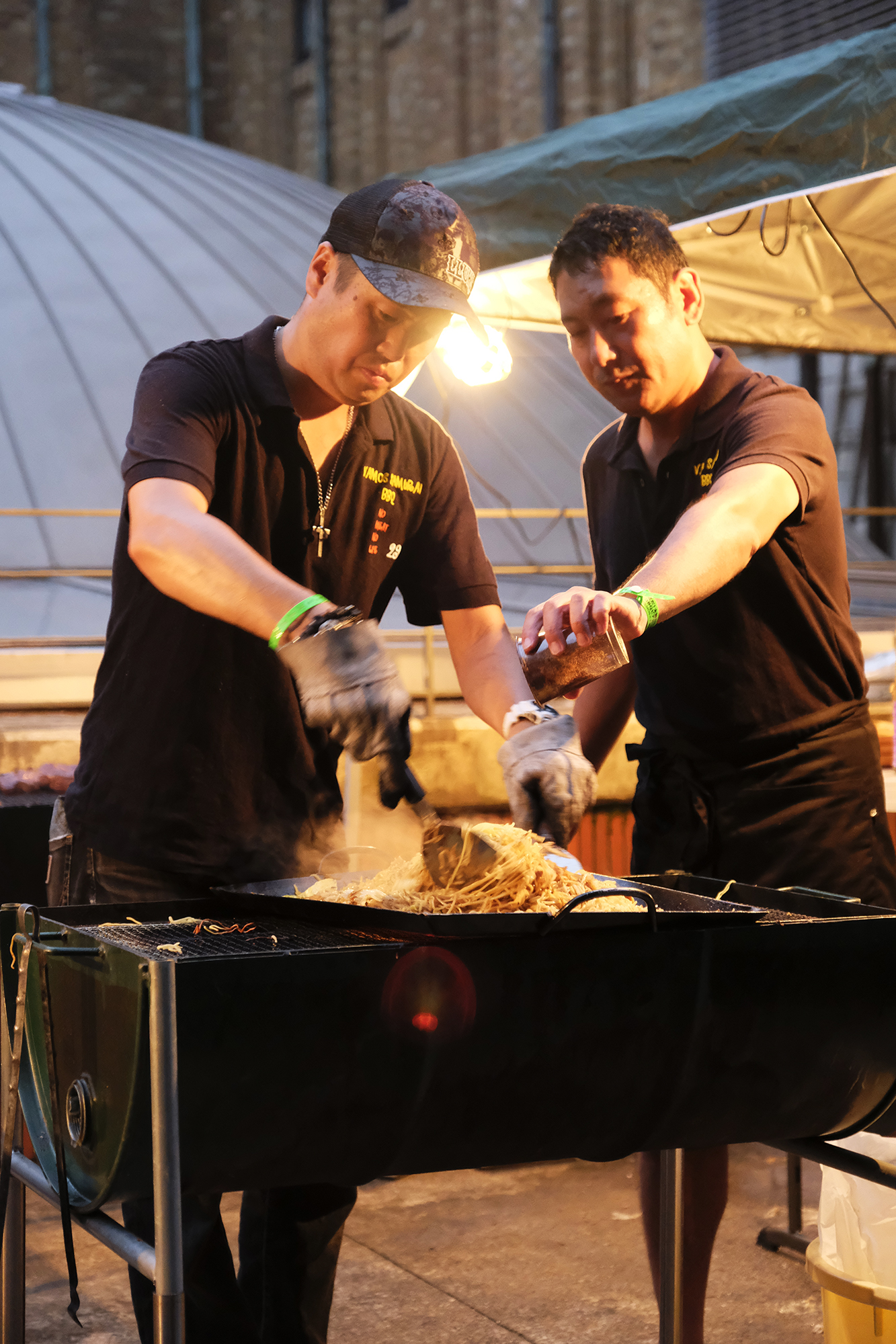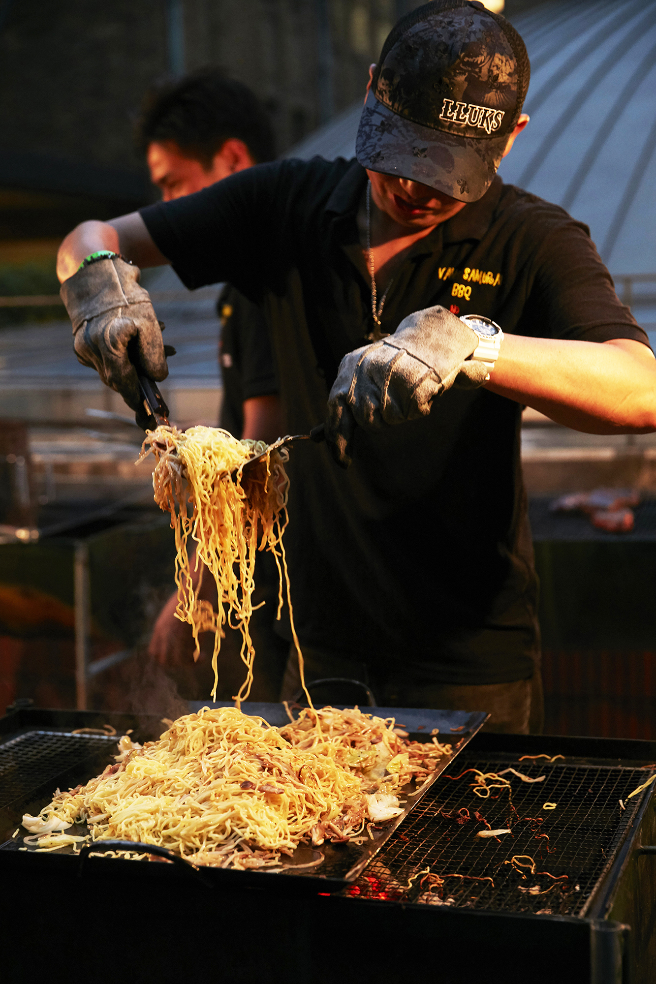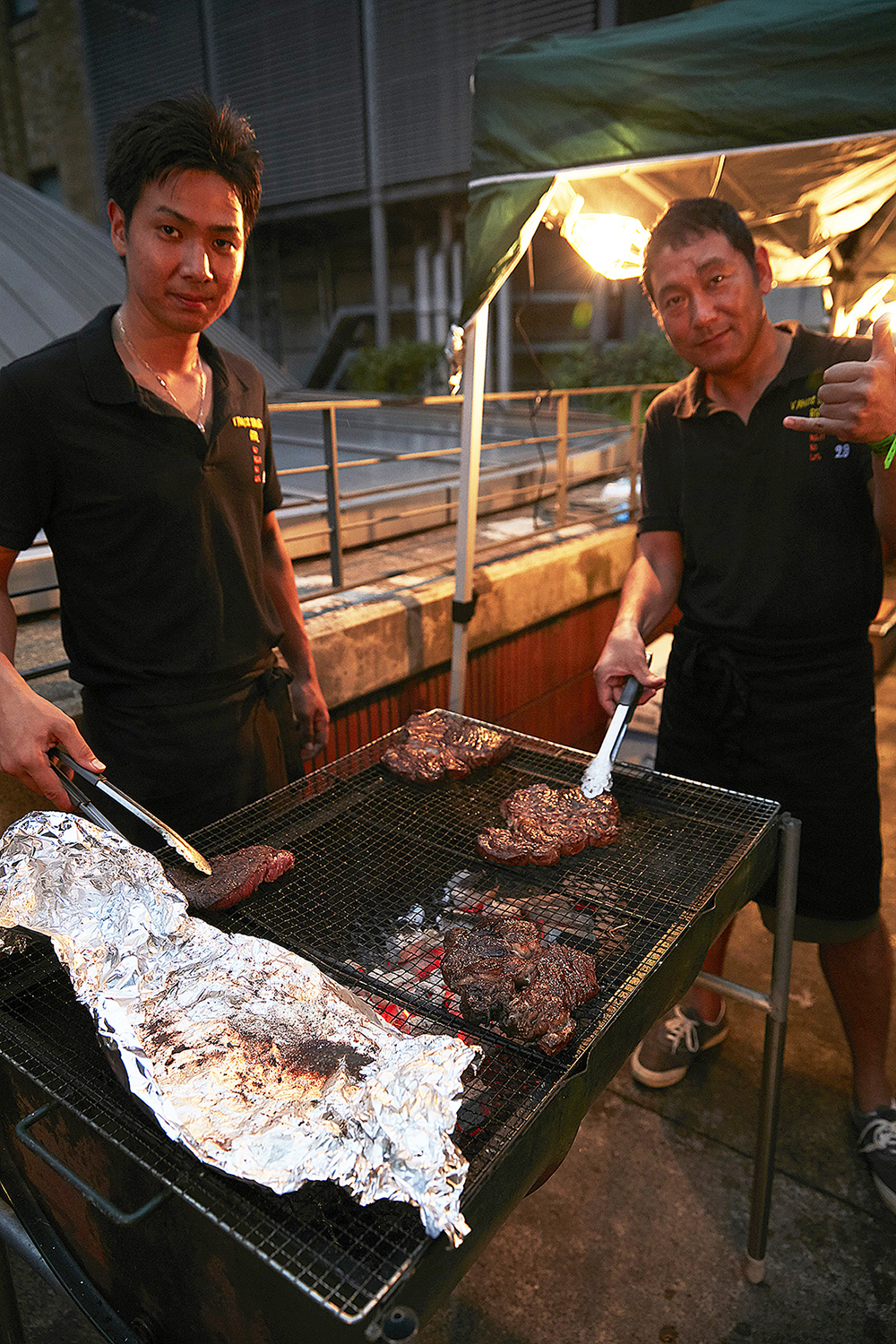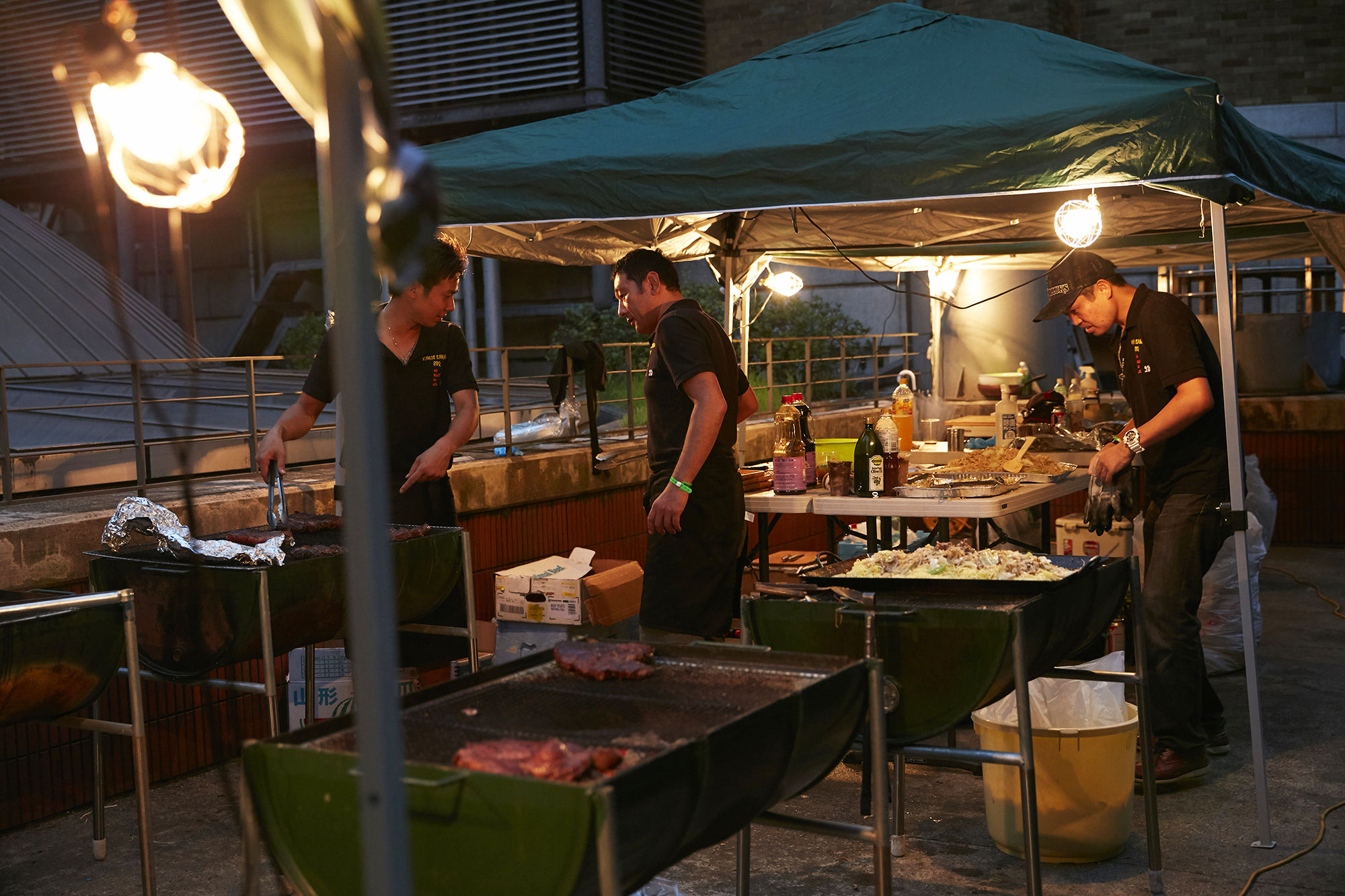 *一瞬も気を抜くこと無く、威勢よく焼き、運び、笑顔でドリンクとフードを振る舞う、”VAMOS SAMURAI BBQ”のメンバーの皆さん!