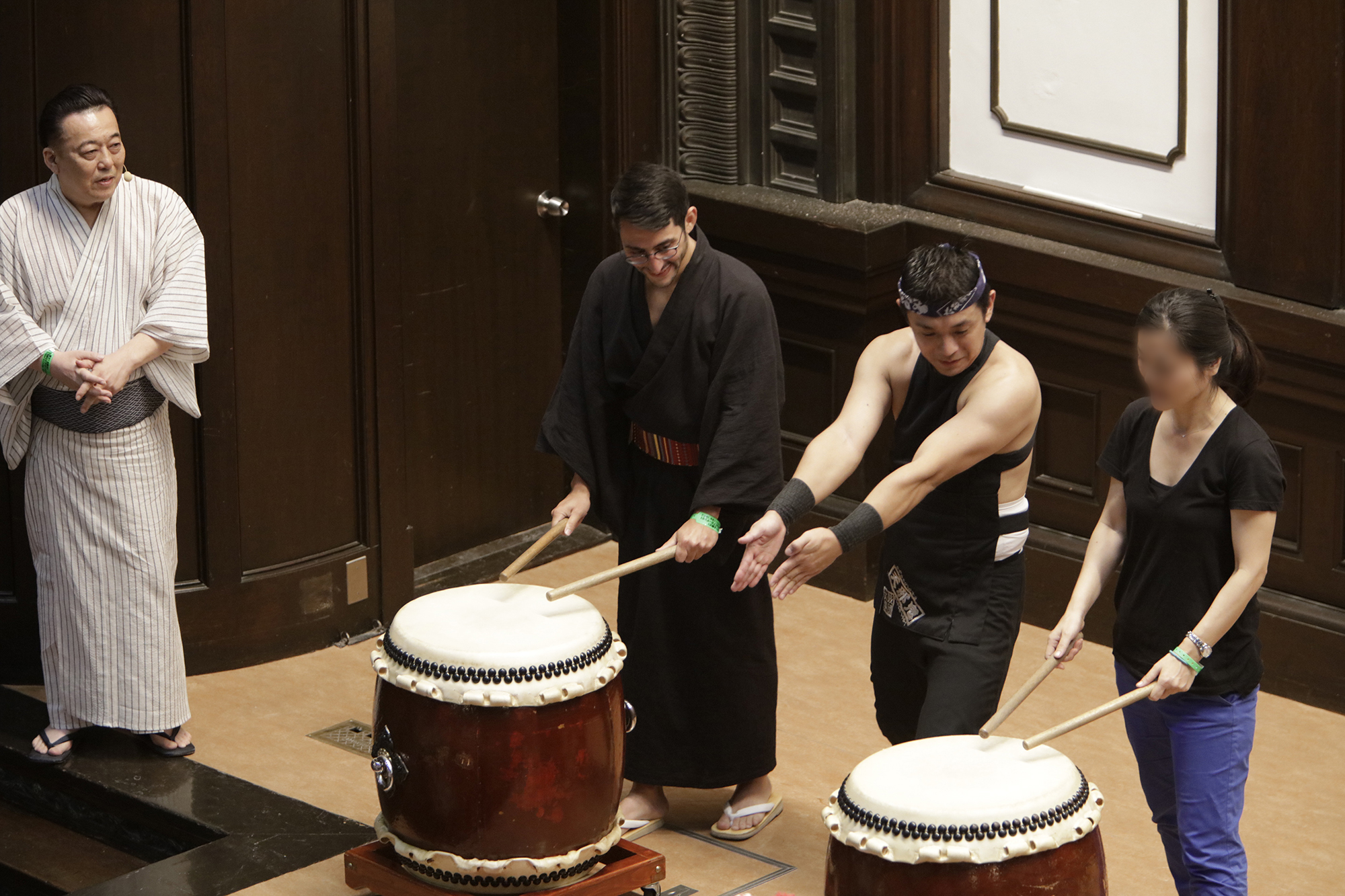 そして、一緒に演奏してみたい方を募り、皆様とても積極的で何と、計4回も一緒に和太鼓を楽しんでいらっしゃいました!