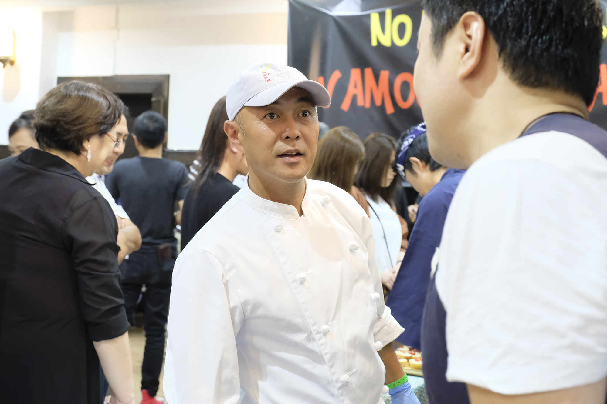 18:30 天邪鬼パフォーマンス開演の時間でしたが、まだまだお料理とお飲み物を求めるお客様の列が絶えず、開演を遅らせるという配慮の場面も。
