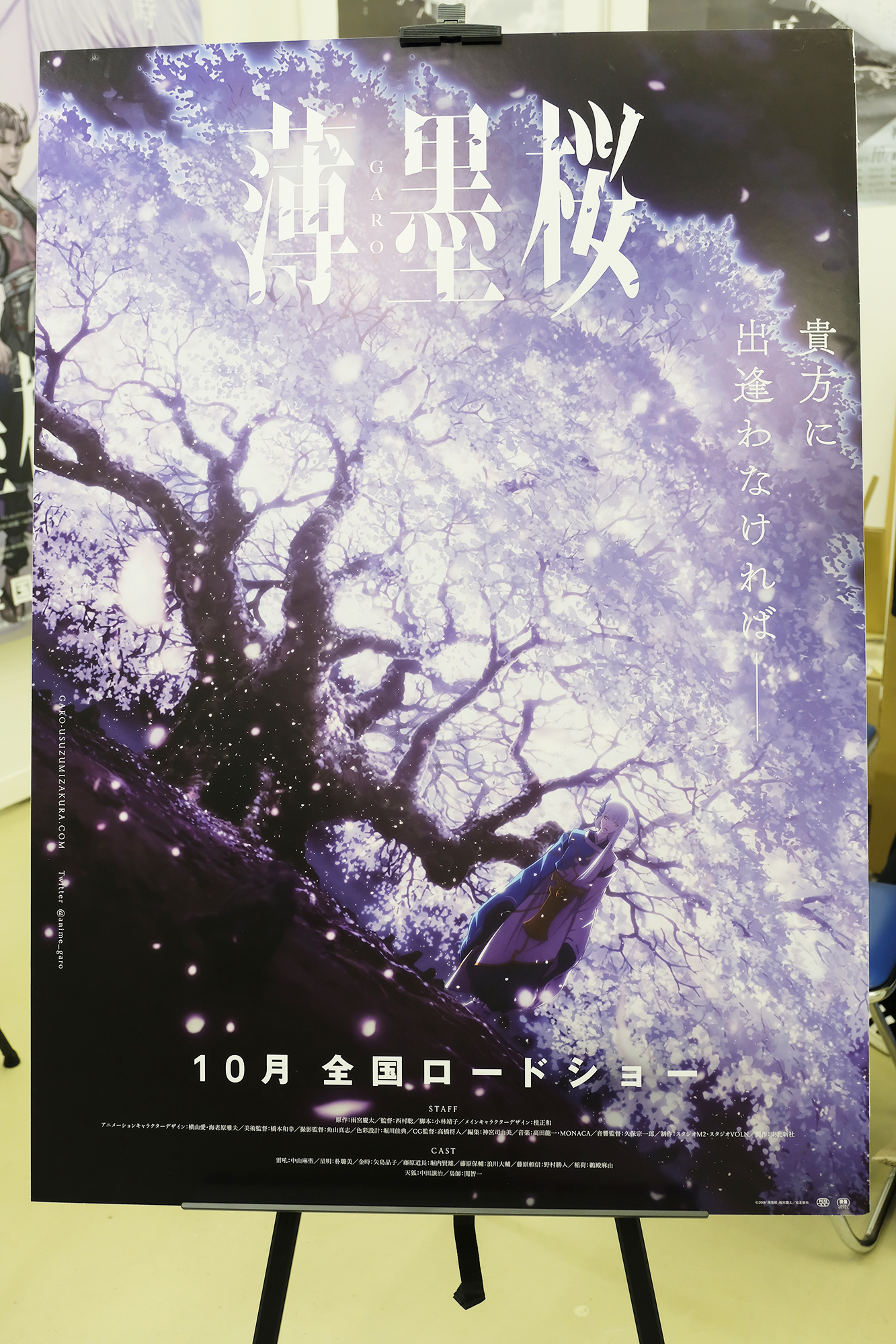そして、京まふの会場内、Tジョイ京都ブース&東北新社ブースでは、京まふ開催の2日間『薄墨桜 -GARO- 』に関する展示物も飾られていました。