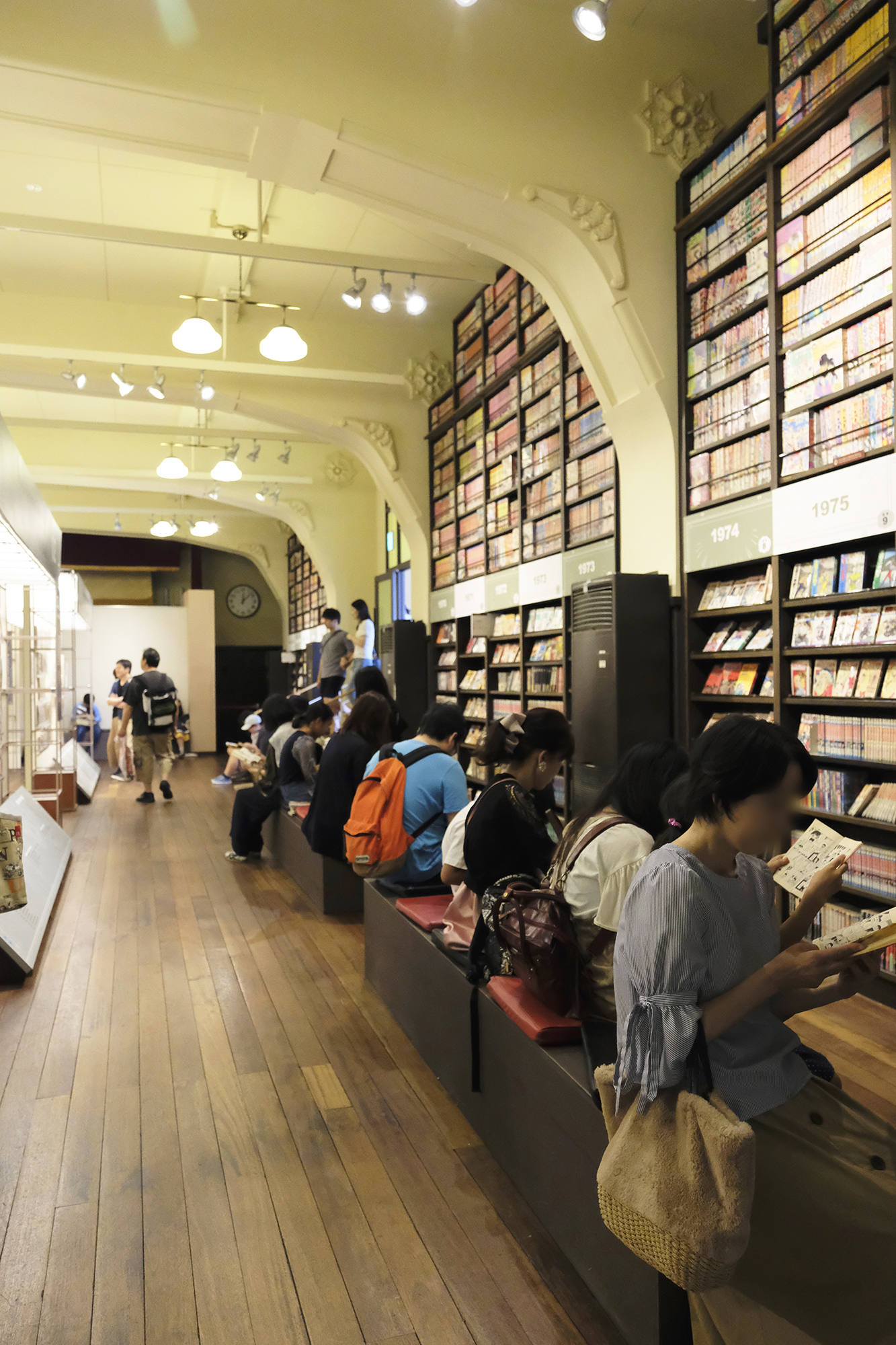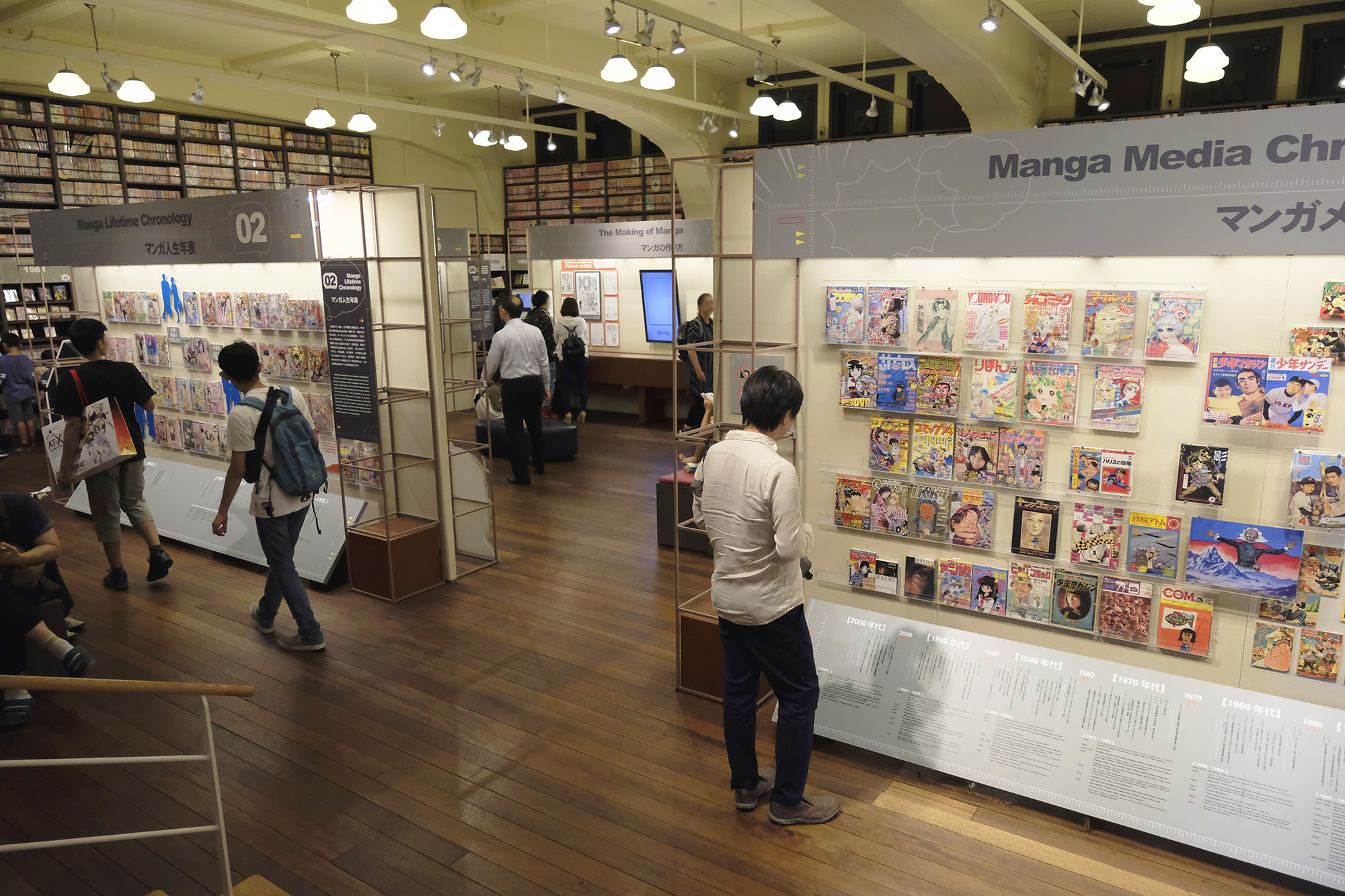エントランス近くの「マンガ万博」コーナーでは、日本マンガの翻訳語版や海外で出版されたコミックスが約5000冊設置。また、地下には雑誌や1970年代以前の資料が収蔵されており、登録を行えば、3階にある閲覧室にて閲覧可能との事。