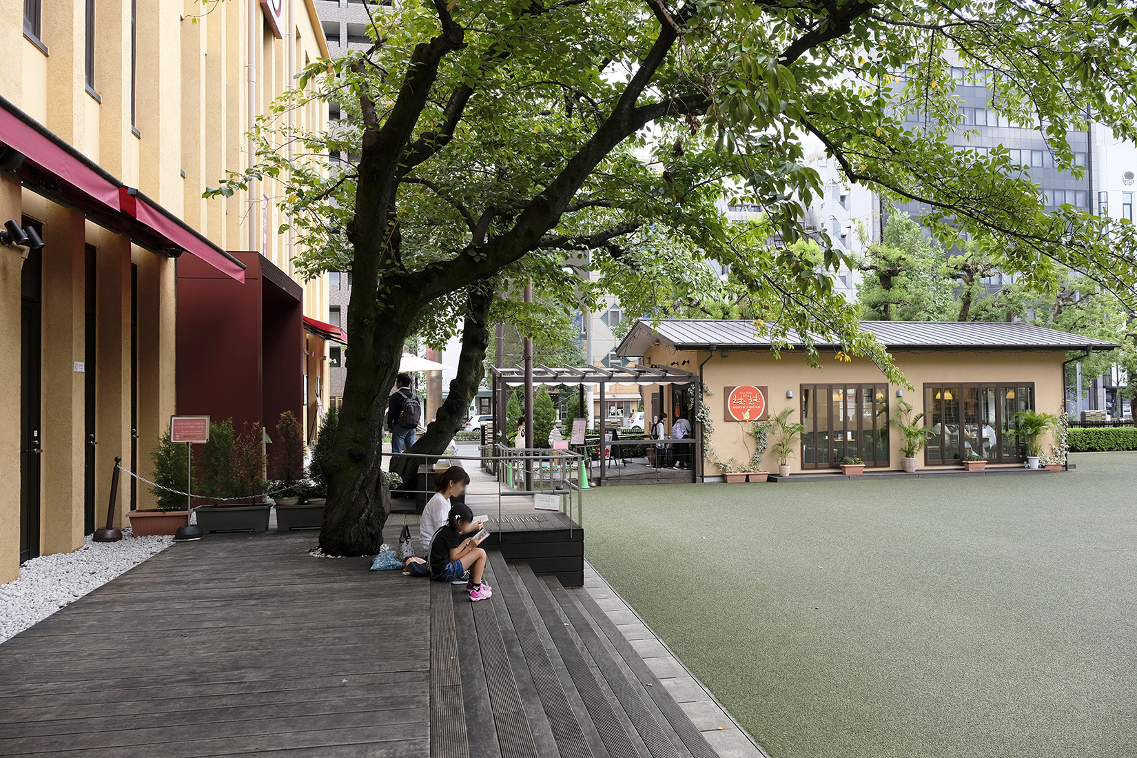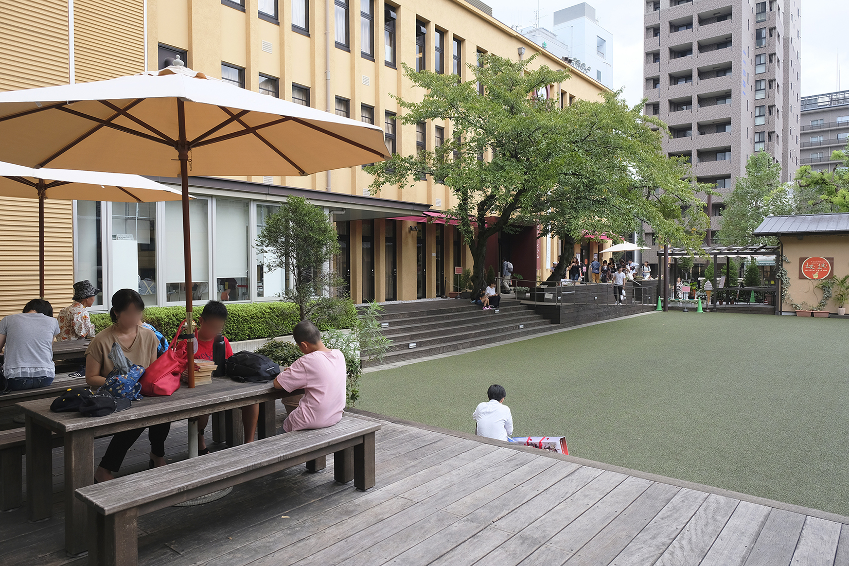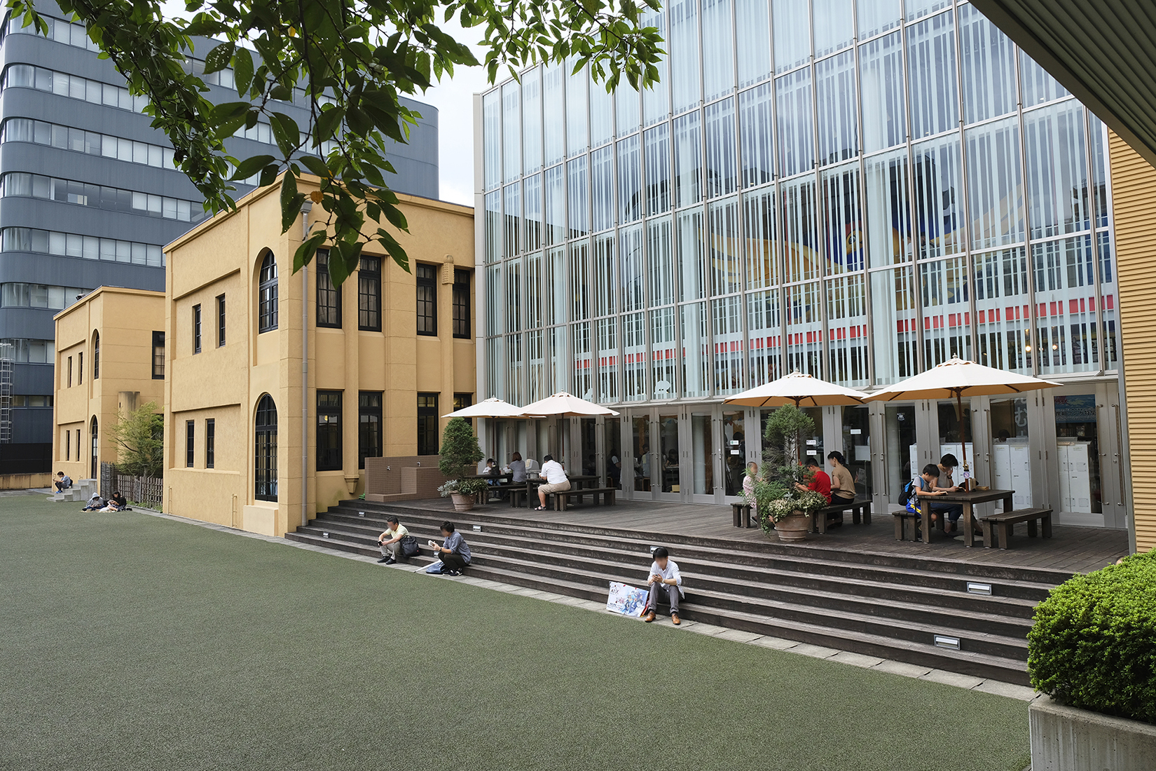 館内を廻りますと、大人も子供も家族でも、恋人でも皆さんとても仲良く、リラックスして漫画に読みふけっていて、本当にいい雰囲気の素敵な空間のミュージアムでした。その理由の一つは、読みたいマンガを館内ならどこでも持って行って自分の好きな場所で読める事、しかも芝生の広い中庭でもokと言う、この解放感だと思います。