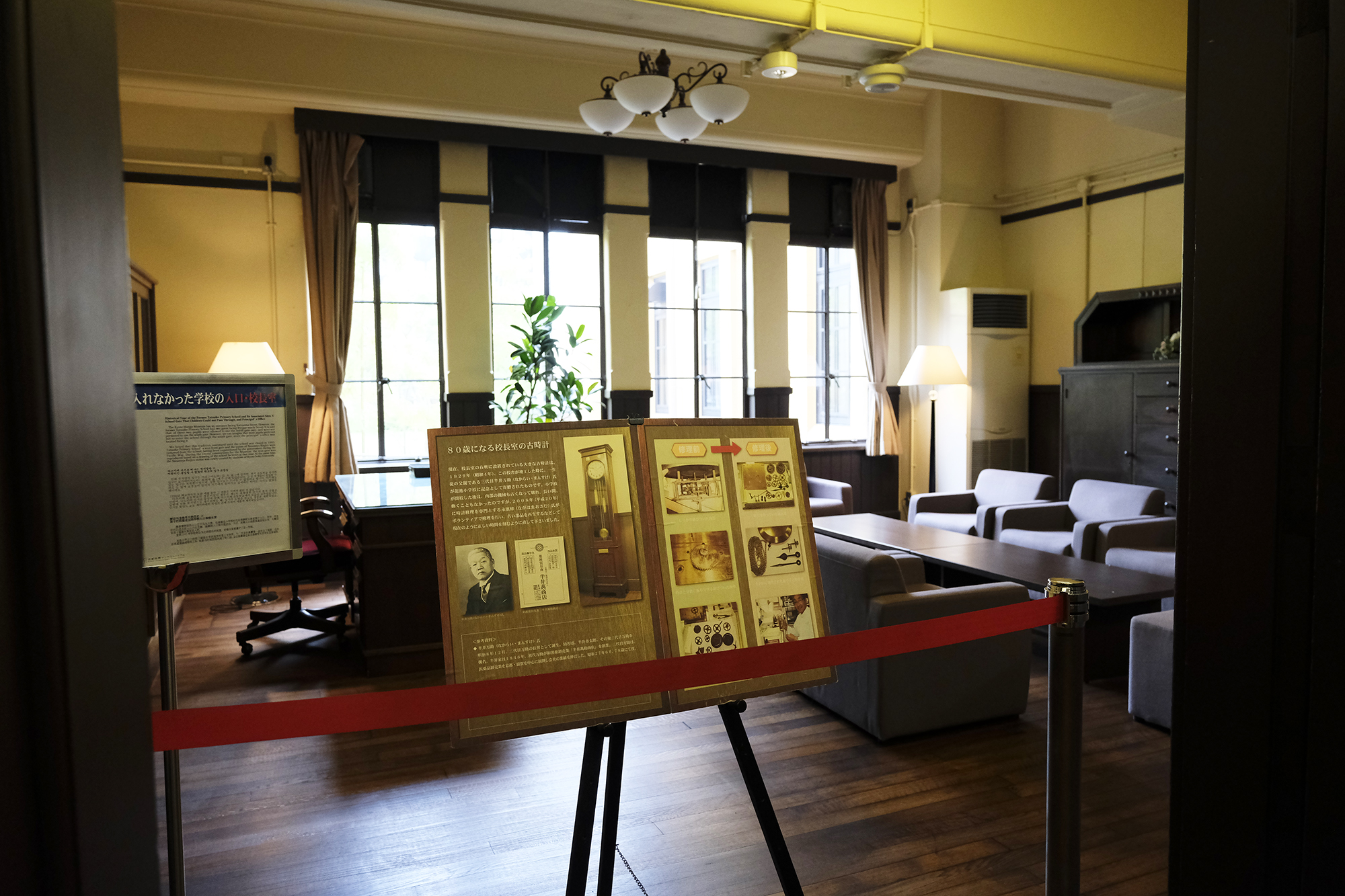 館内にはその当時の佇まいの数々がそのまま残されており、漫画の沢山ある”漫画小学校”にいるかのように、誰でも童心に帰ることが出来、とても細部にまで風情があり感慨を覚えます。その例として、そのまま残された校長室や守衛室表札、講堂。2階へ登れば、龍池歴史記念室や渡り廊下、これらの窓から生徒たちは校庭を眺めたのかな。と子供達の笑顔の情景が浮かびます。