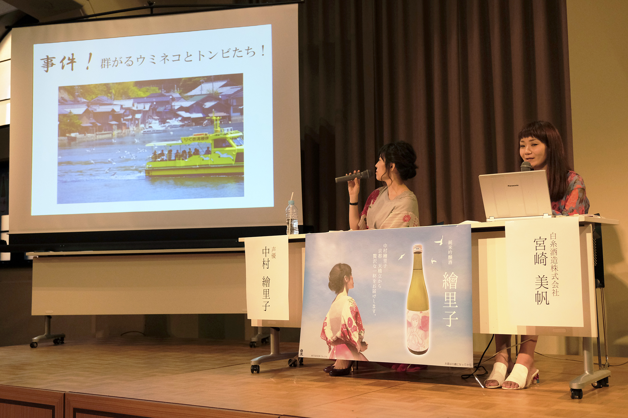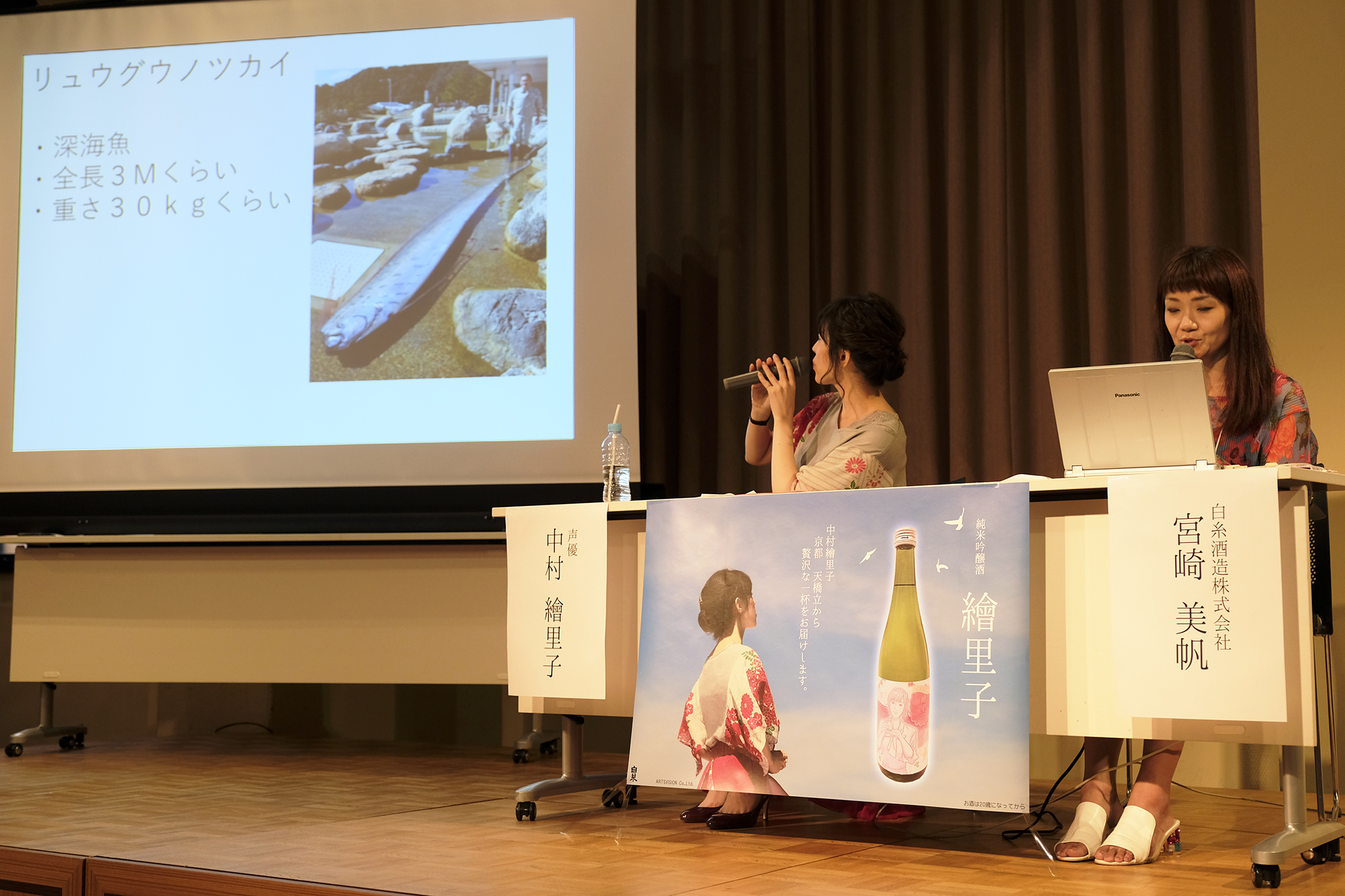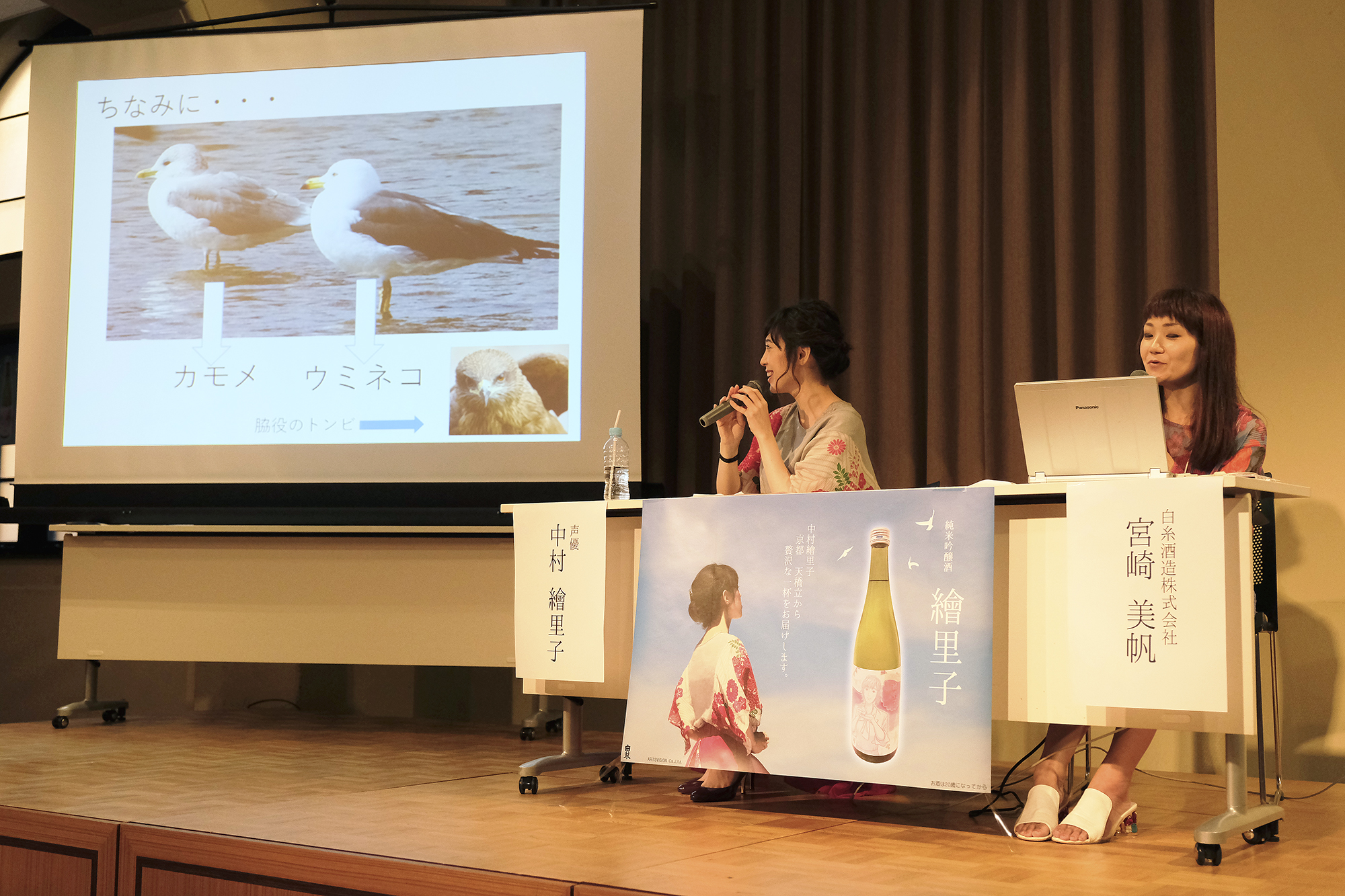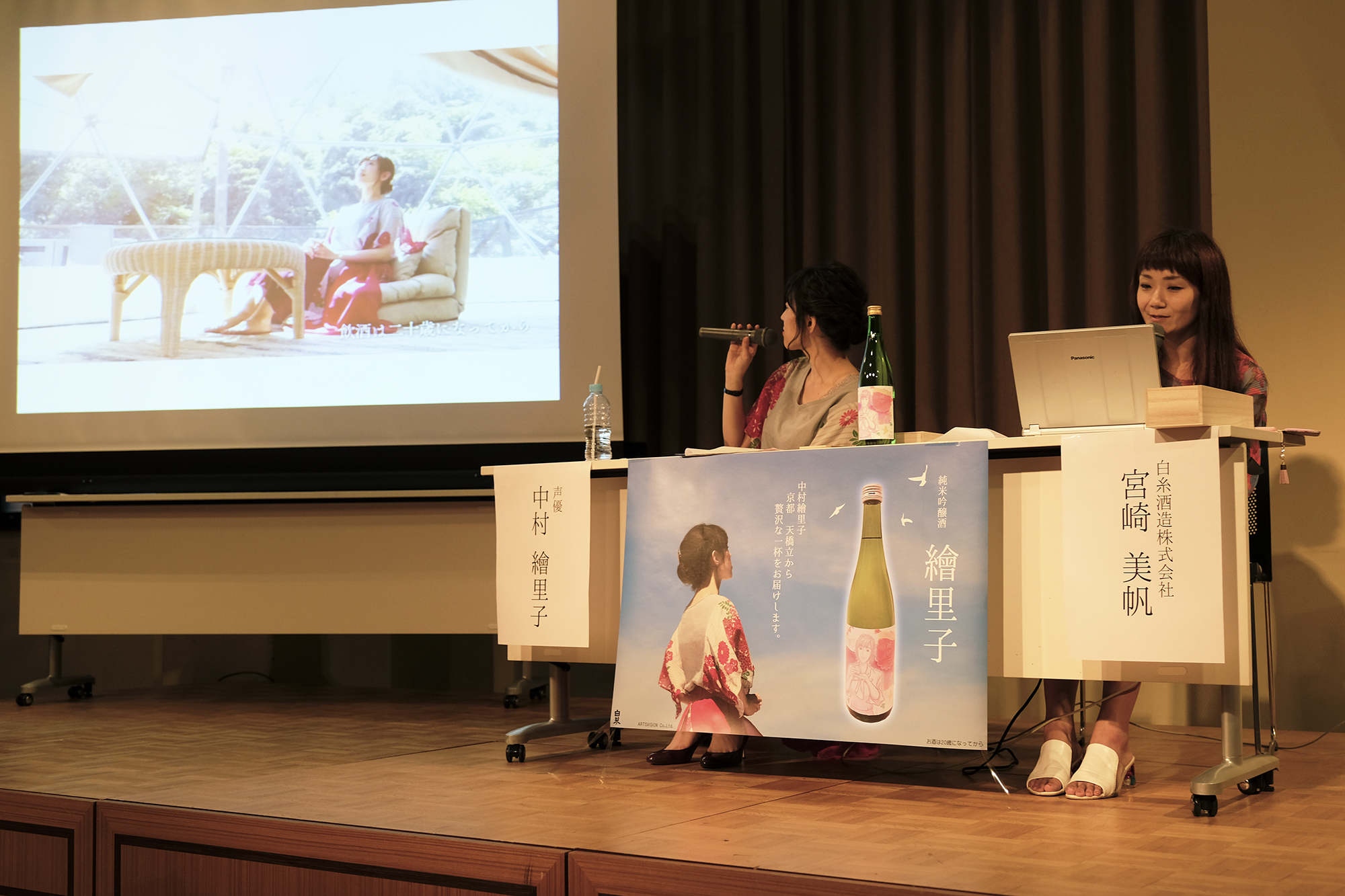 声優・中村繪里子さんの冴えわたるトーク力、白糸酒造の宮崎さんのテンポの良いスライド展開、そして息のあったお二人のやり取りによって、会場中が終始笑いの絶えない、大変嬉しいトークショーとなりました!きっと来られた方の心に残るイベントになった事でしょう。