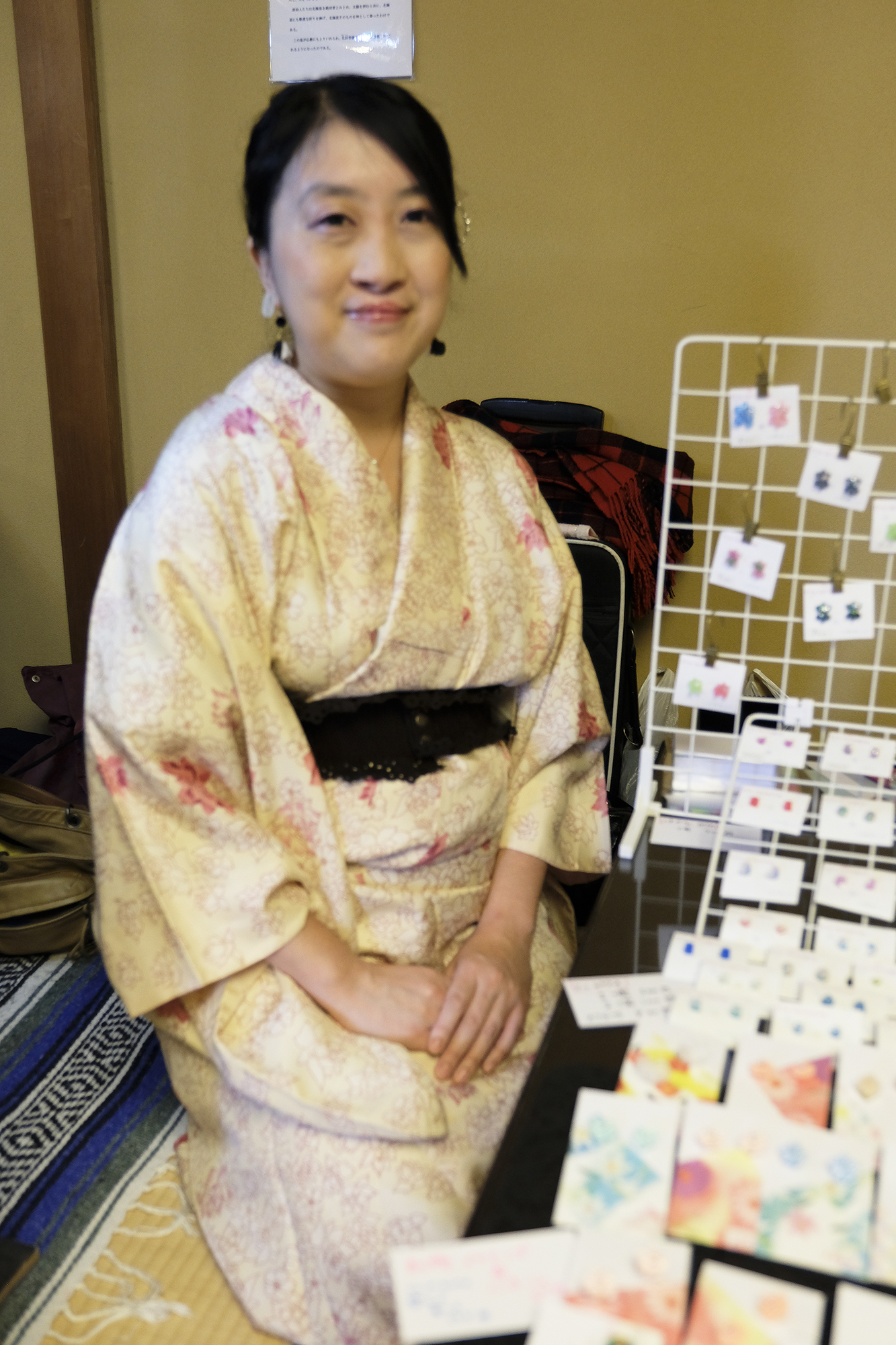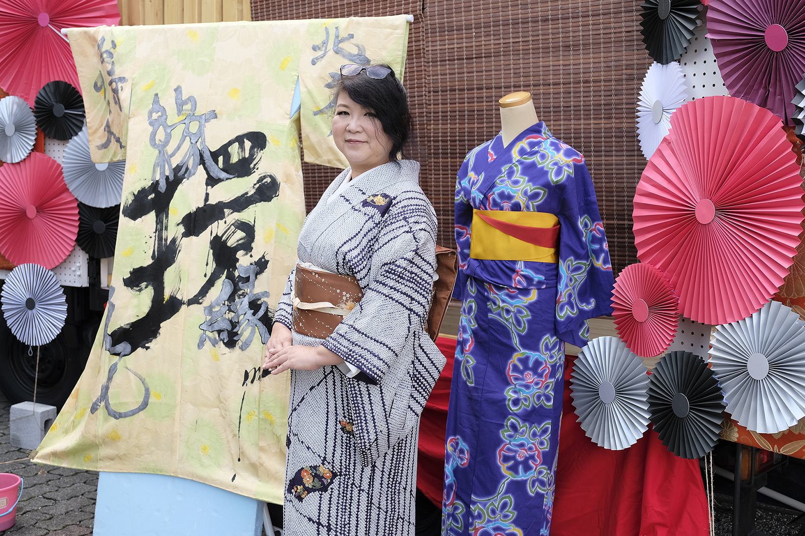朝10:00頃お伺いすると、出演者の方々が皆様着物へお召し変えやネイル、メイク、髪結いの準備、ブースの準備など和やかにされておりました。一般の方からすると着物の着付けは大変だと思うのですが、そこは流石プロ!ファッションショーもされている程ですので、皆様着付けのスピードが速くてらっしゃって、尊敬でございます。
