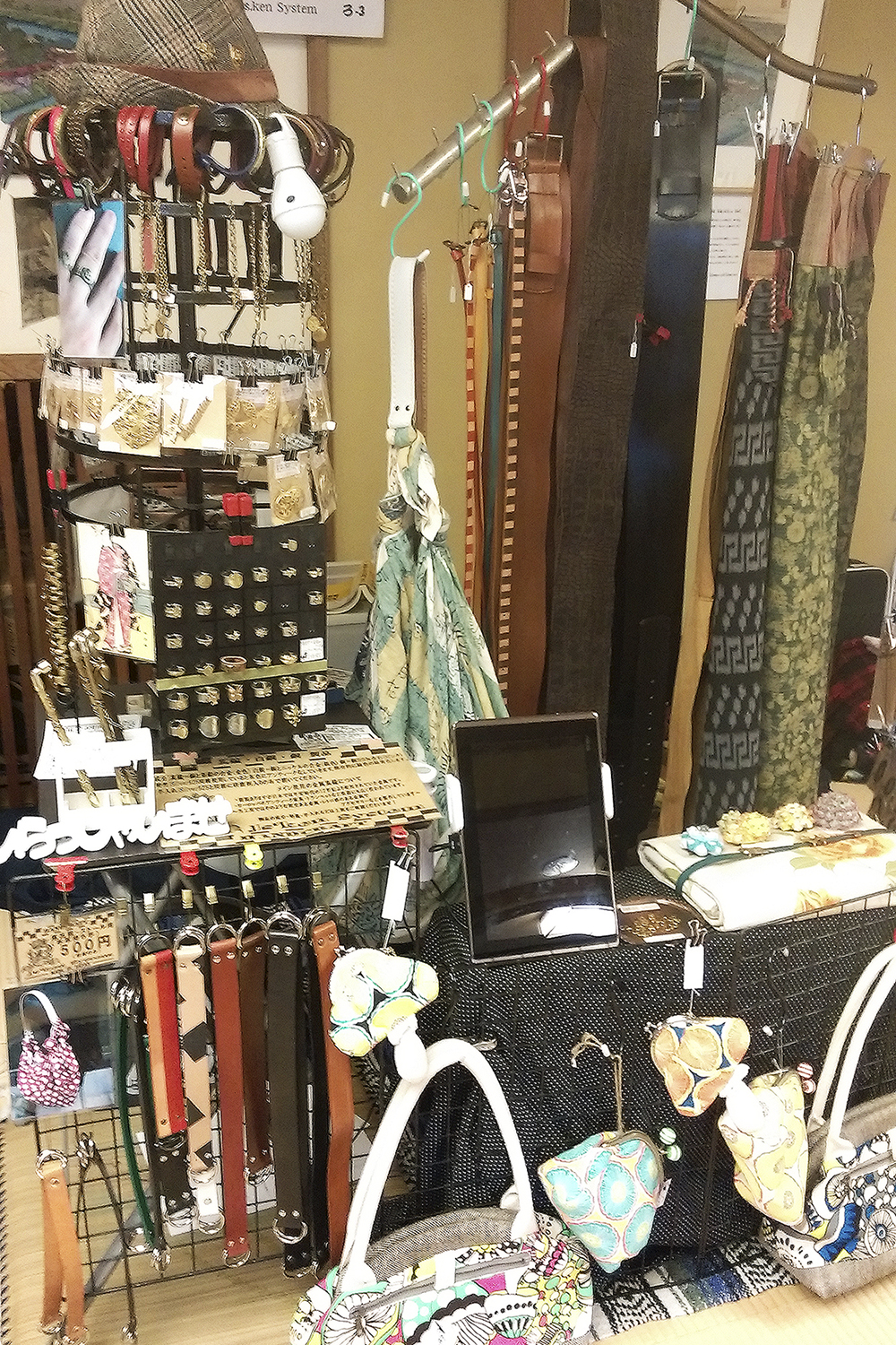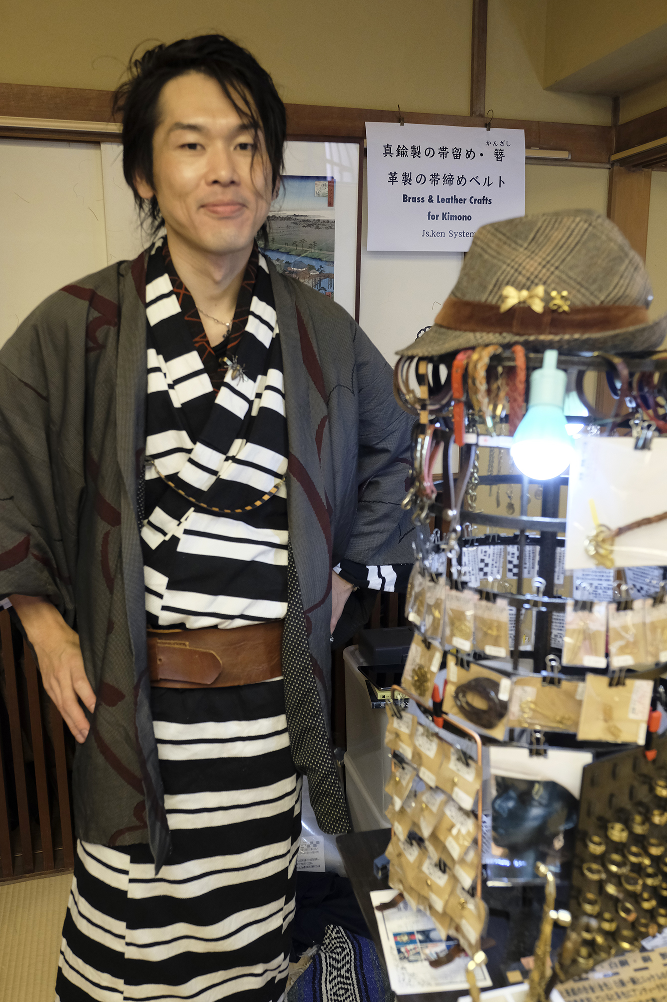 とても歴史にお詳しい中嶋さん!男性用帯どめ・帯締めやアクセサリーパーツやハンドメイドから輸入ものまでを販売されていました。