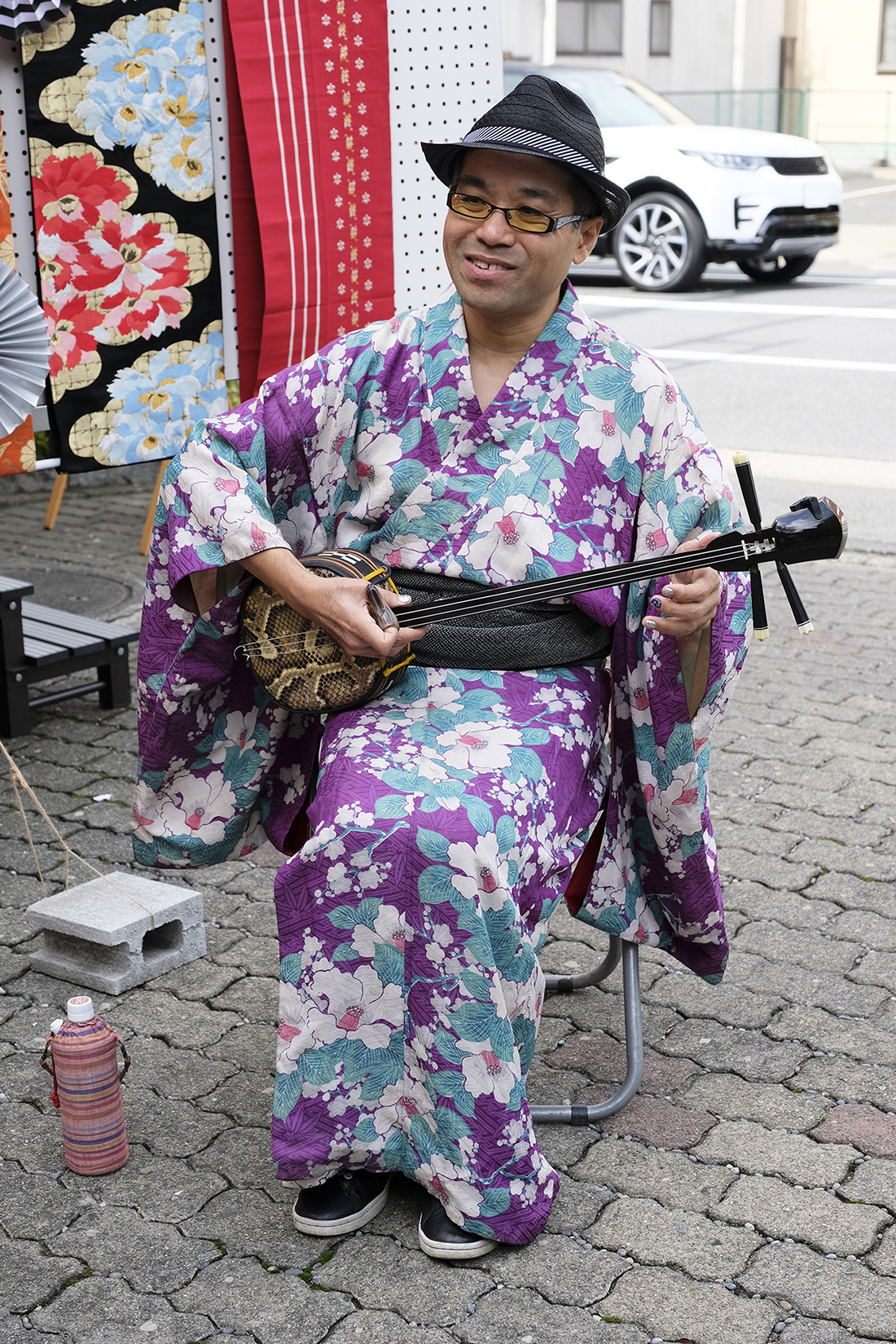 そして、三線のタケシィさんが効果音・BGM役として競演。色んな楽器を使って茄子じぃの紙芝居を一緒に盛り上げてくれます!
