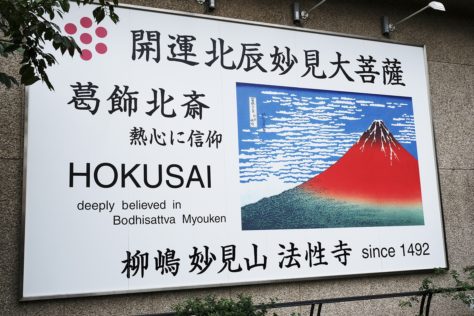 会場となっている「柳嶋妙見山法性寺」は、明応元年(1492年)に法性房日遄(ほっしょうぼうにっせん)上人によって開山され、500年以上の歴史を持つお寺。葛飾北斎が信仰していた事でも有名なお寺。
