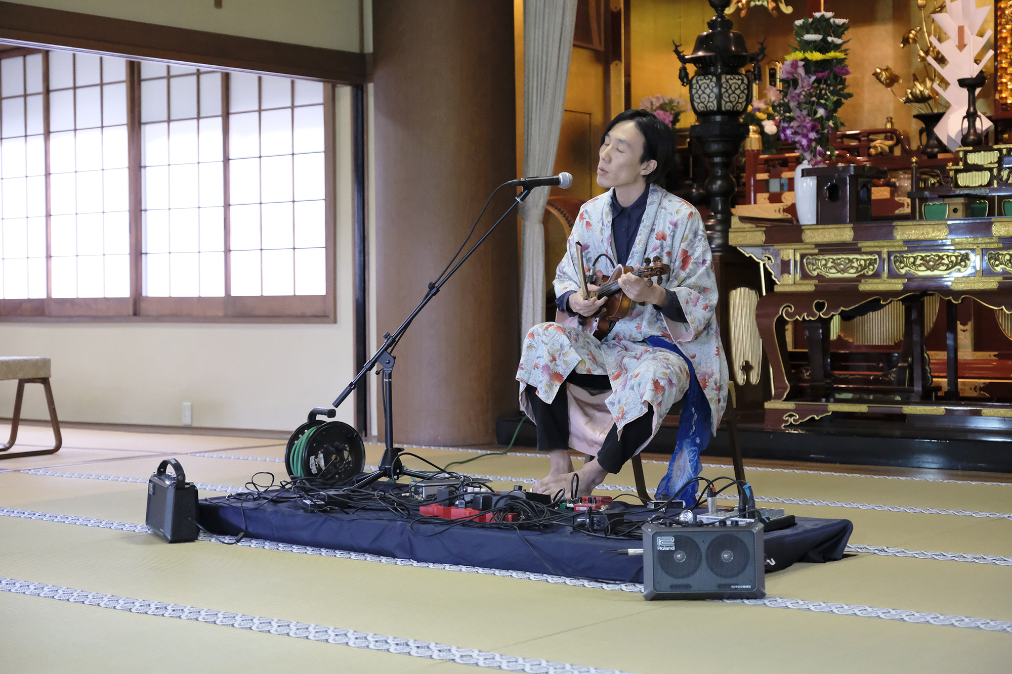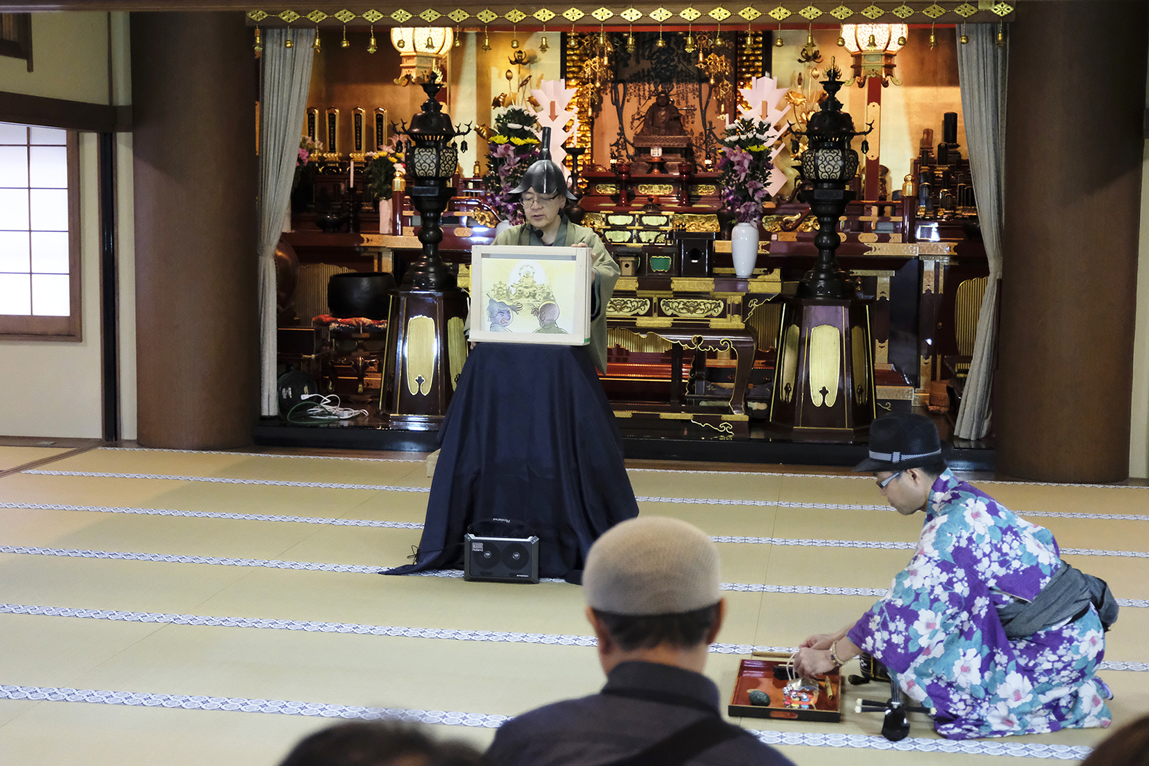 【本堂でのパフォーマンスショー】
