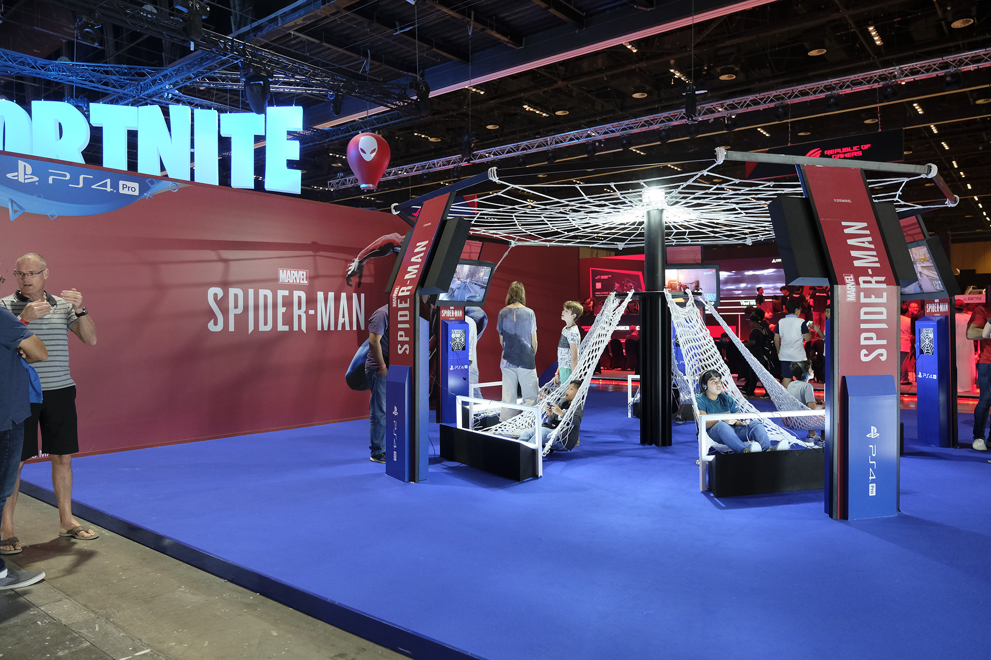 PlayStation4ではSPIDER-MANをモチーフにしたブースが設けられ、このCOOLでSTYLISHなブースで子供たちがスパイダーマンのネット(=ハンモック)に寝ころびながらゲームを楽しんでいました。