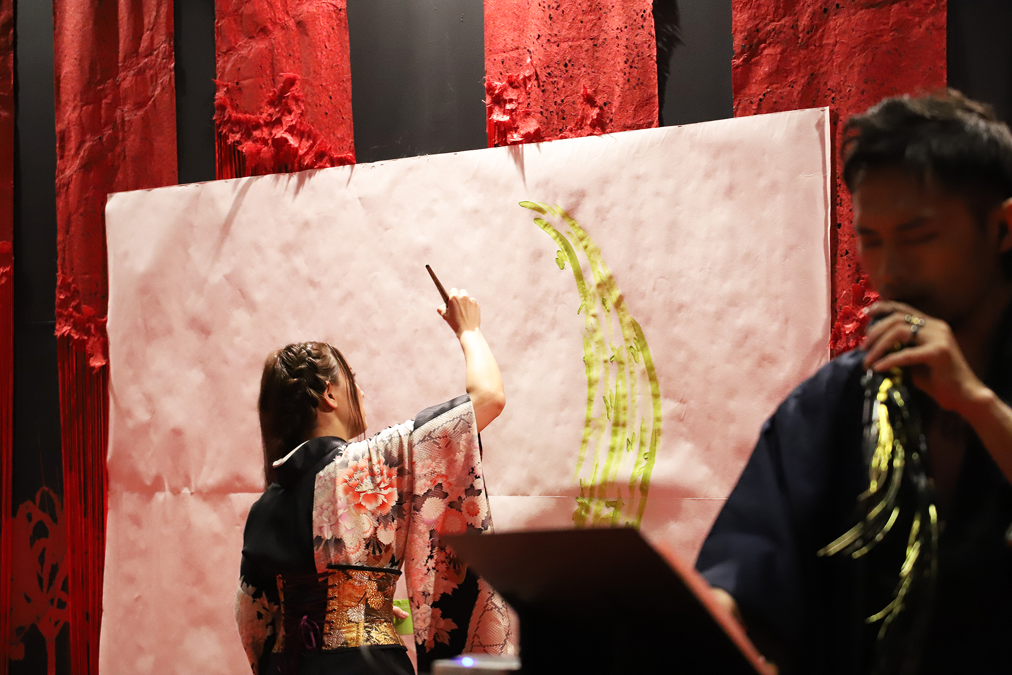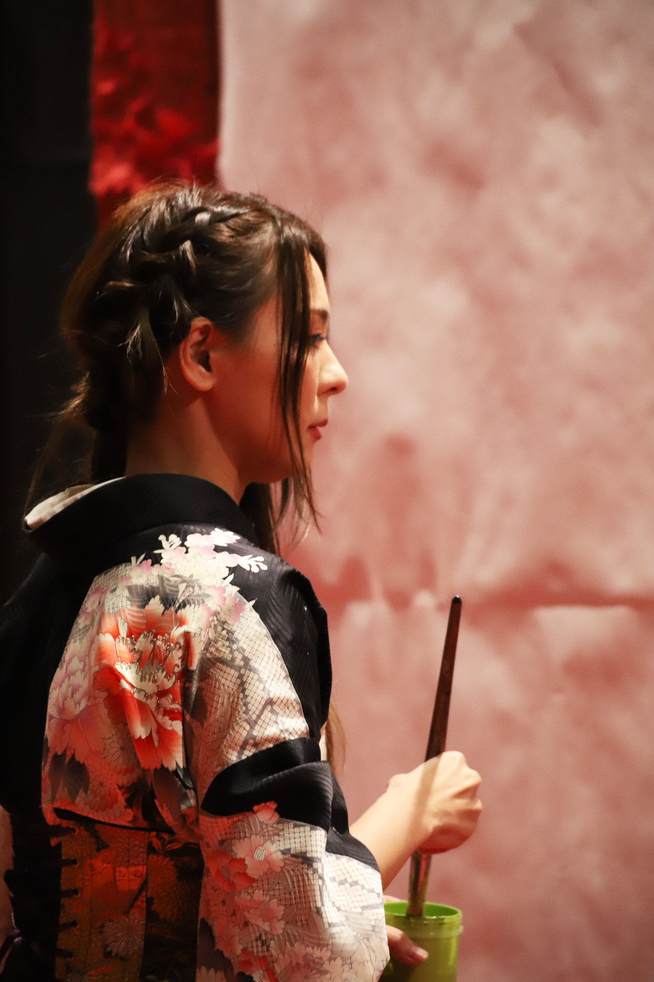 実は書を描くことで桜の模様が浮き出てくるという、細かい部分まで演出に拘って準備も”KIRIE”の美呼さんと一緒に一生懸命されていました。