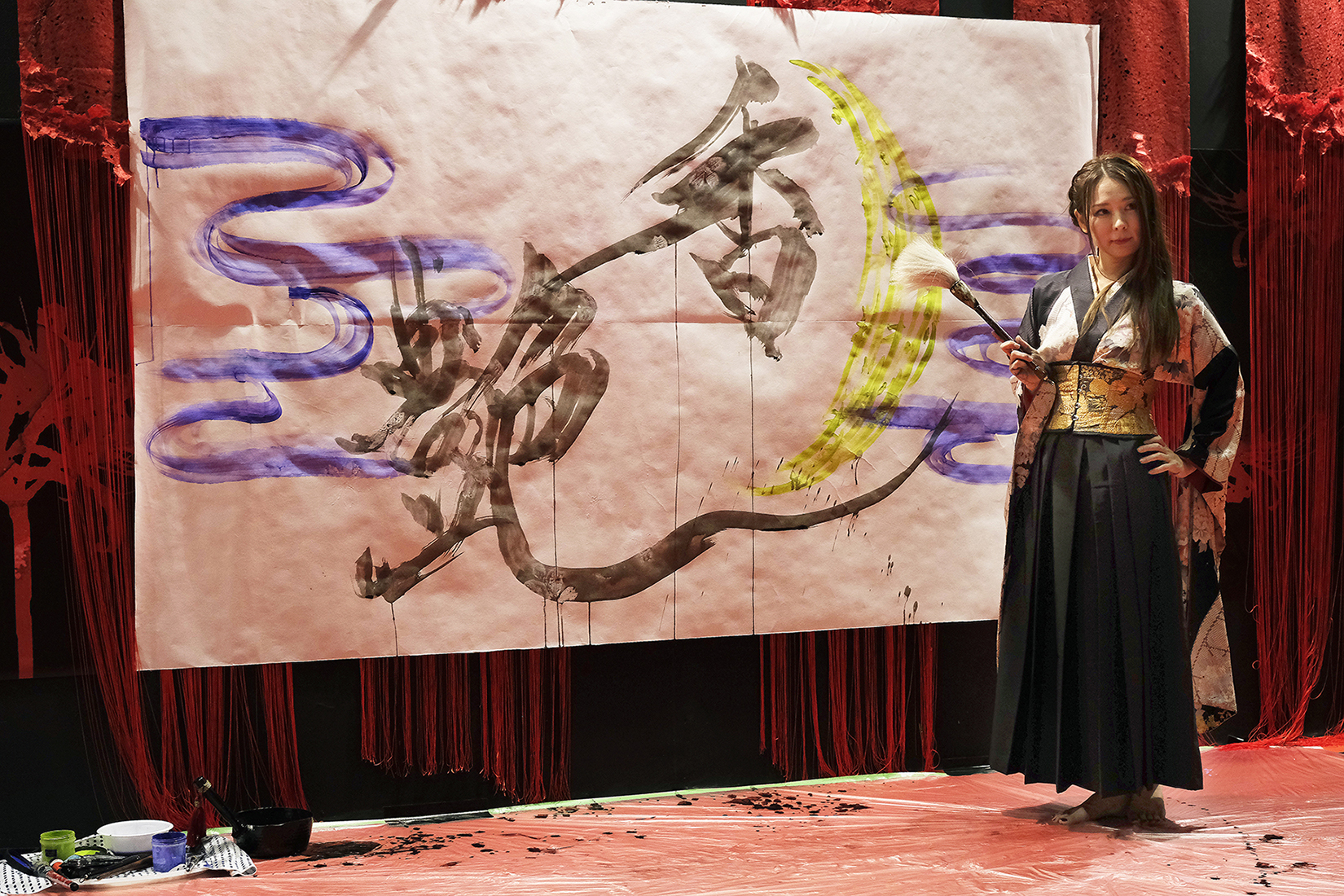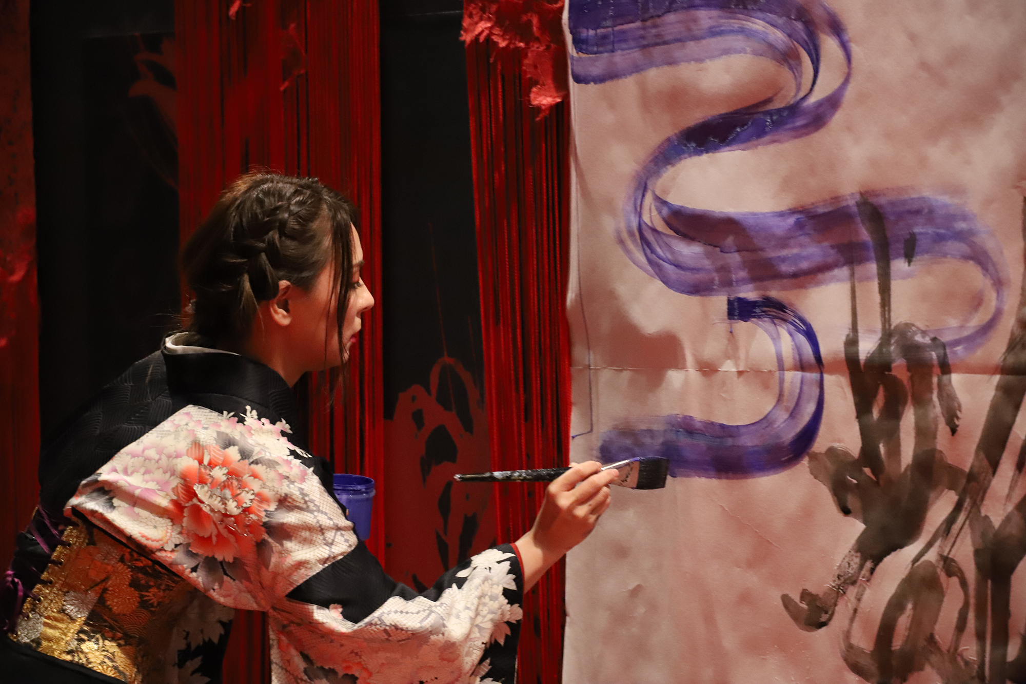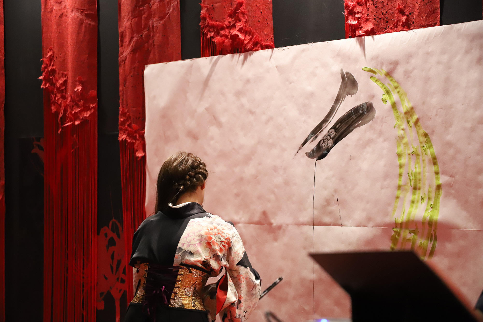 実は書を描くことで桜の模様が浮き出てくるという、細かい部分まで演出に拘って準備も”KIRIE”の美呼さんと一緒に一生懸命されていました。