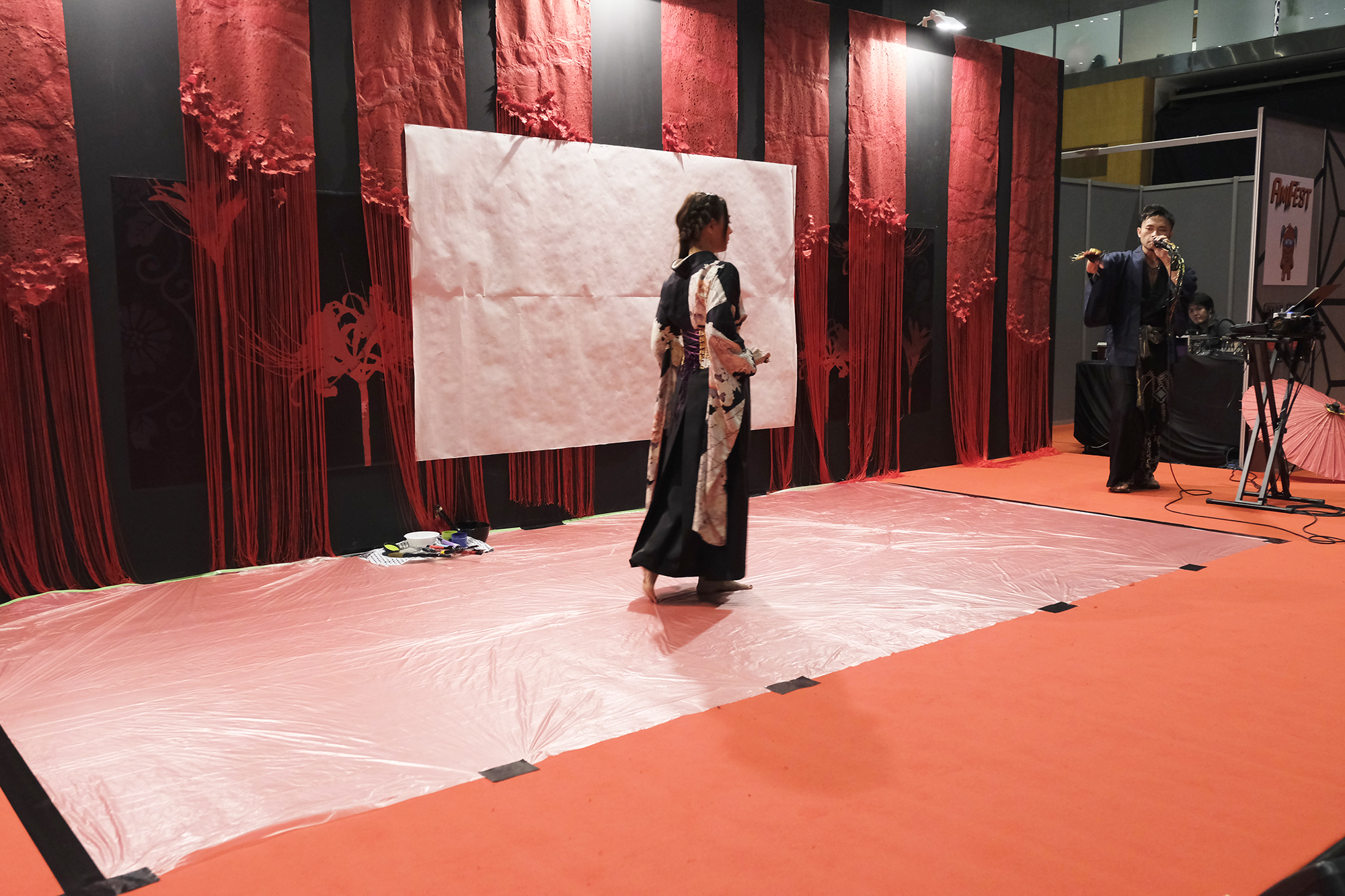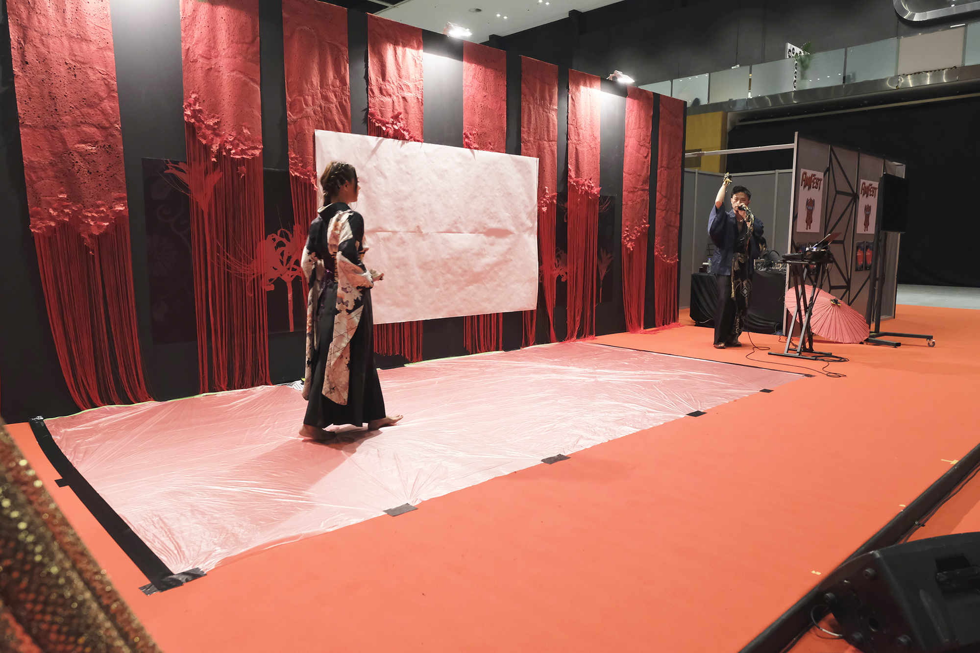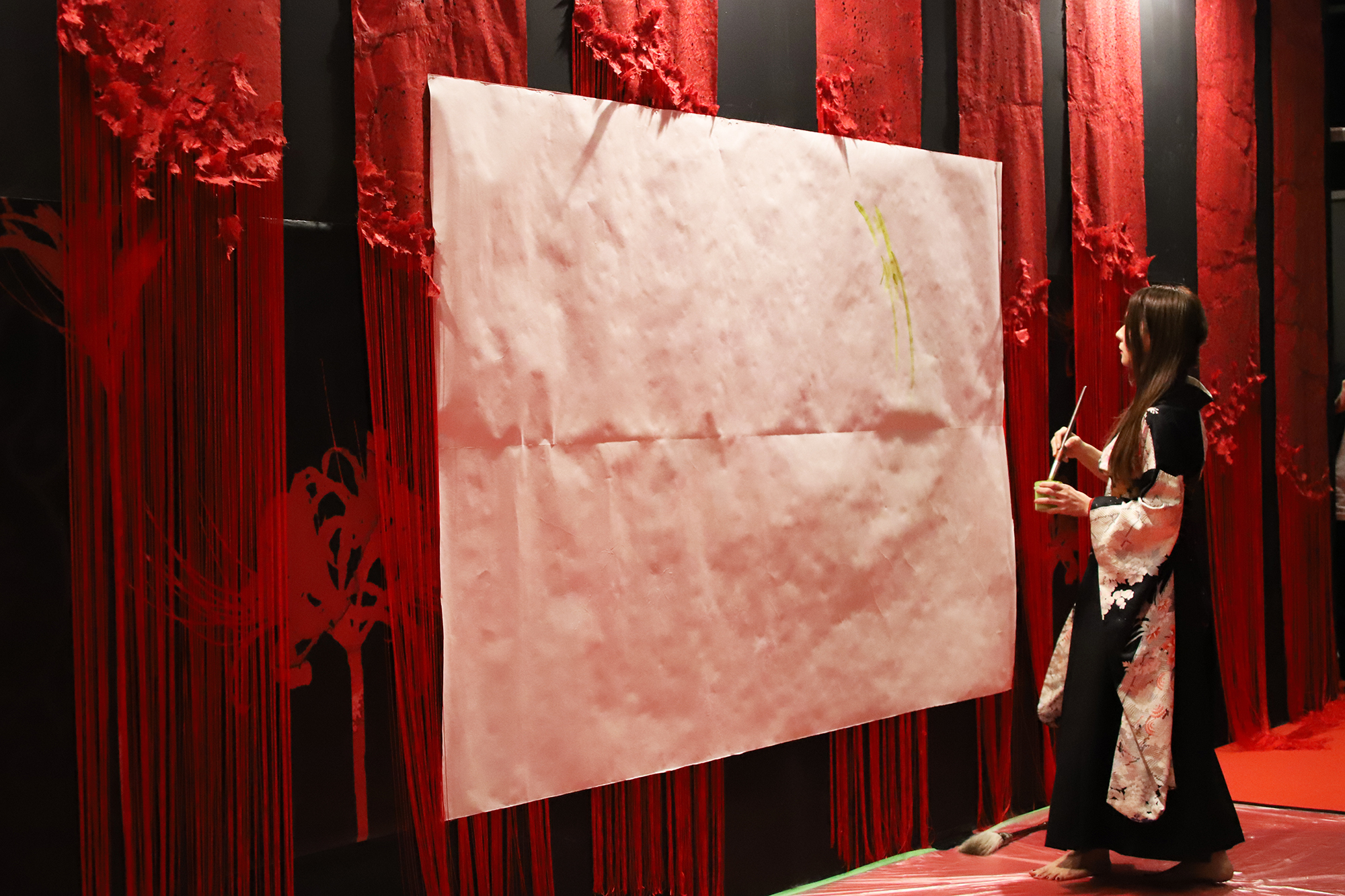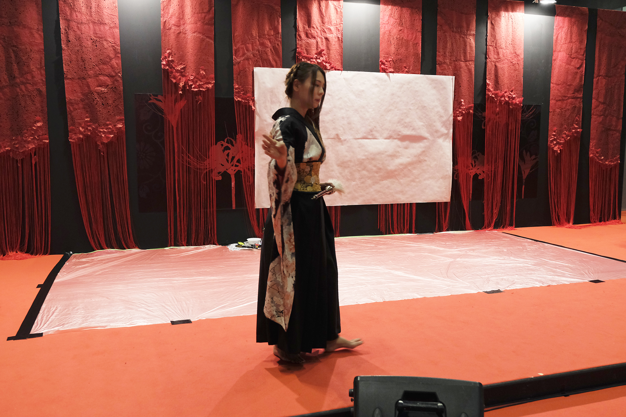 実は書を描くことで桜の模様が浮き出てくるという、細かい部分まで演出に拘って準備も”KIRIE”の美呼さんと一緒に一生懸命されていました。