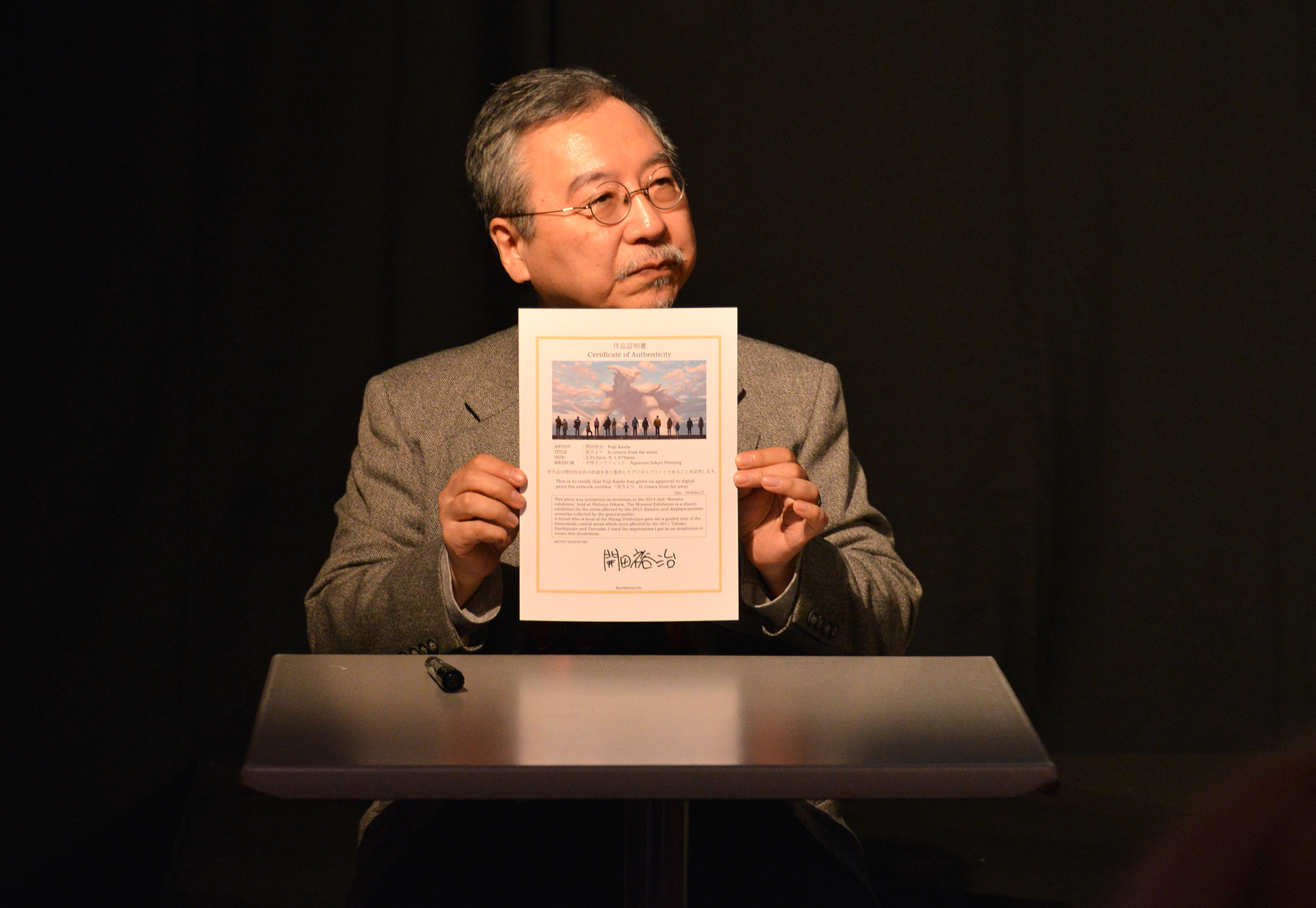 こちらの作品”It Comes From Far Away“は、2011年に日本を襲った東北大震災のチャリティー展示会で発表された貴重な作品で、HYPER Auctionにて販売されました。
